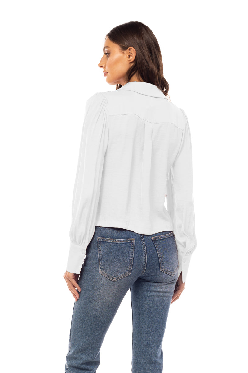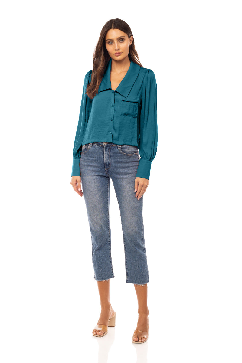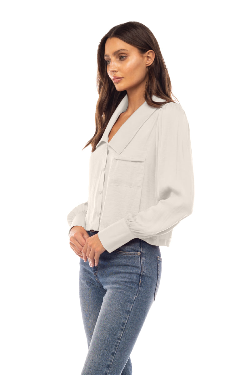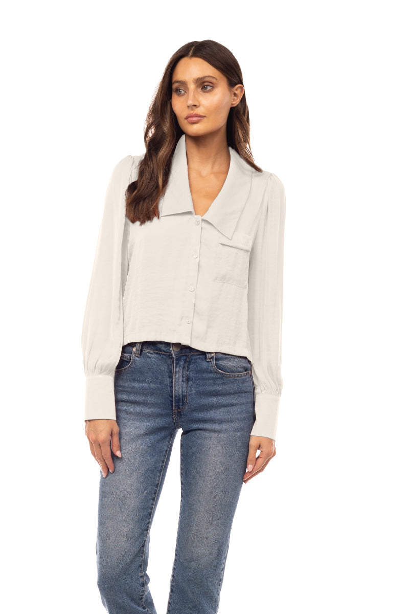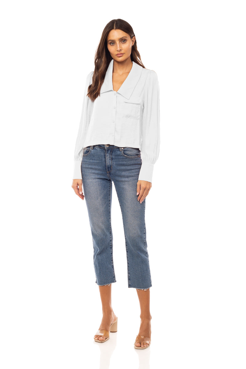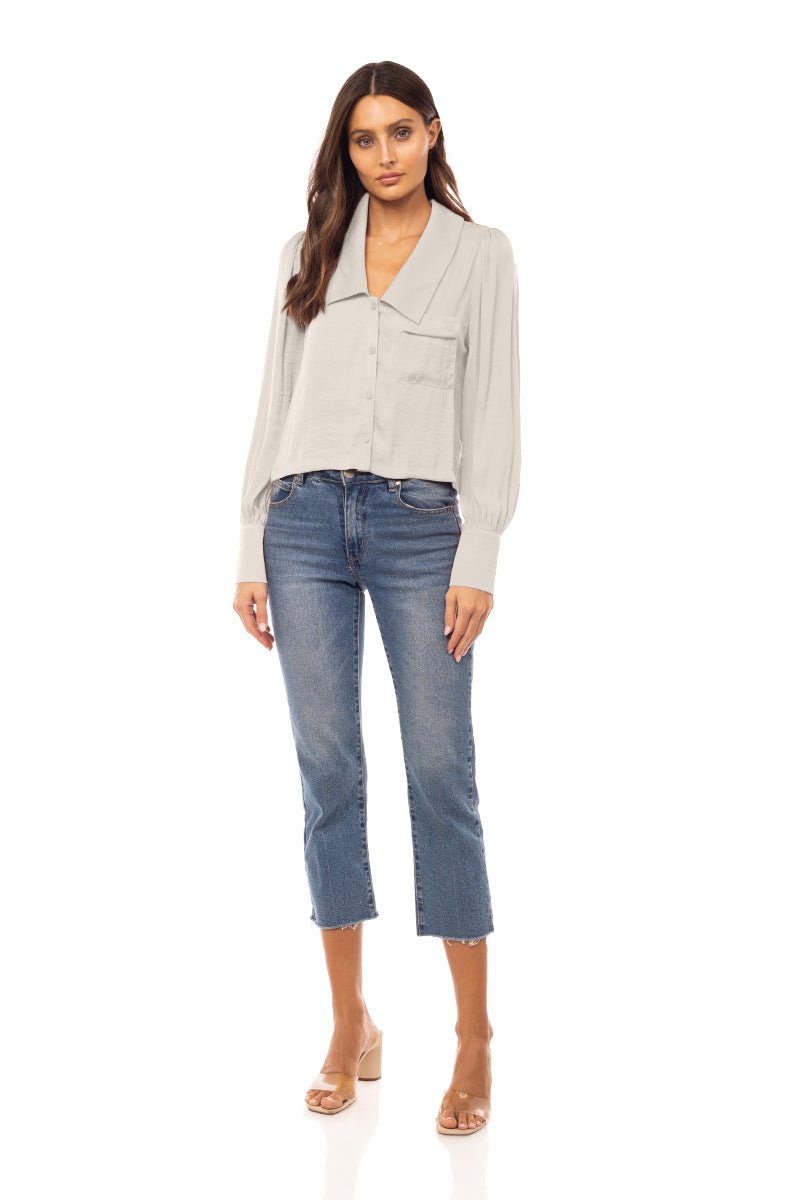 Long Sleeve Cropped Peter Collar Button Front Blouse