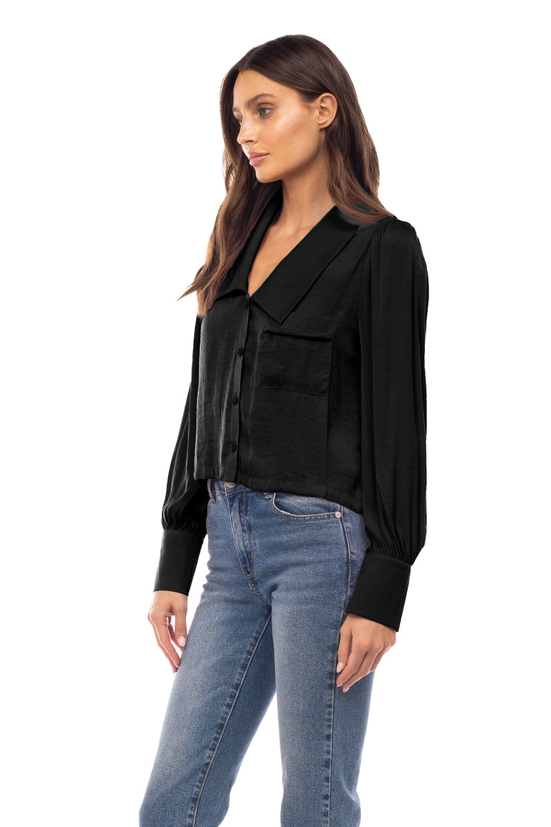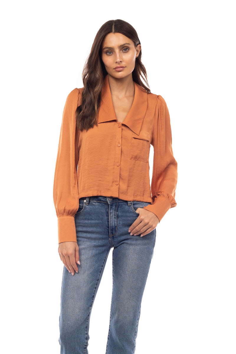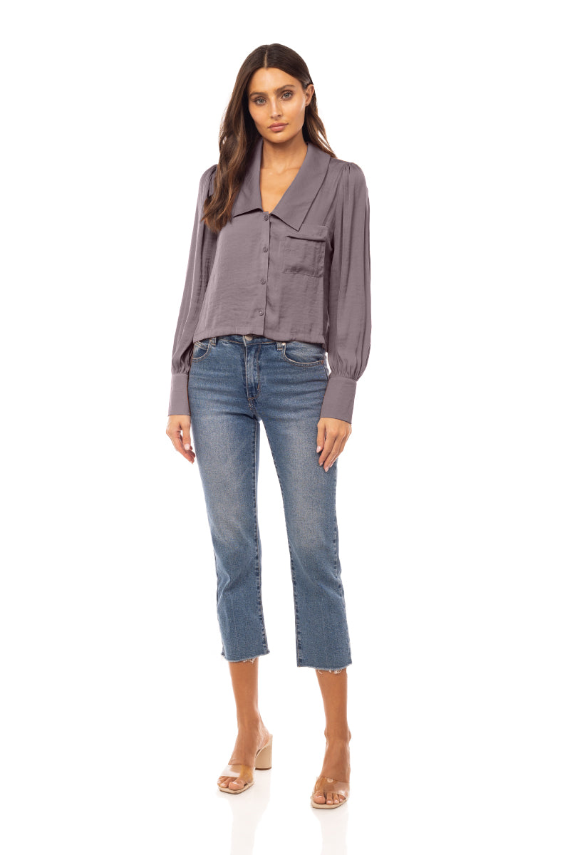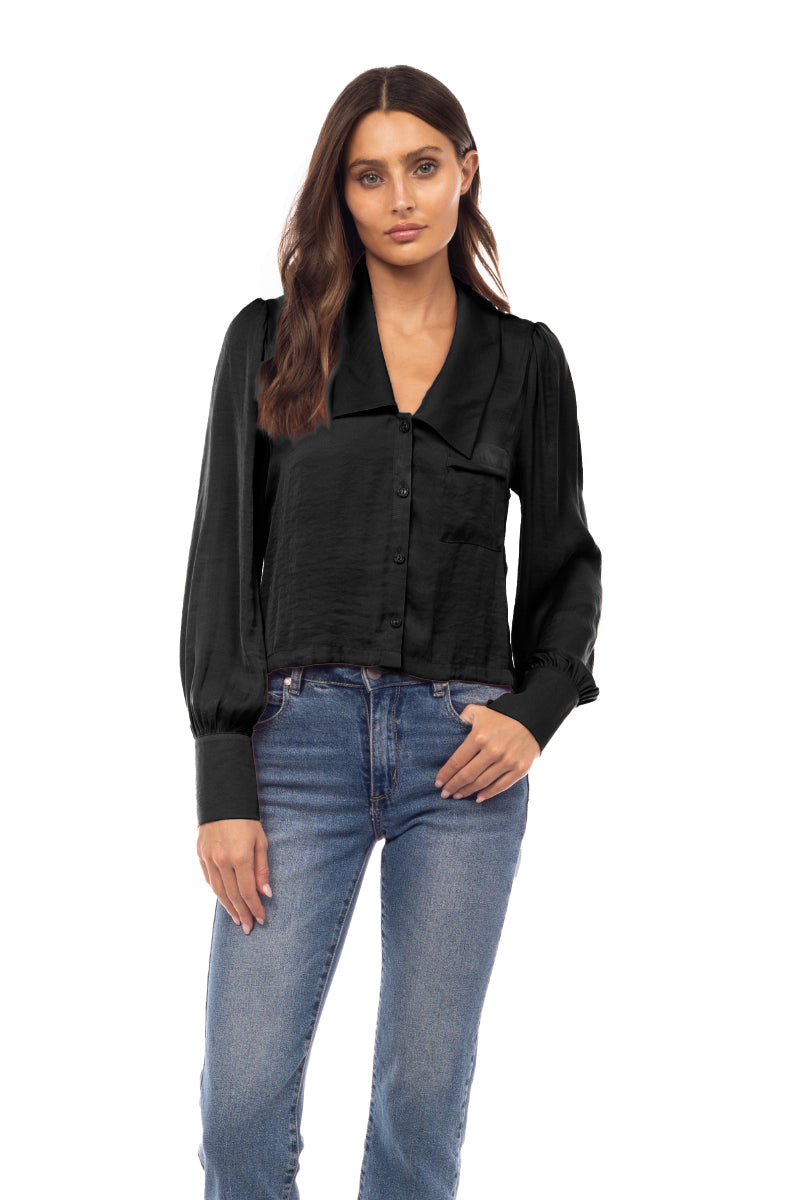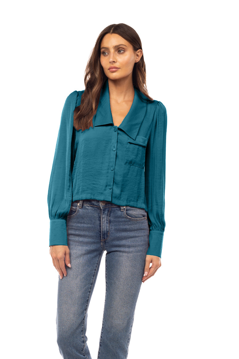 Long Sleeve Cropped Peter Collar Button Front Blouse
