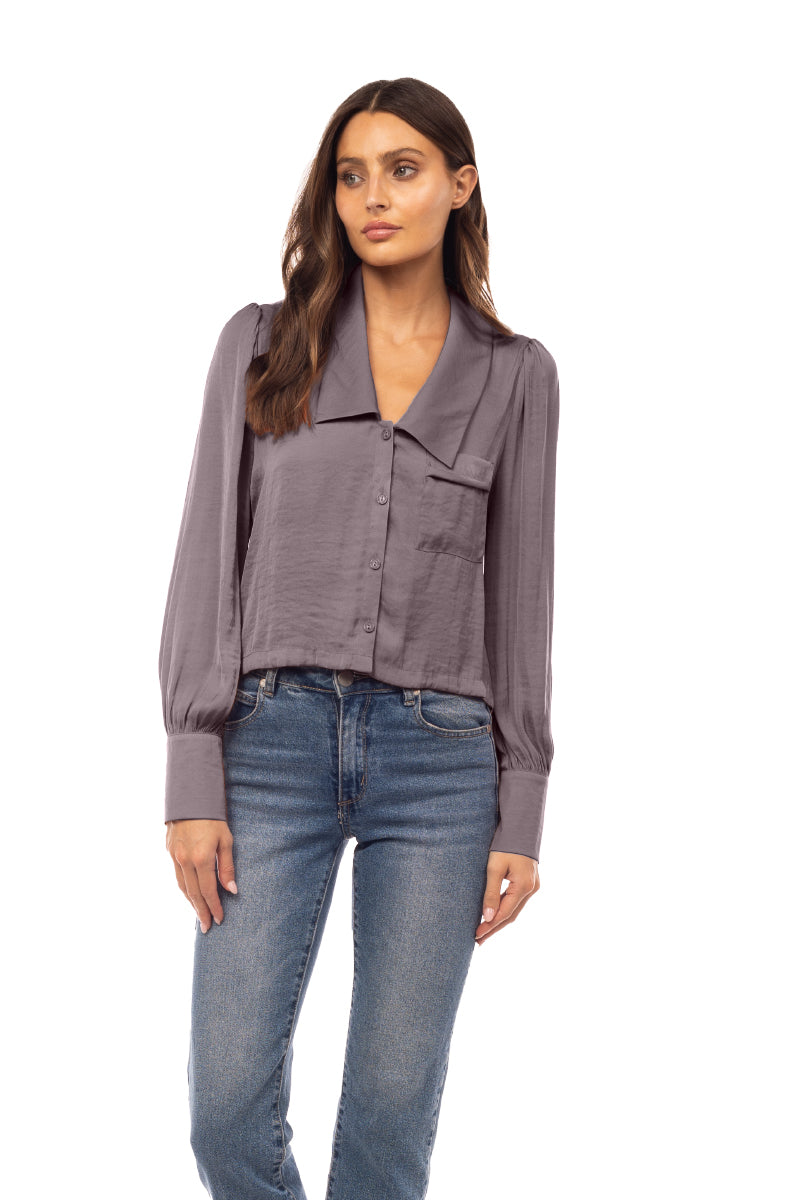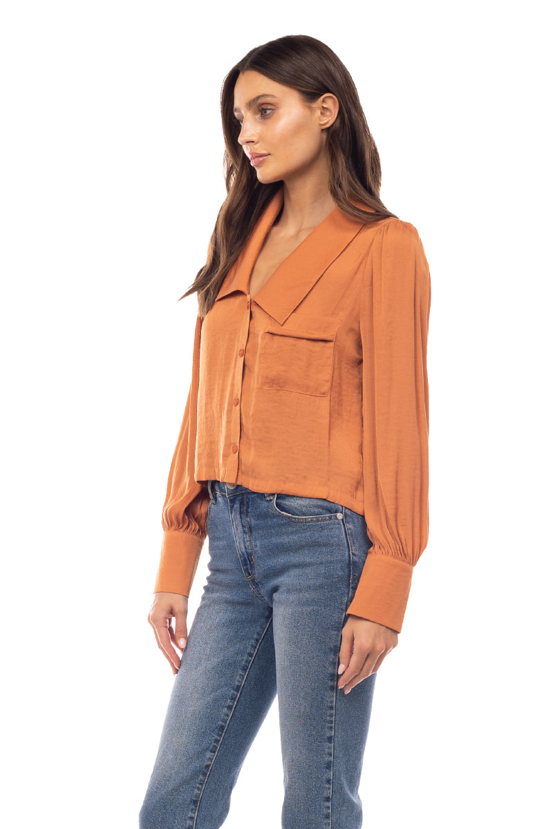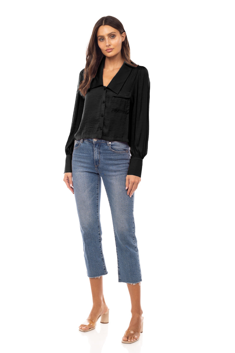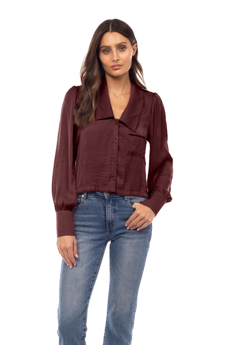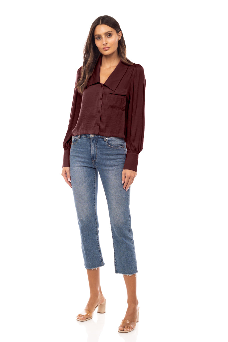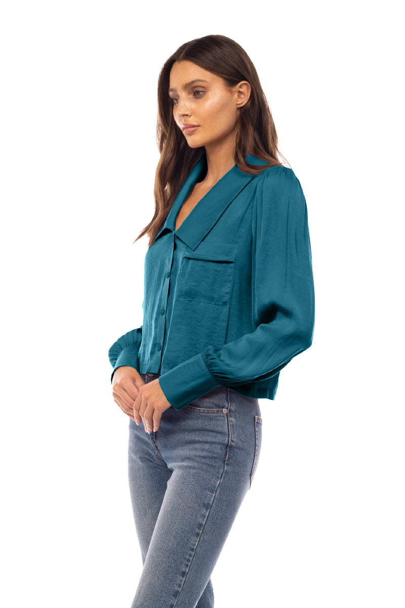 Long Sleeve Cropped Peter Collar Button Front Blouse