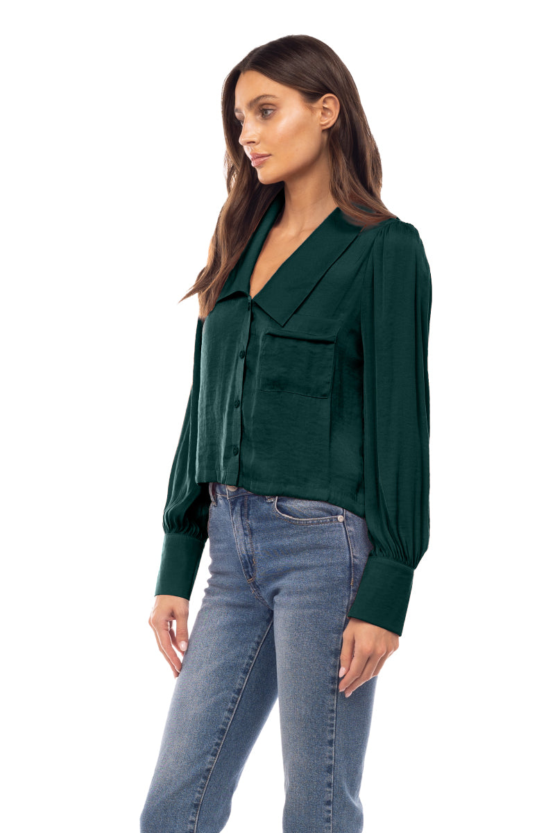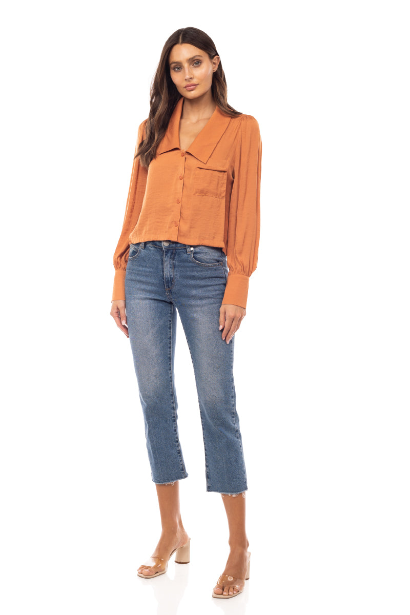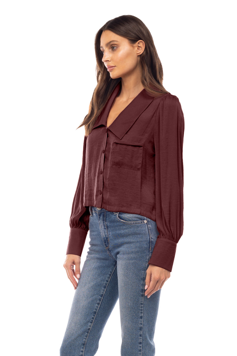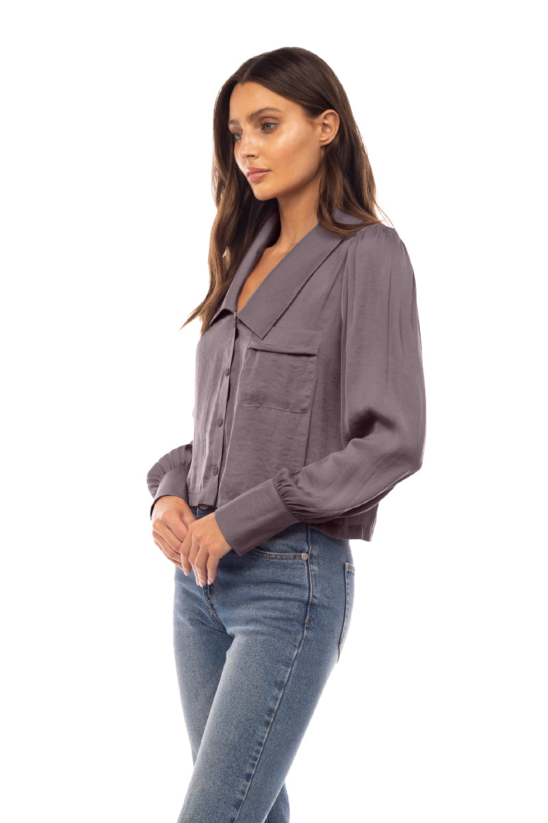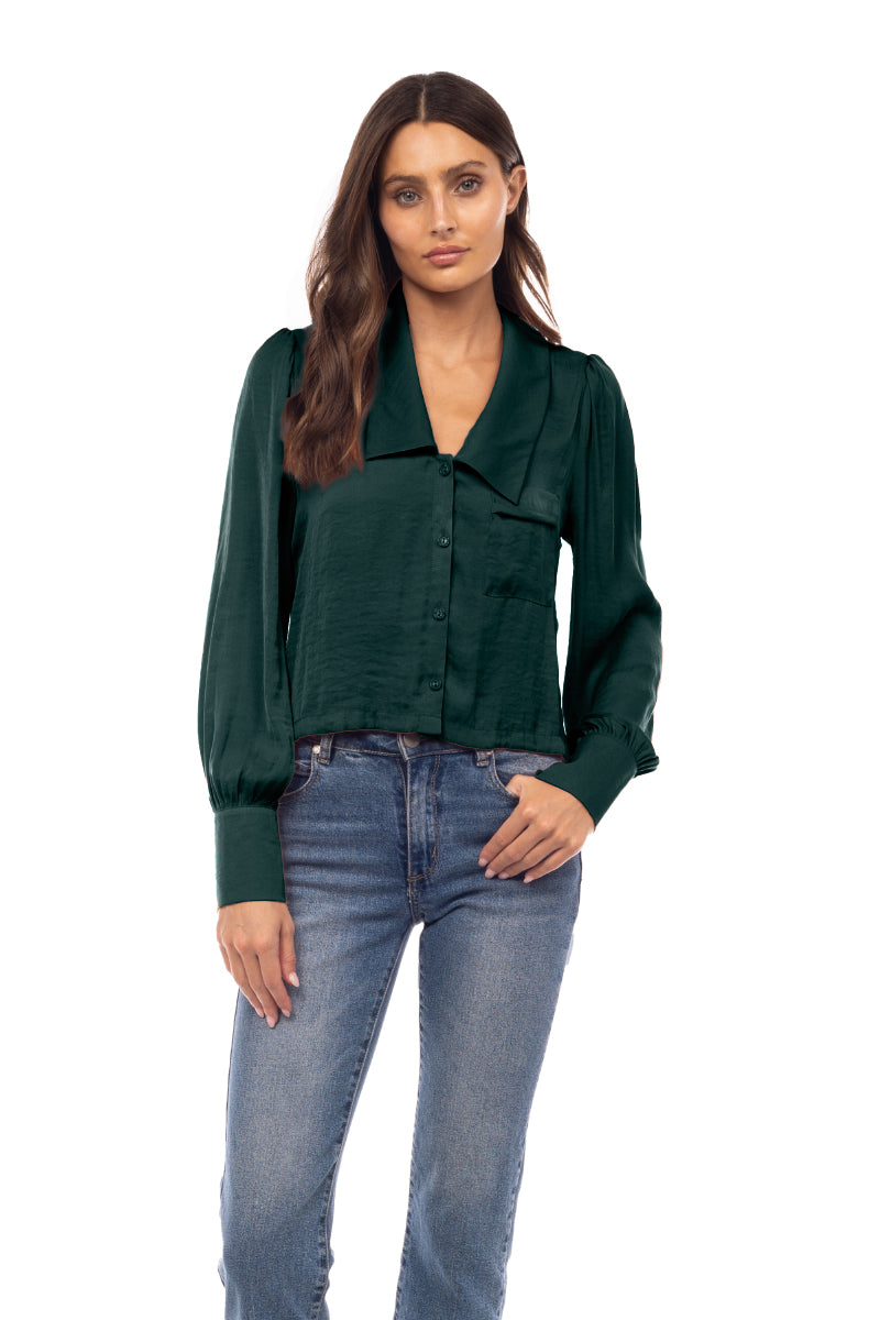 Long Sleeve Cropped Peter Collar Button Front Blouse