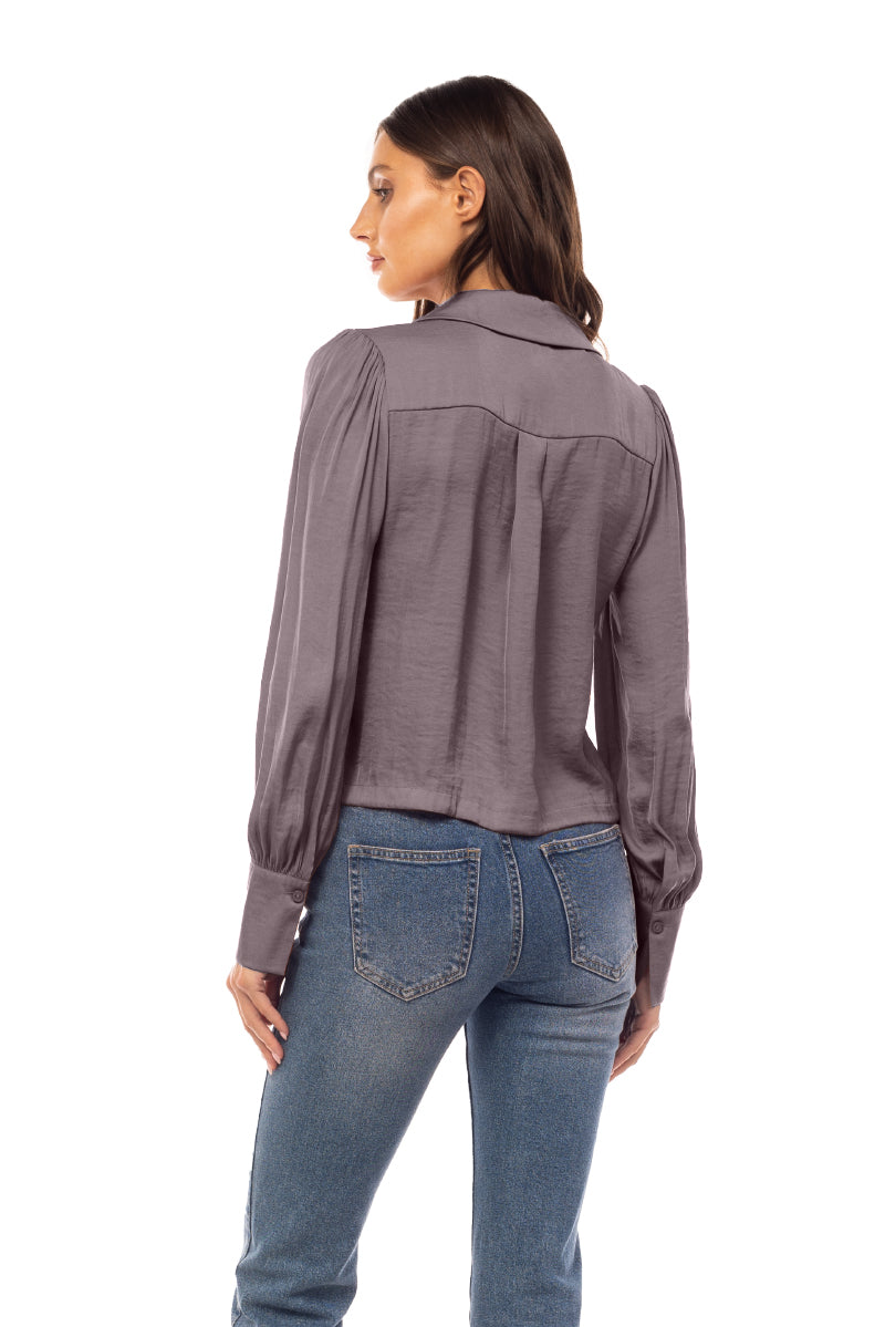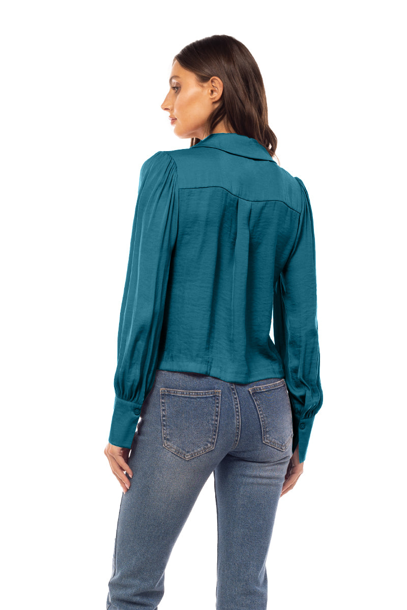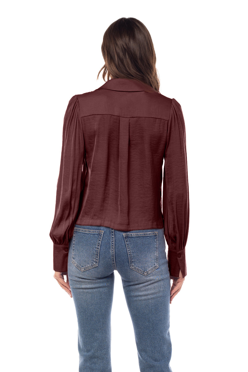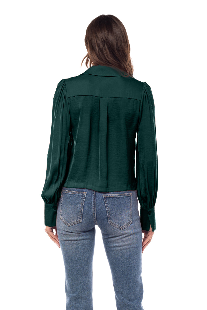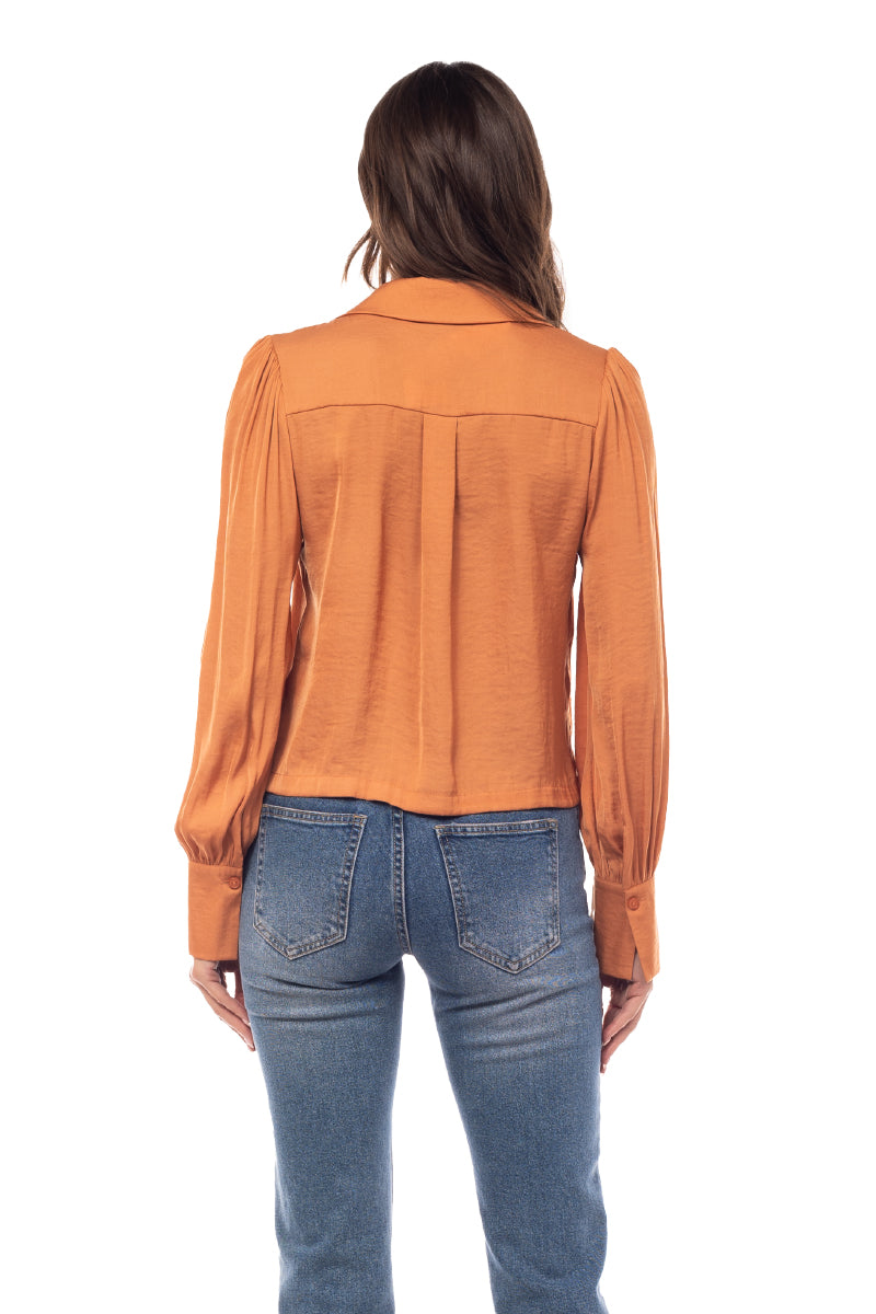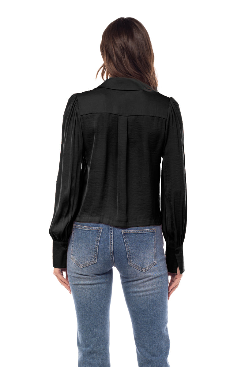 Long Sleeve Cropped Peter Collar Button Front Blouse