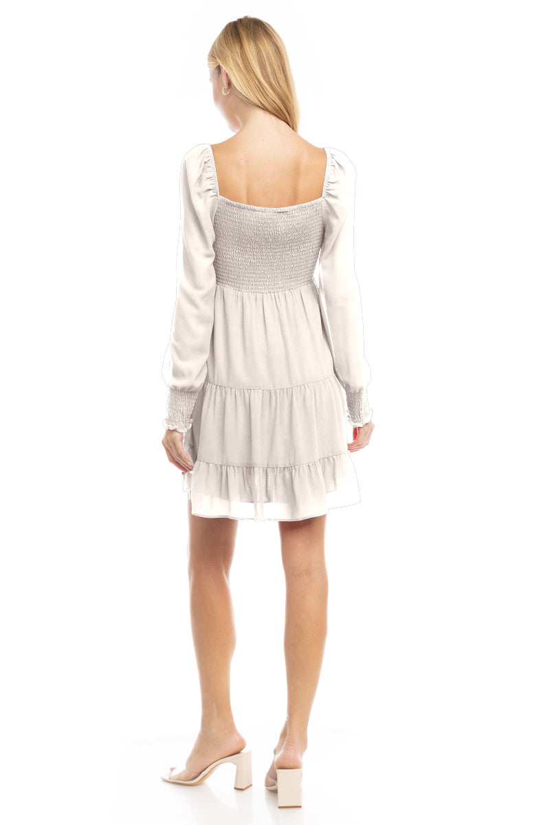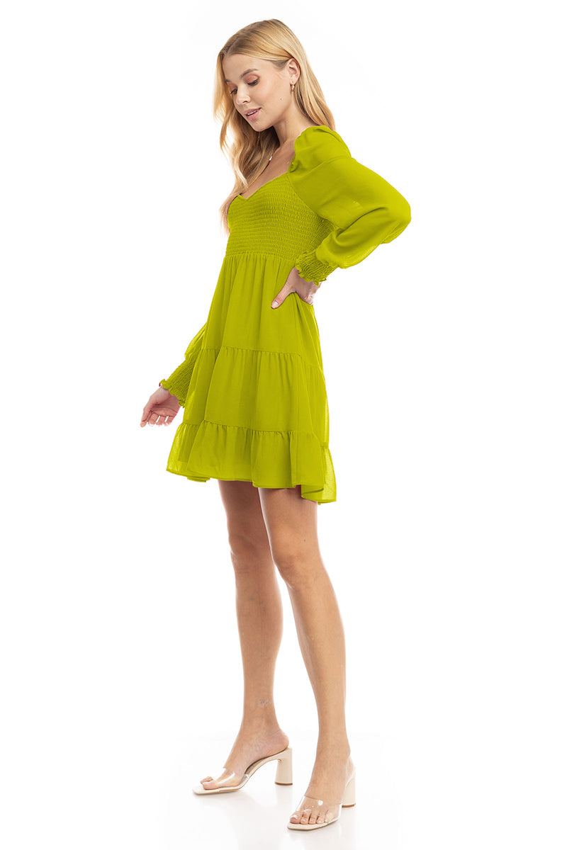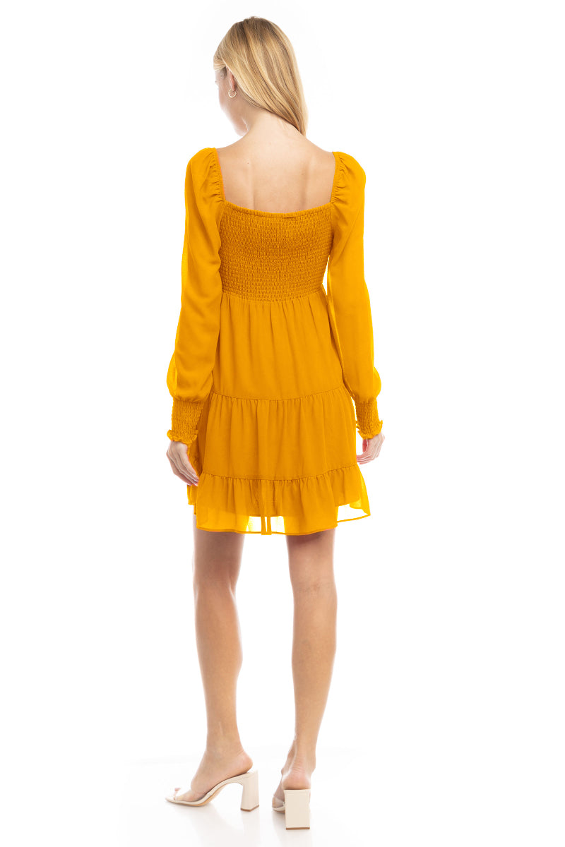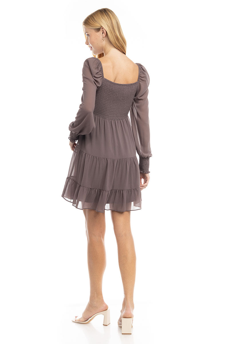 The Long Sheer Sleeve Smocking Tiered Dress combines romantic elegance with modern details. Featuring delicate sheer sleeves, a smocked bodice, and a tiered skirt, this dress offers a flattering and feminine silhouette. Perfect for both casual and formal occasions, it adds a touch of sophistication and grace to any wardrobe.
