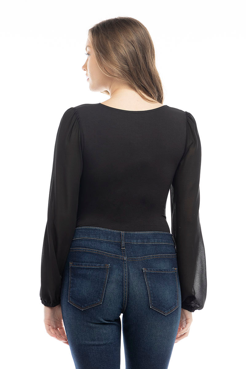 ╴Long Sleeve Drape Neck Knit Bodysuit