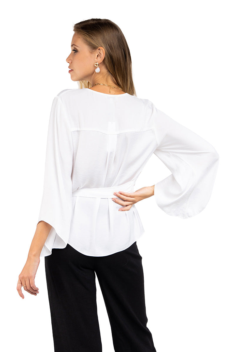 Long Sleeve Tie Blouse With Bell Sleeves