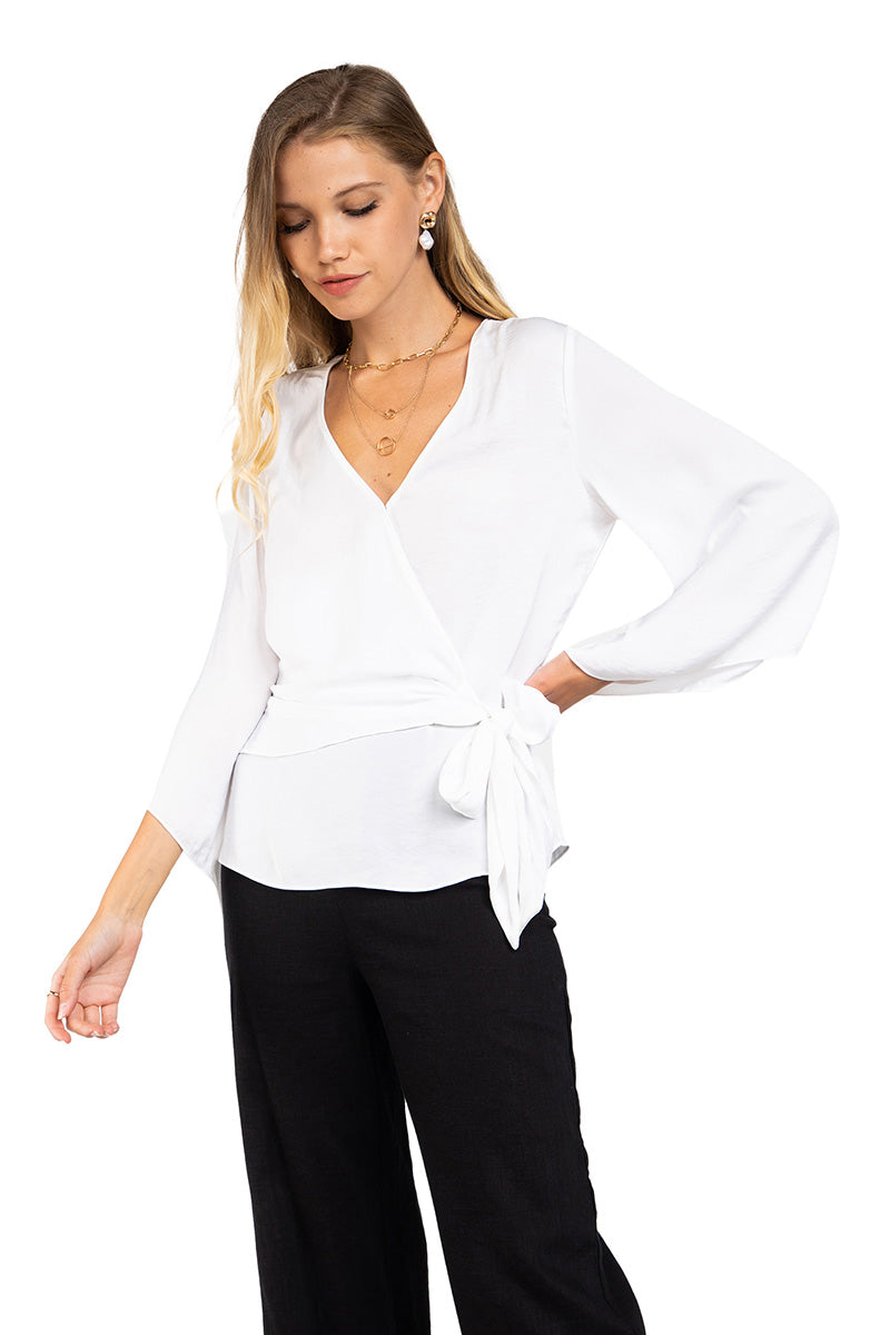 ╴Long Sleeve Tie Blouse With Bell Sleeves