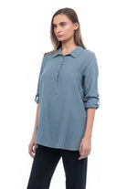 Long Sleeve Half Placket Collared Shirt