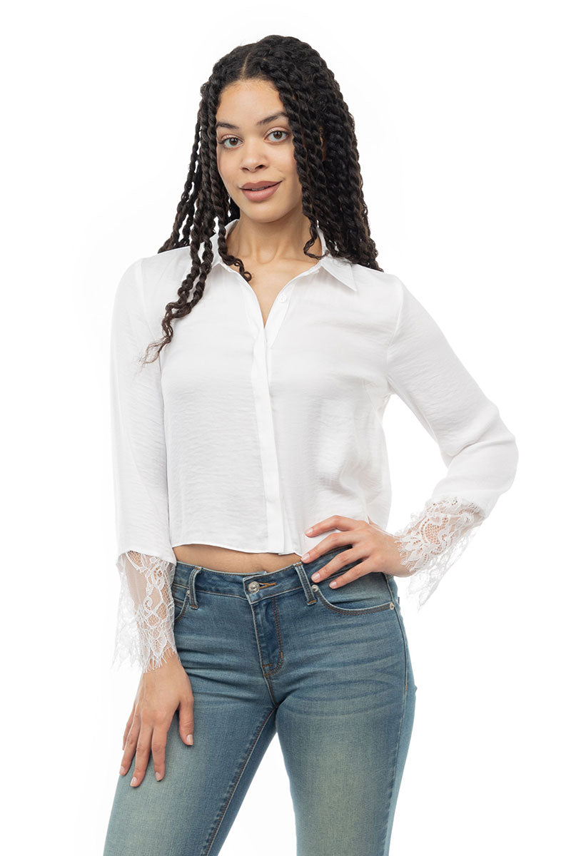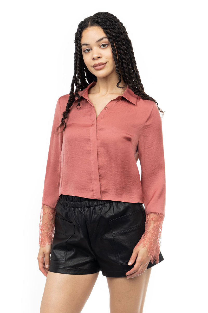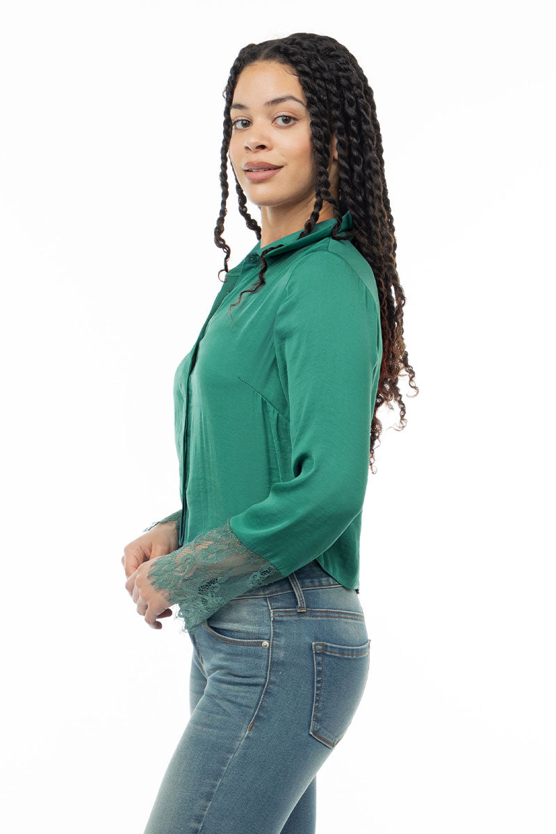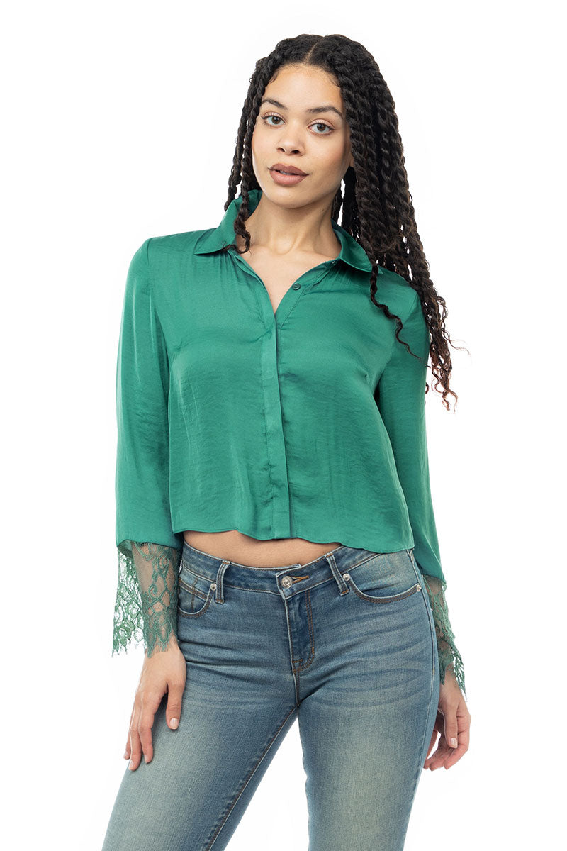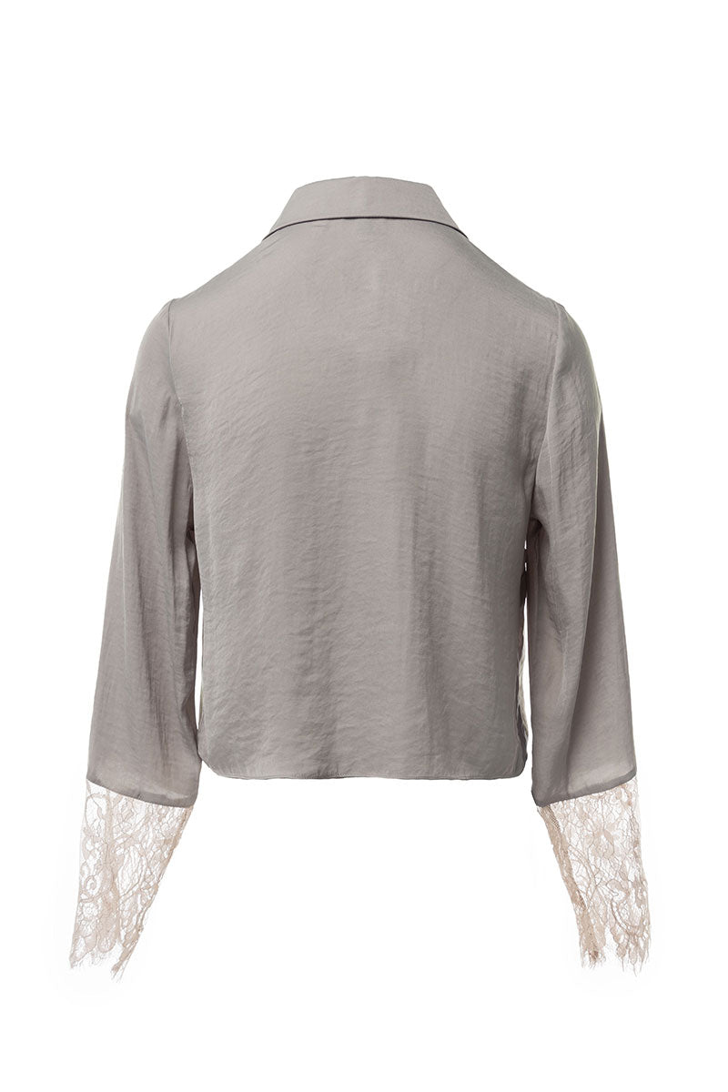 Long Sleeve Lace Satin Blouse