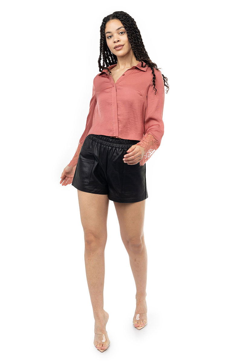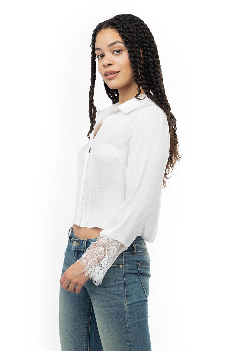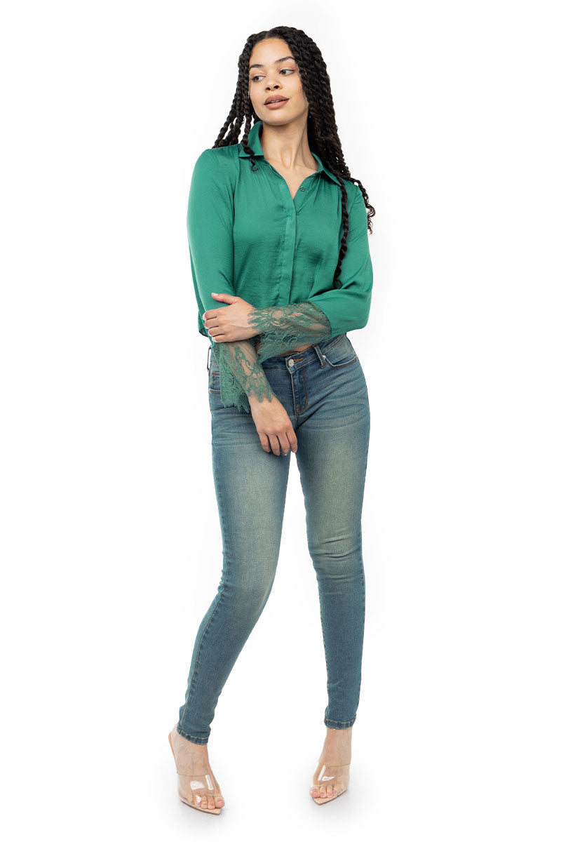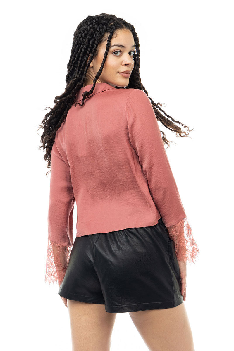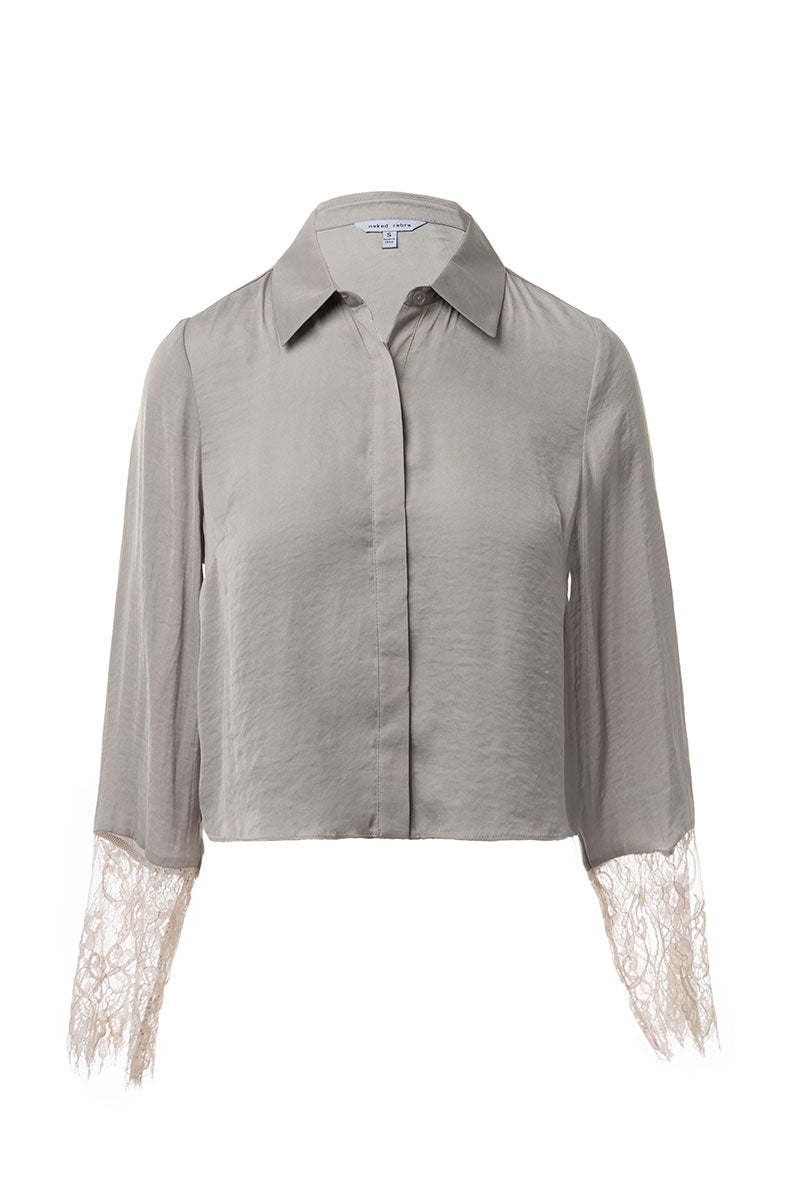 Long Sleeve Lace Satin Blouse