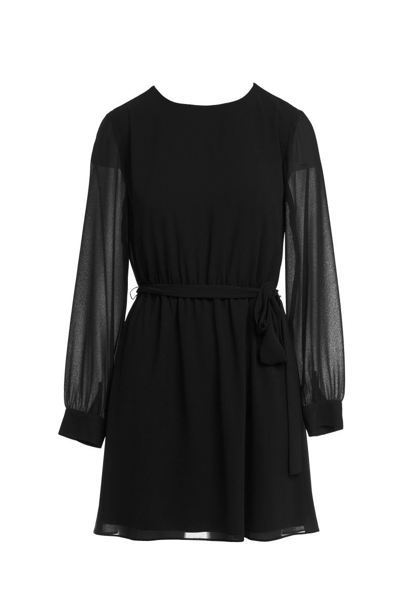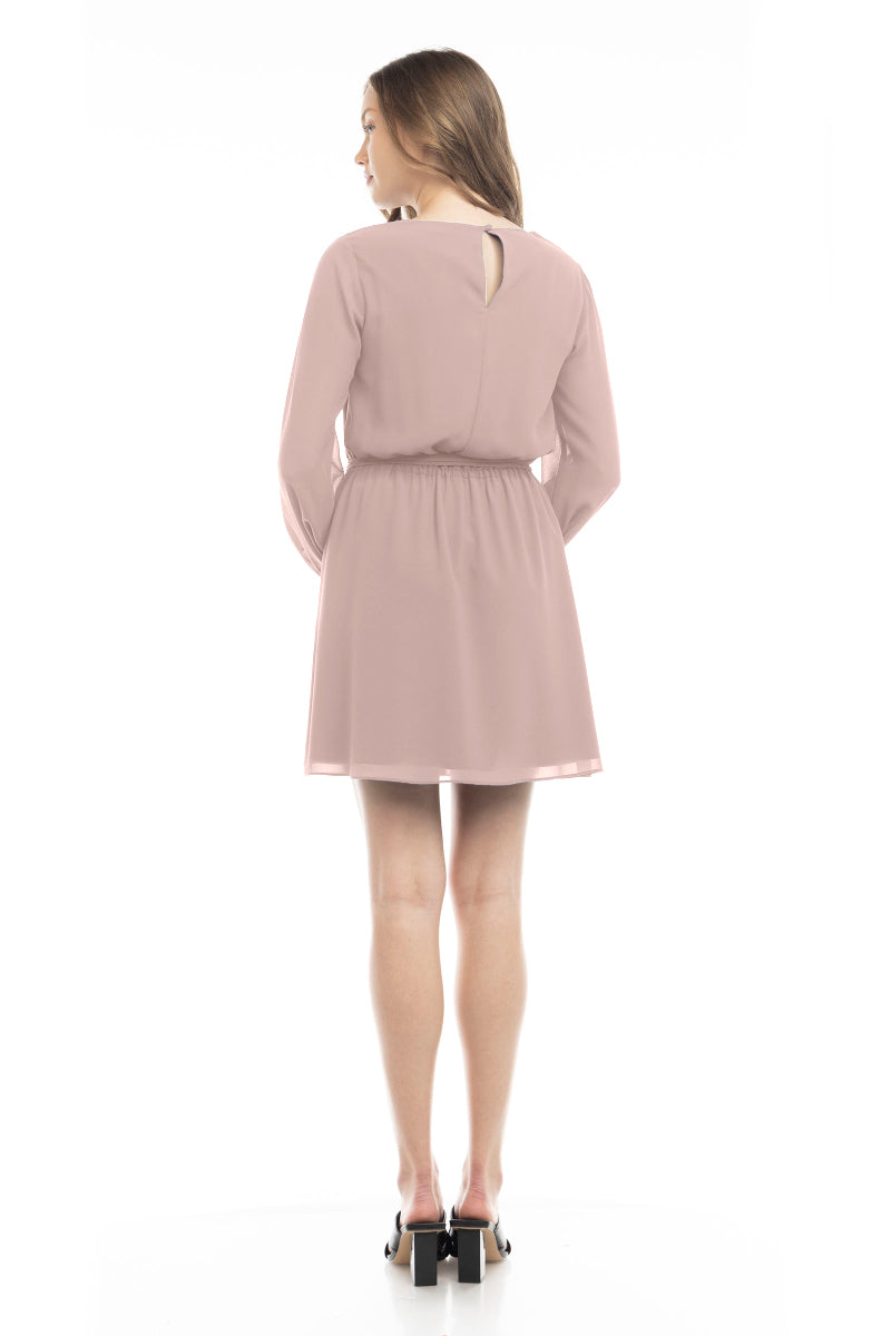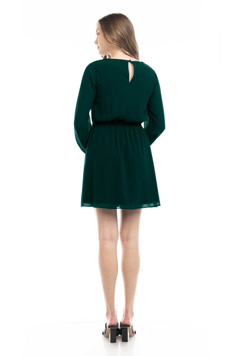 Long Sleeve Mini Dress With Self Waist Band
