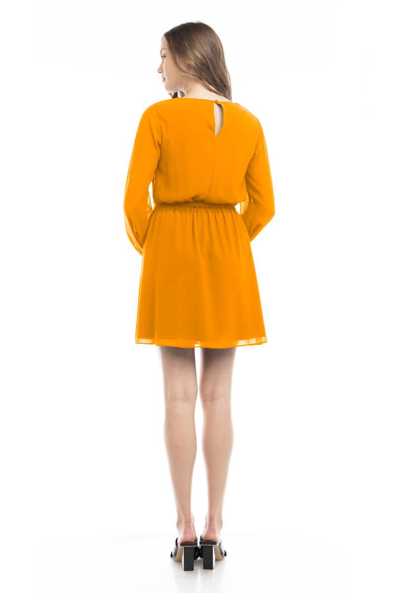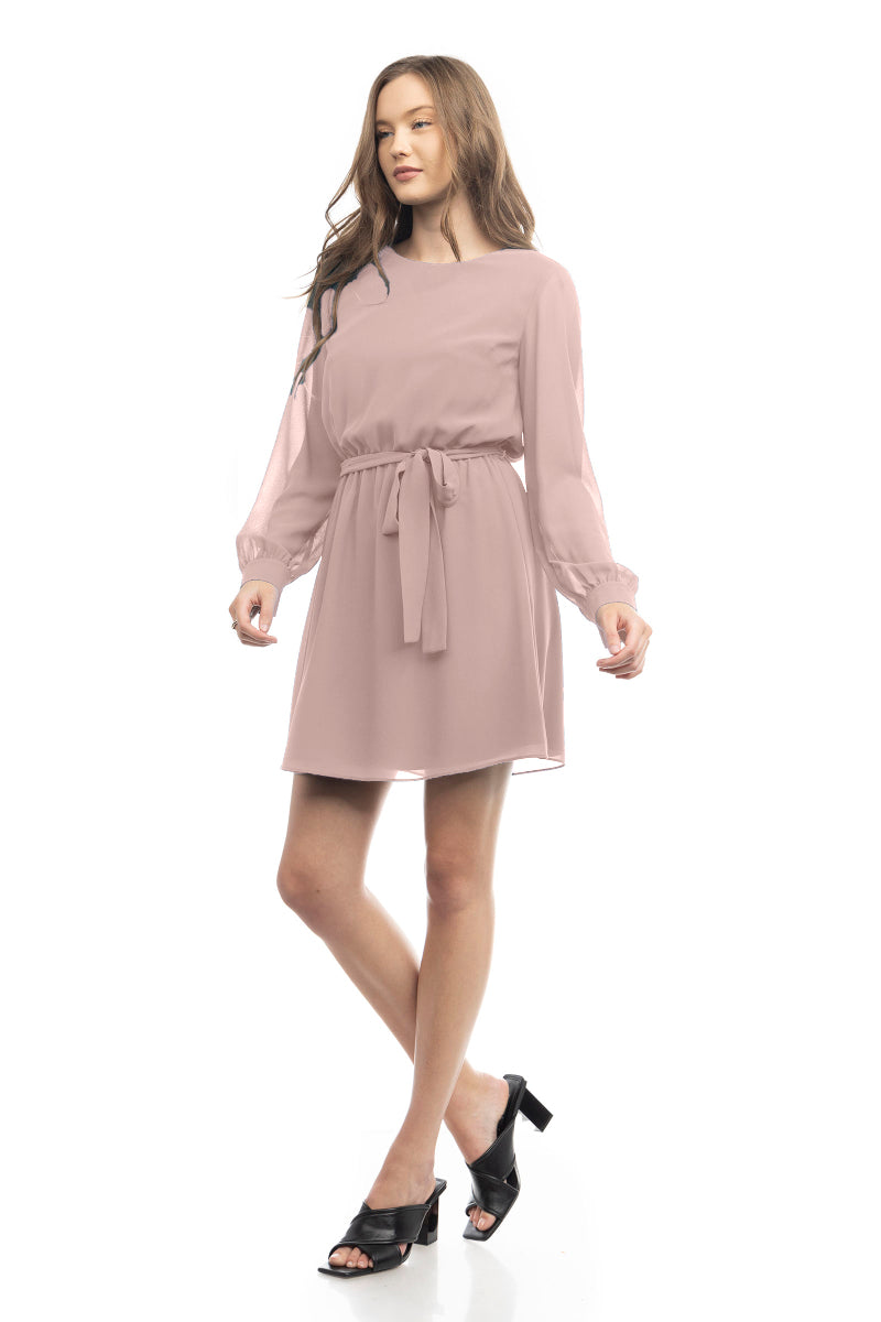 Women's Long Sleeve Mini Dress With Self Waist Band