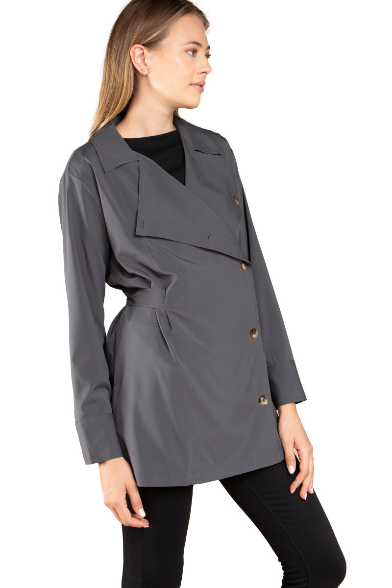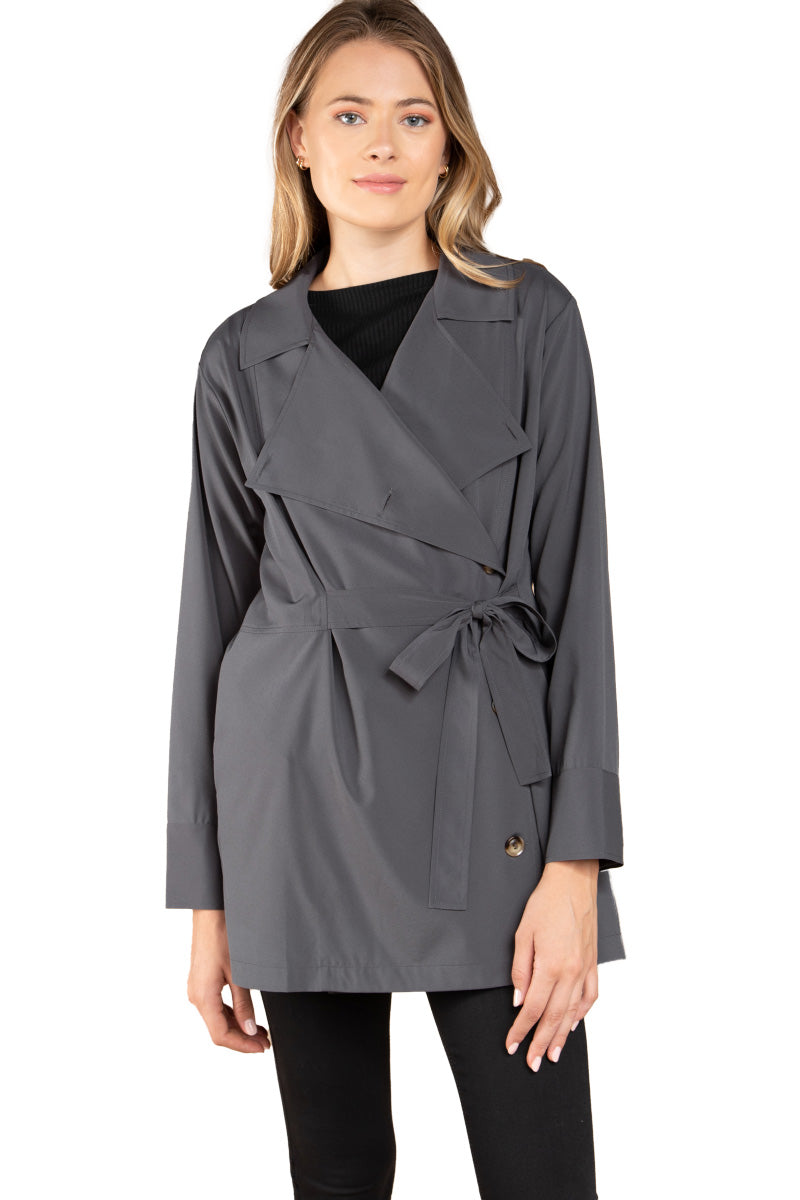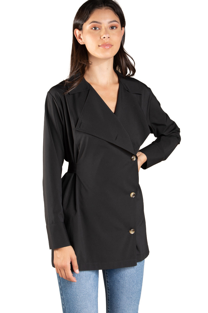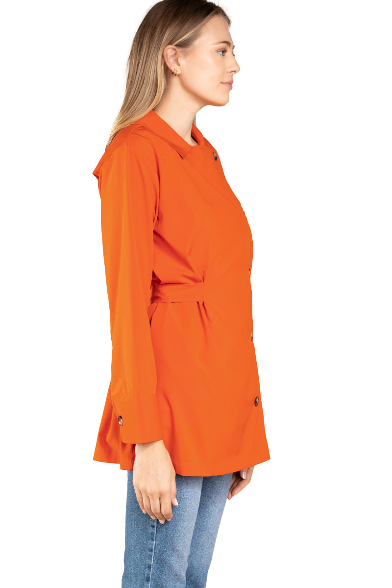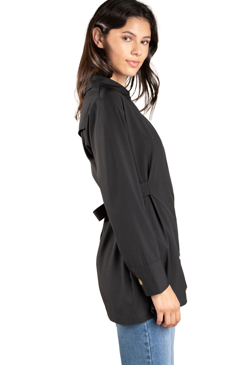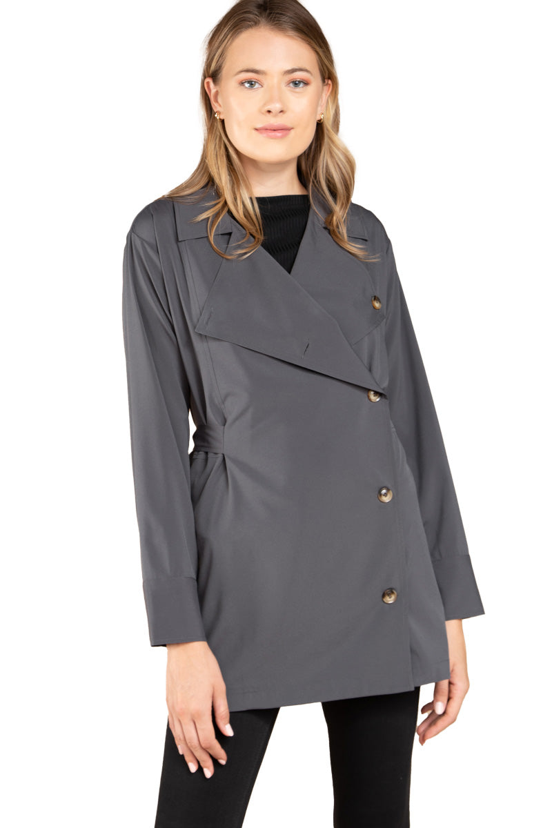 ╴Structured trench-inspired design with long sleeves and a tailored fit.