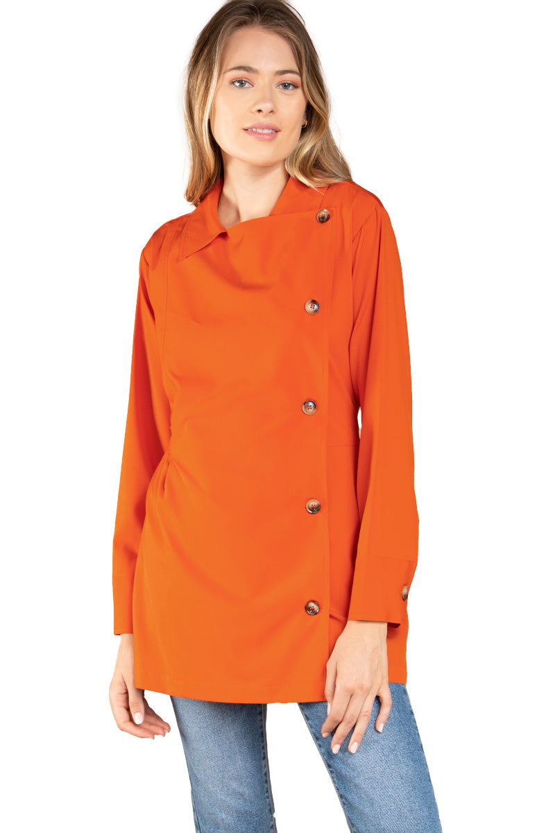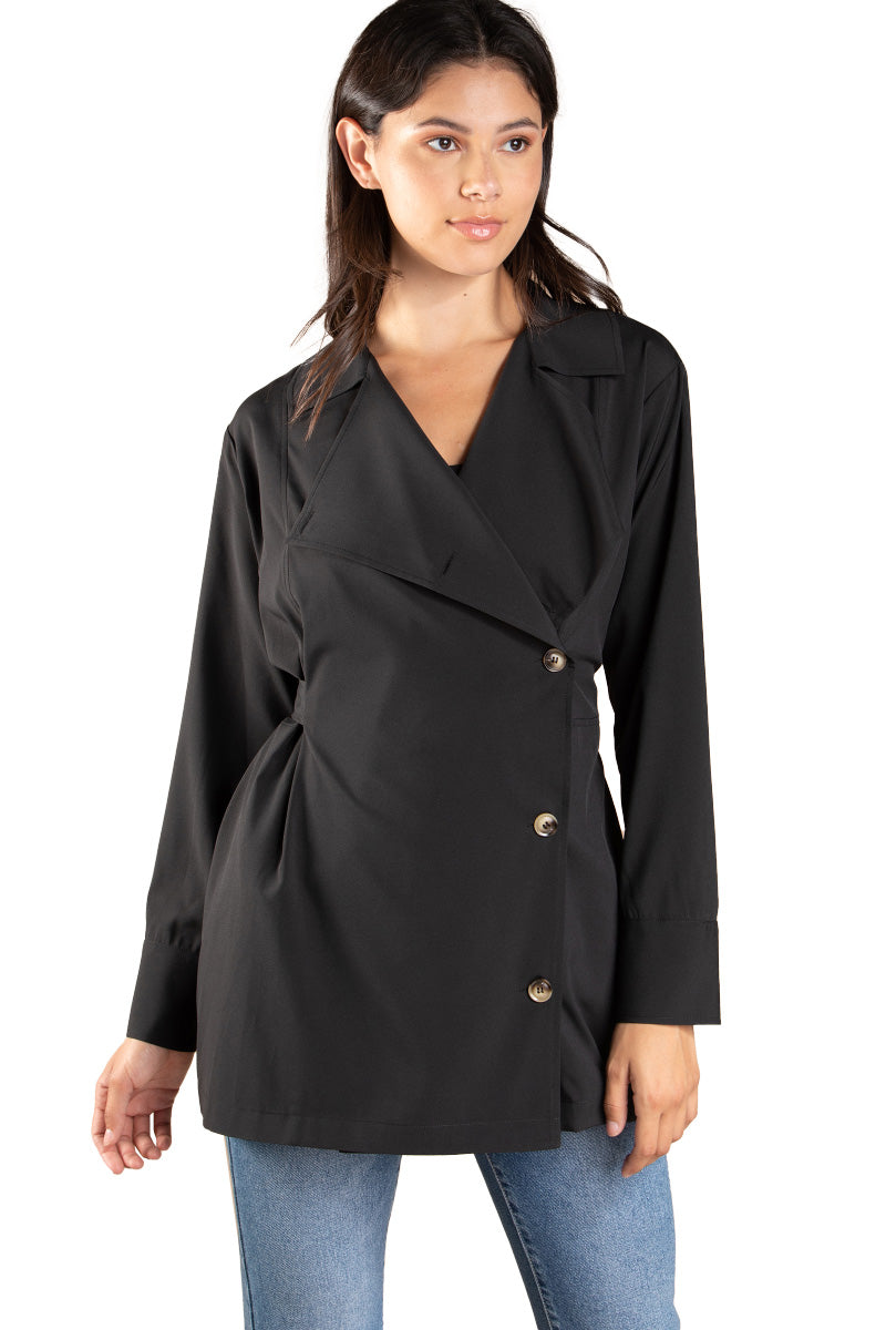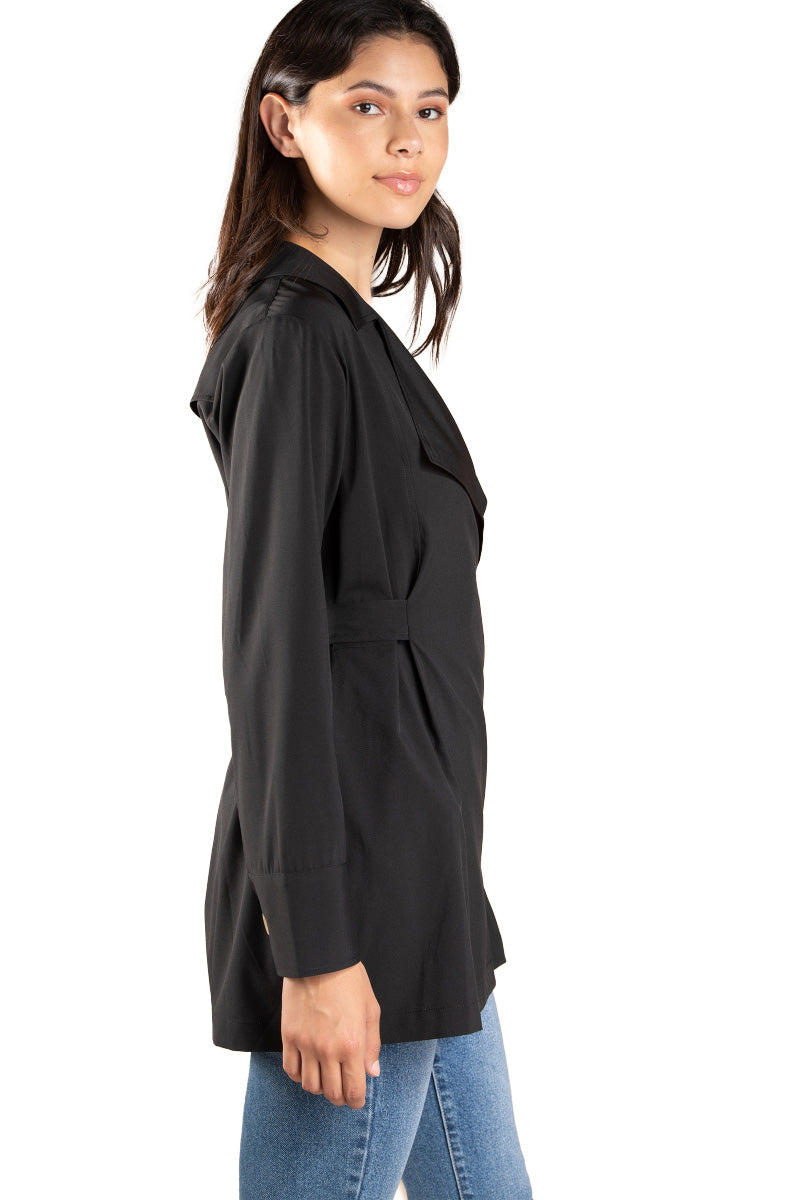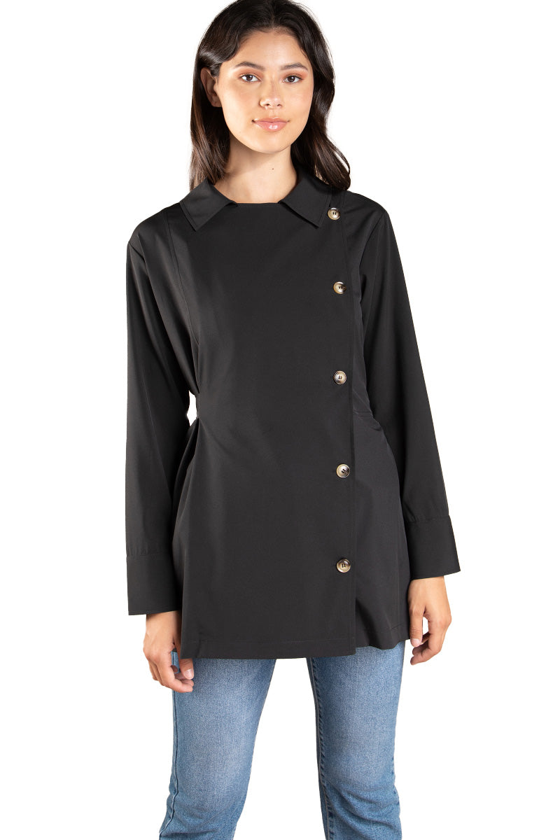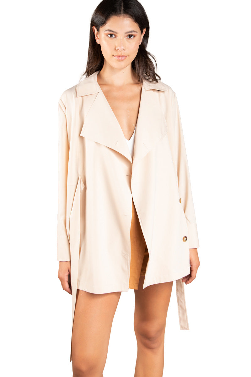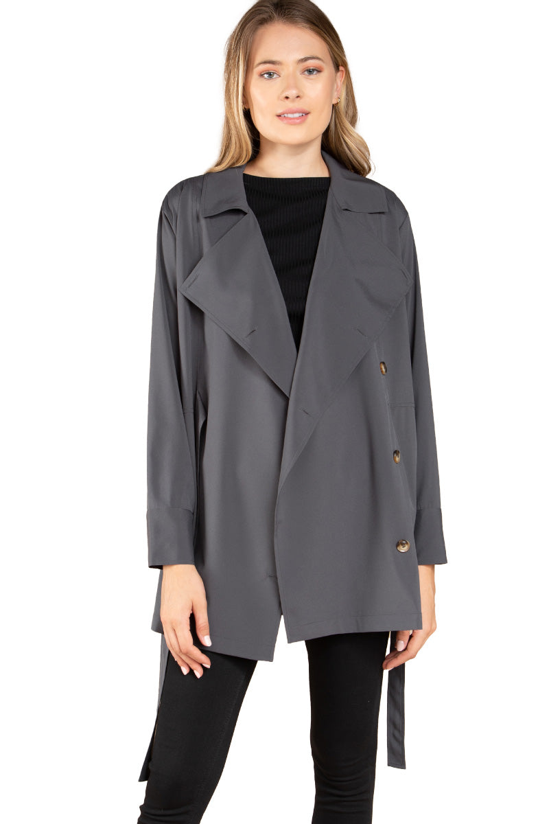 ╴Structured trench-inspired design with long sleeves and a tailored fit.