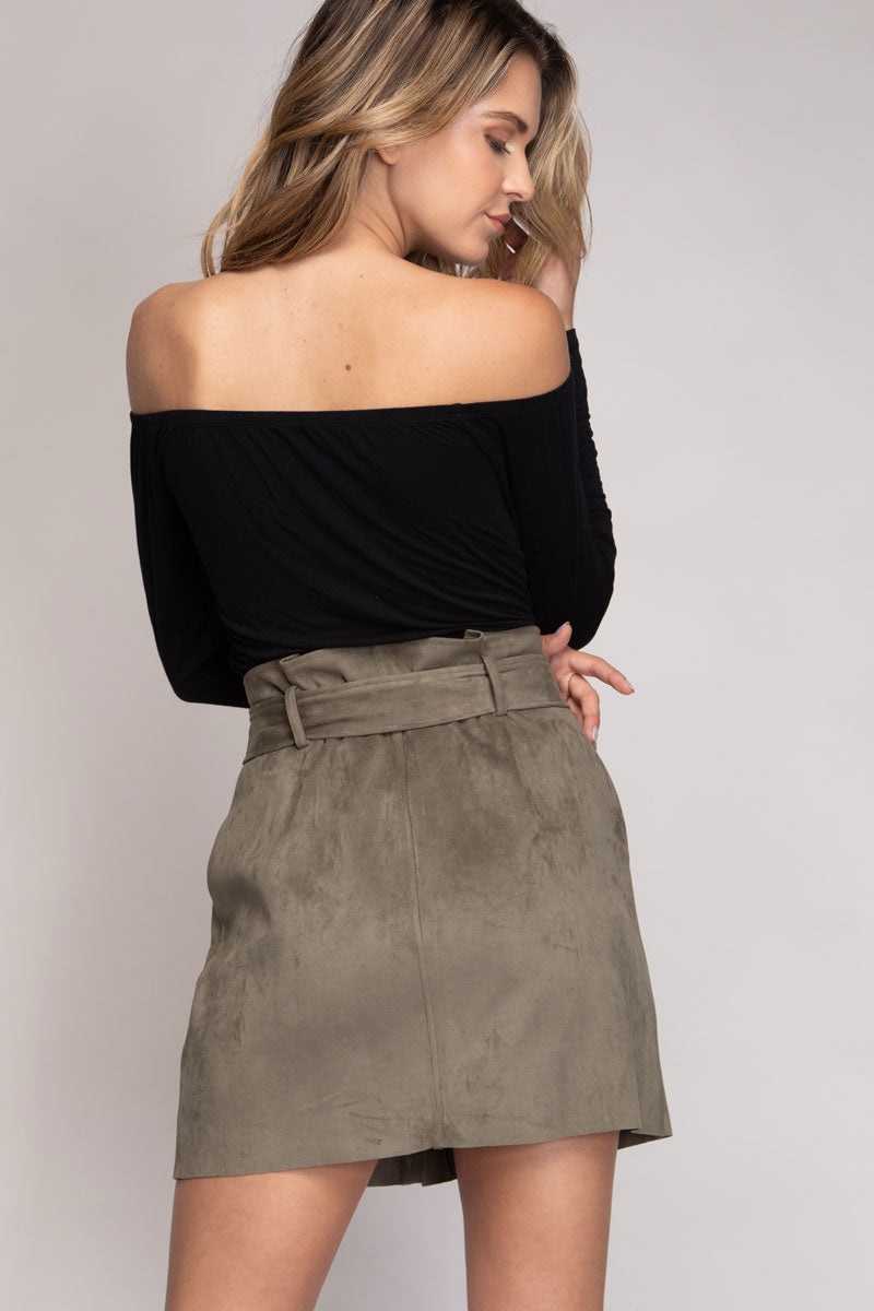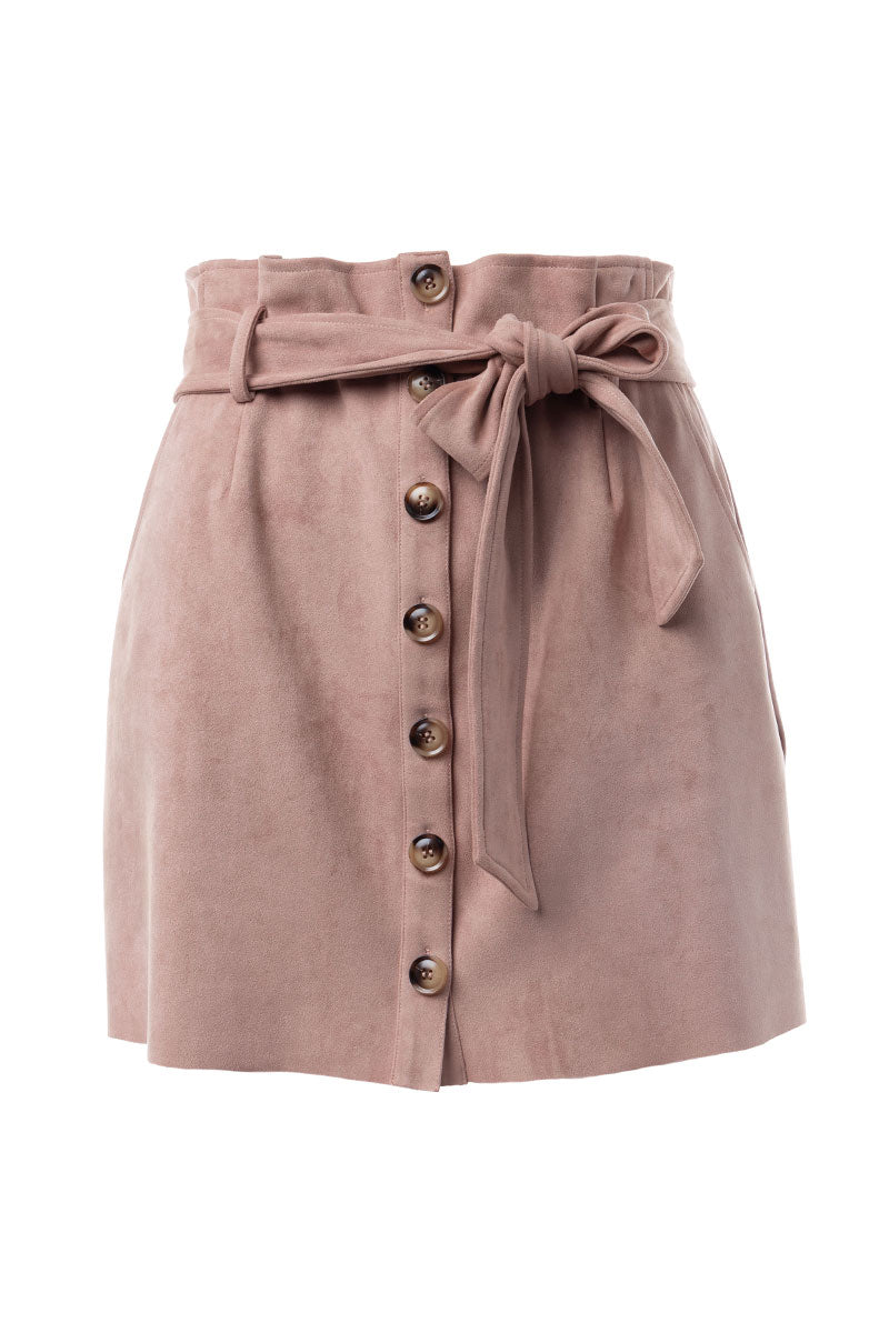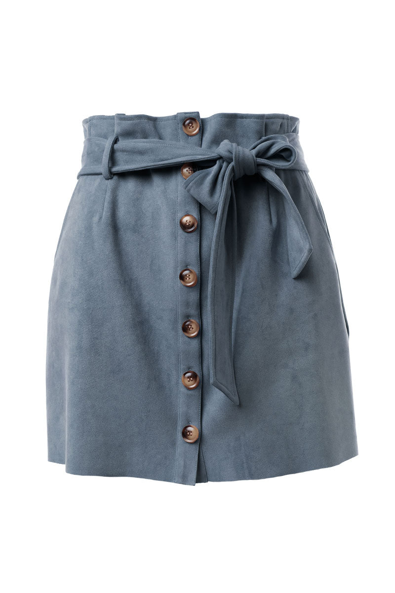 Mini Button Down Paper Bag Skirt With Self Belt