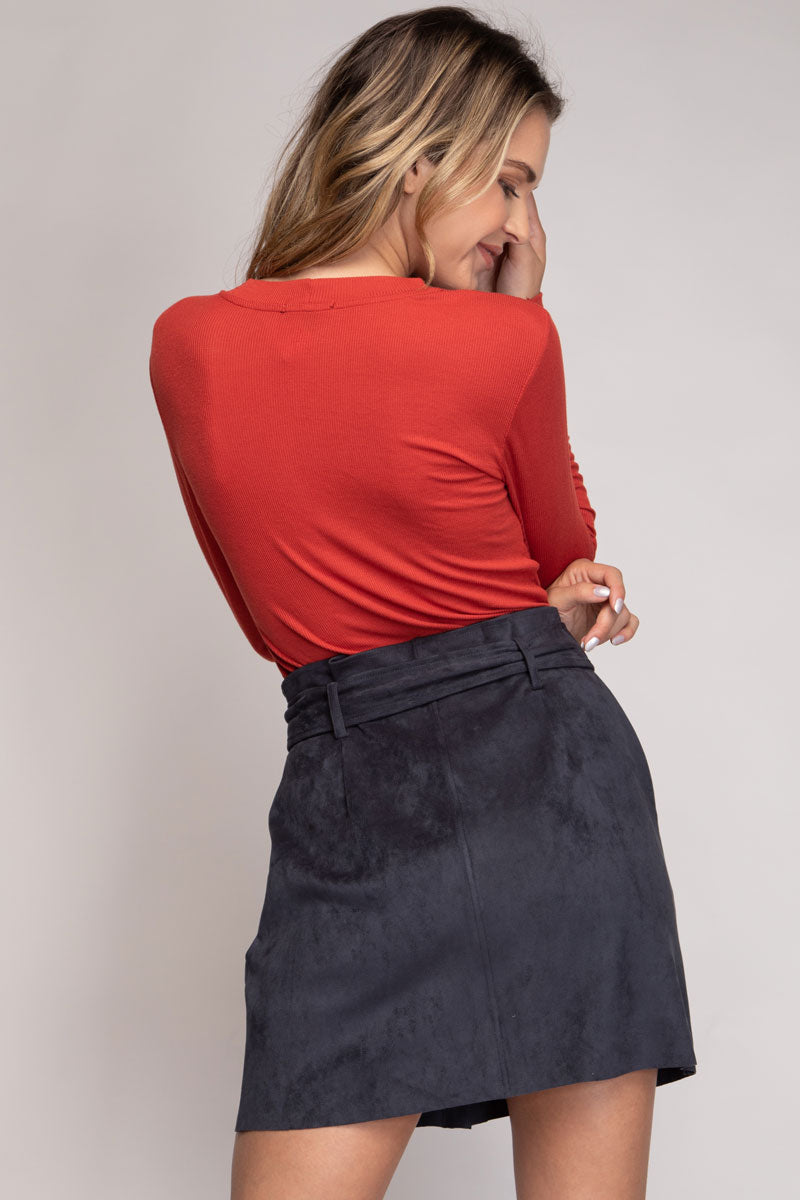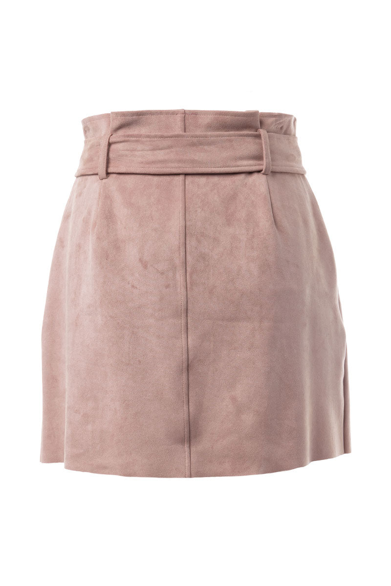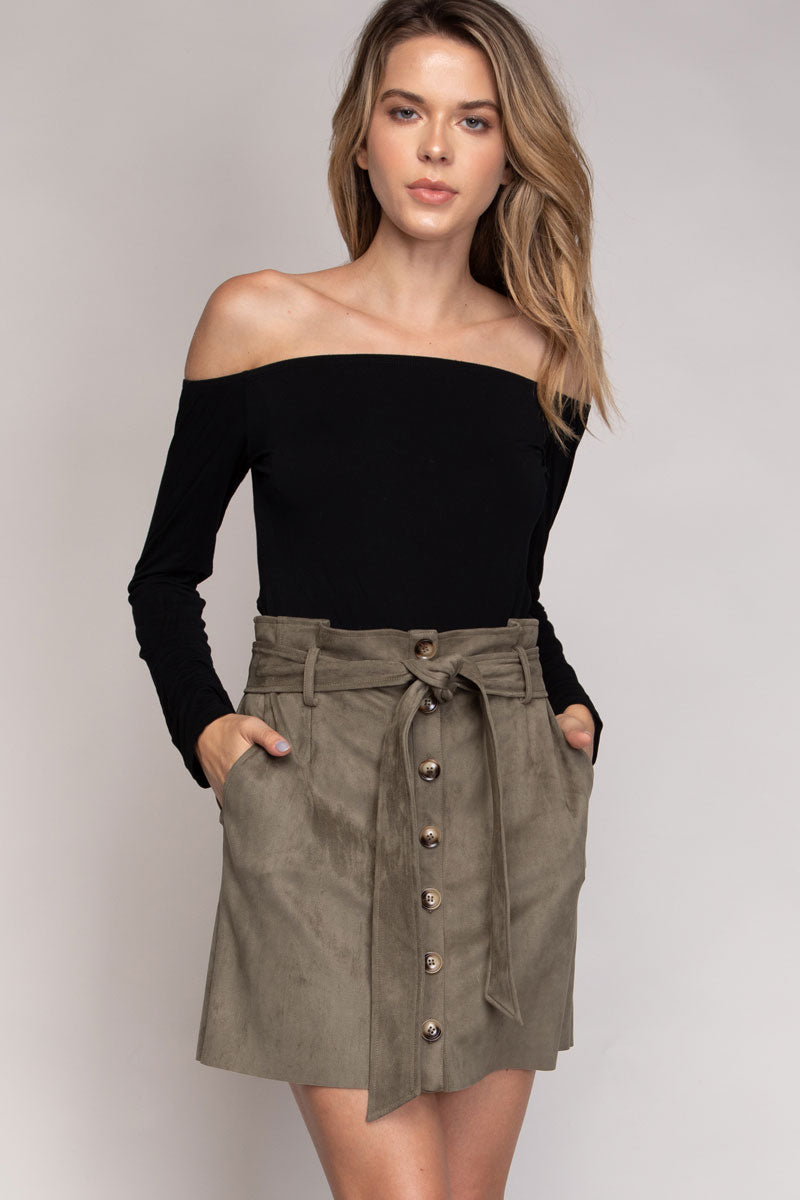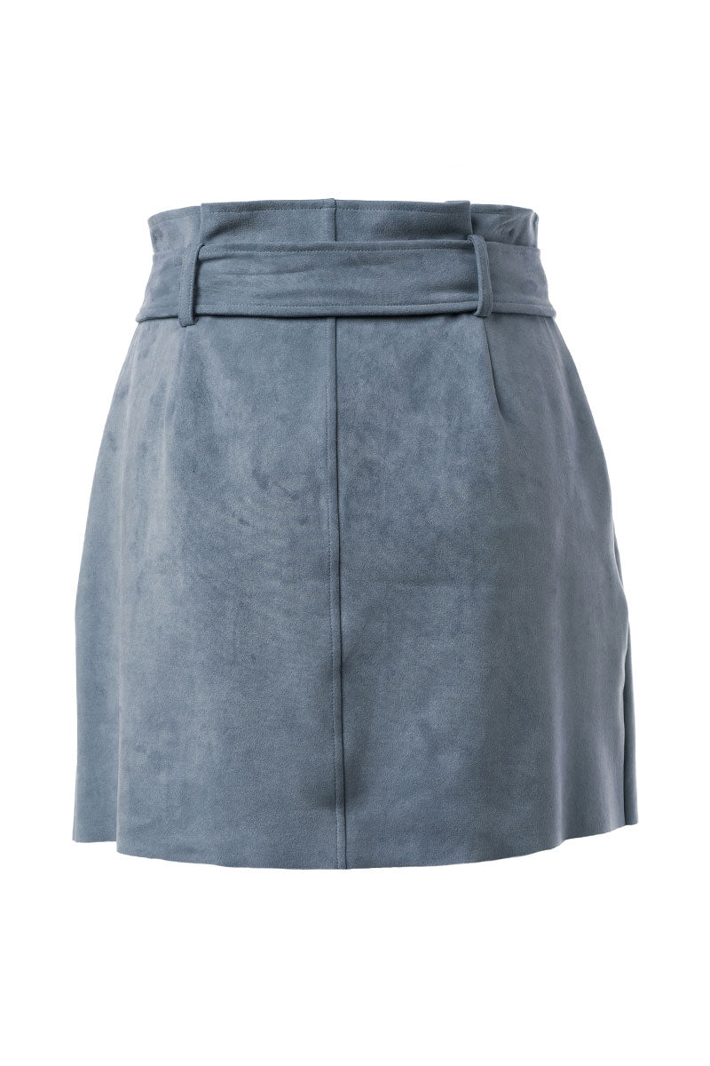 Mini Button Down Paper Bag Skirt With Self Belt