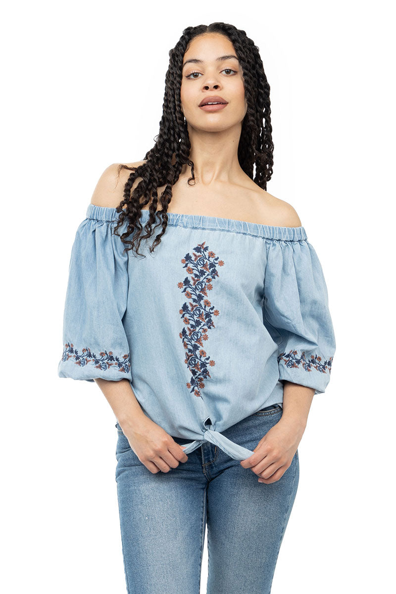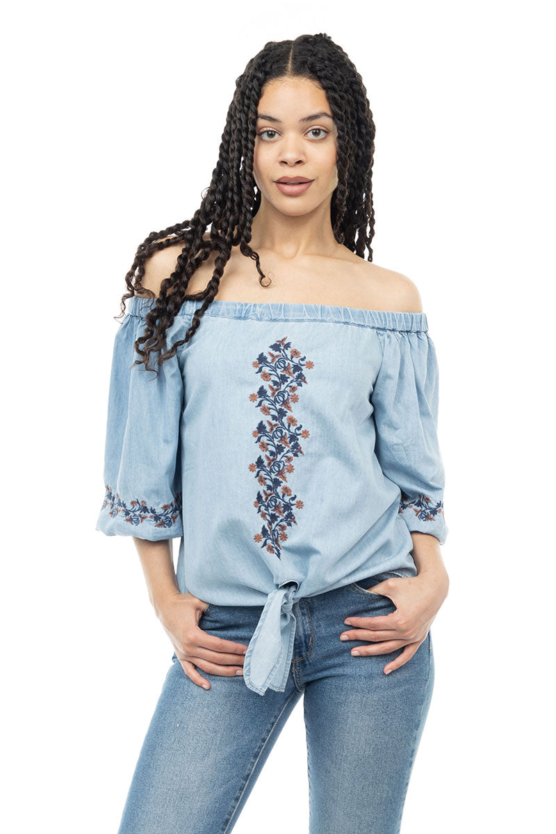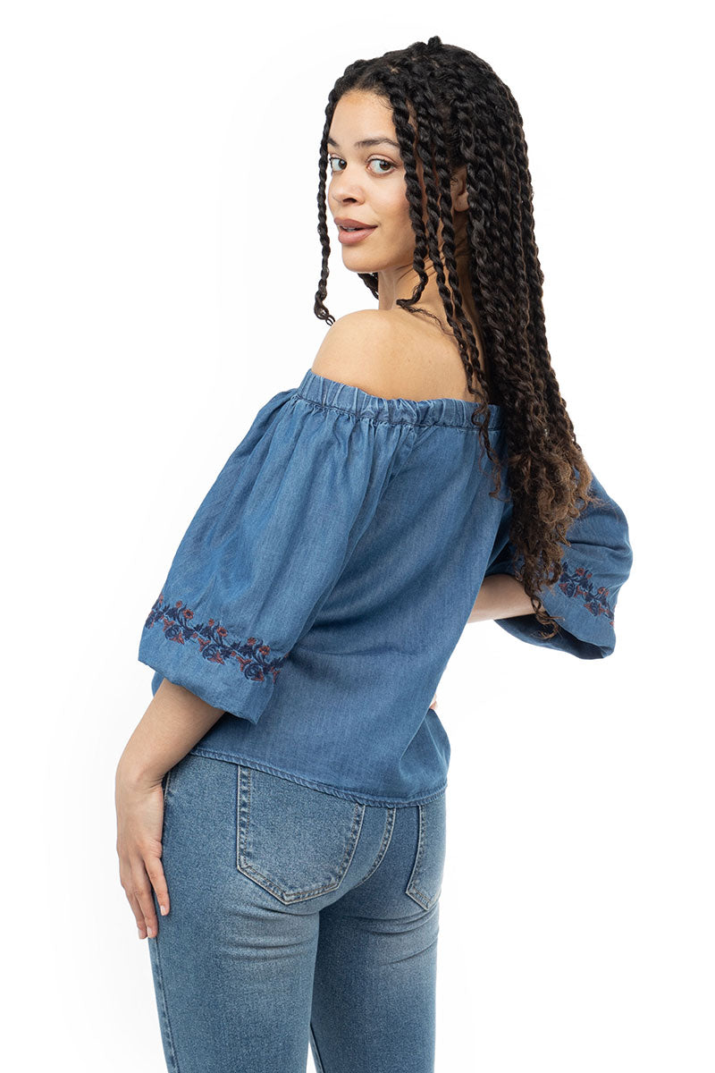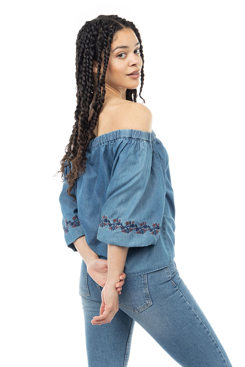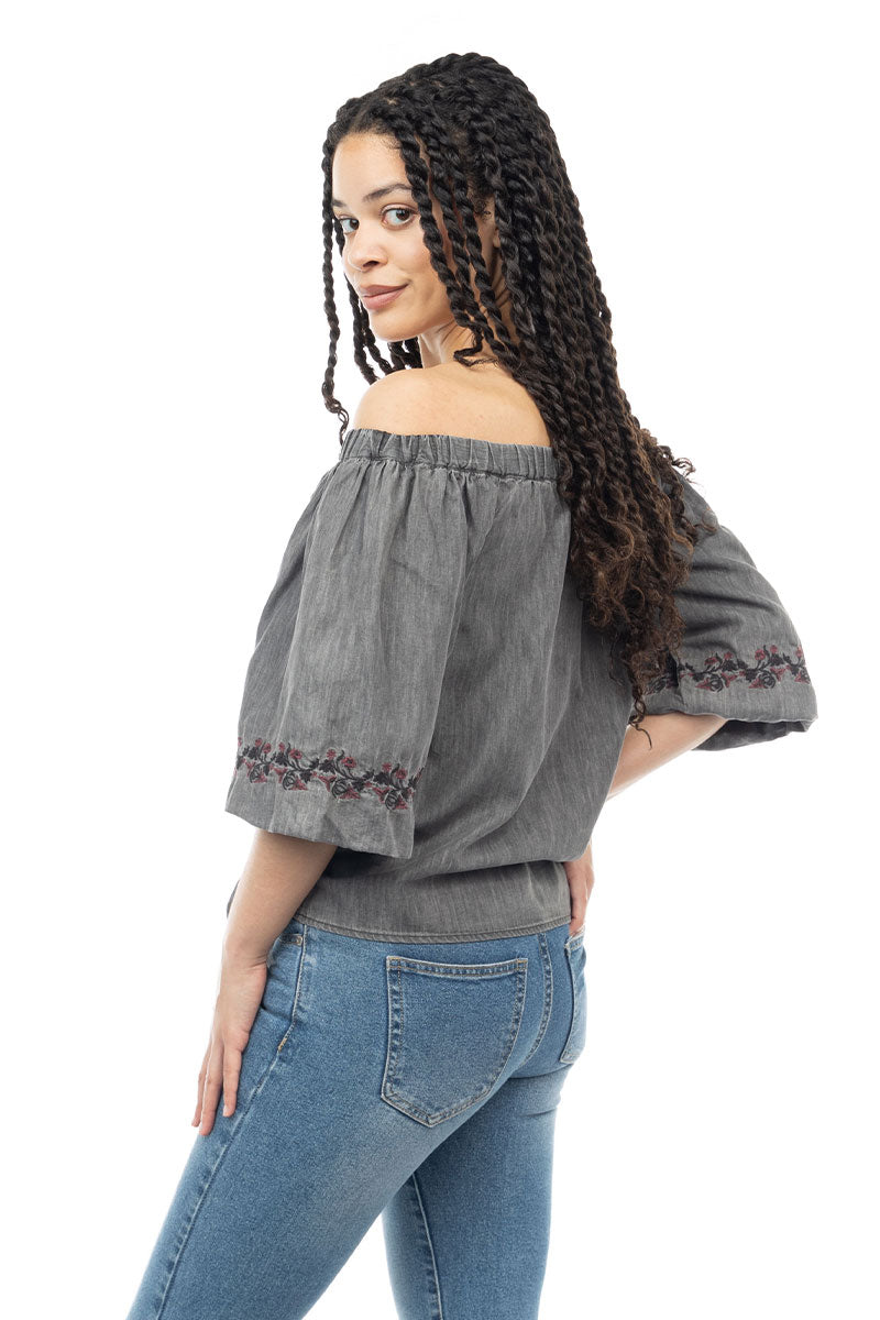 Upgrade your wardrobe with our stylish Off Shoulder Bubble Sleeve Embroidered Blouse. This elegant design features a trendy off shoulder neckline and delicate embroidered details, perfect for a chic and sophisticated look. Be ready to impress with this must-have piece.