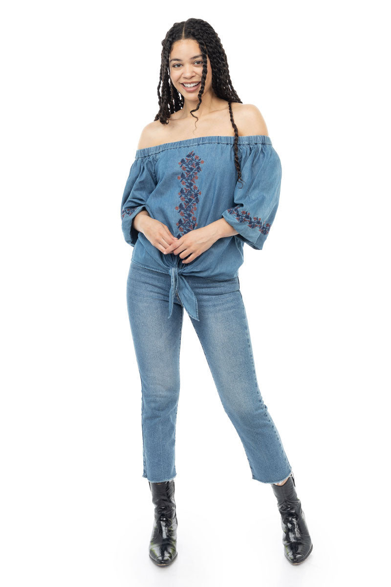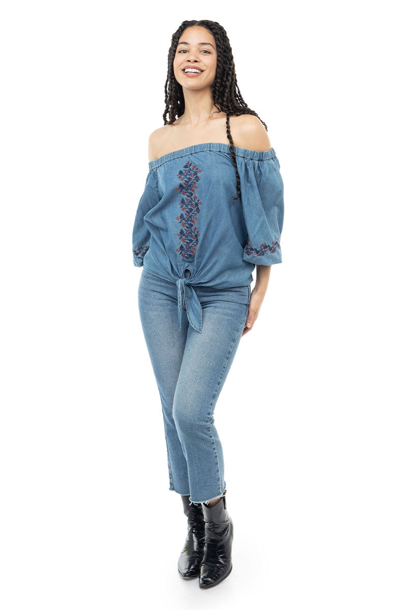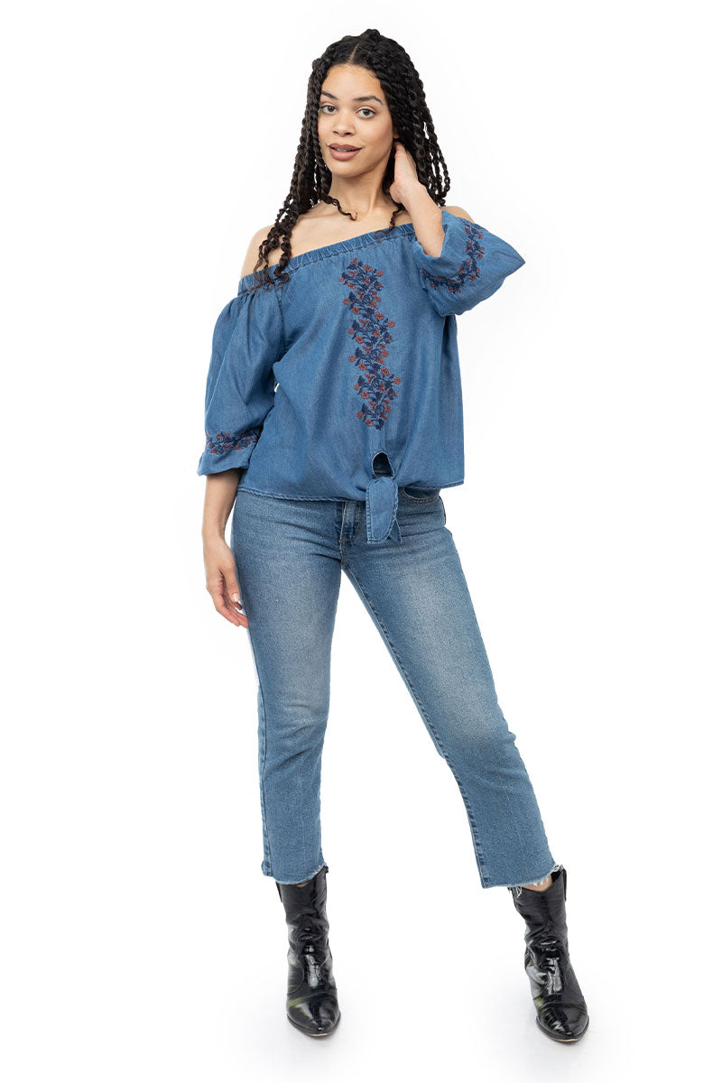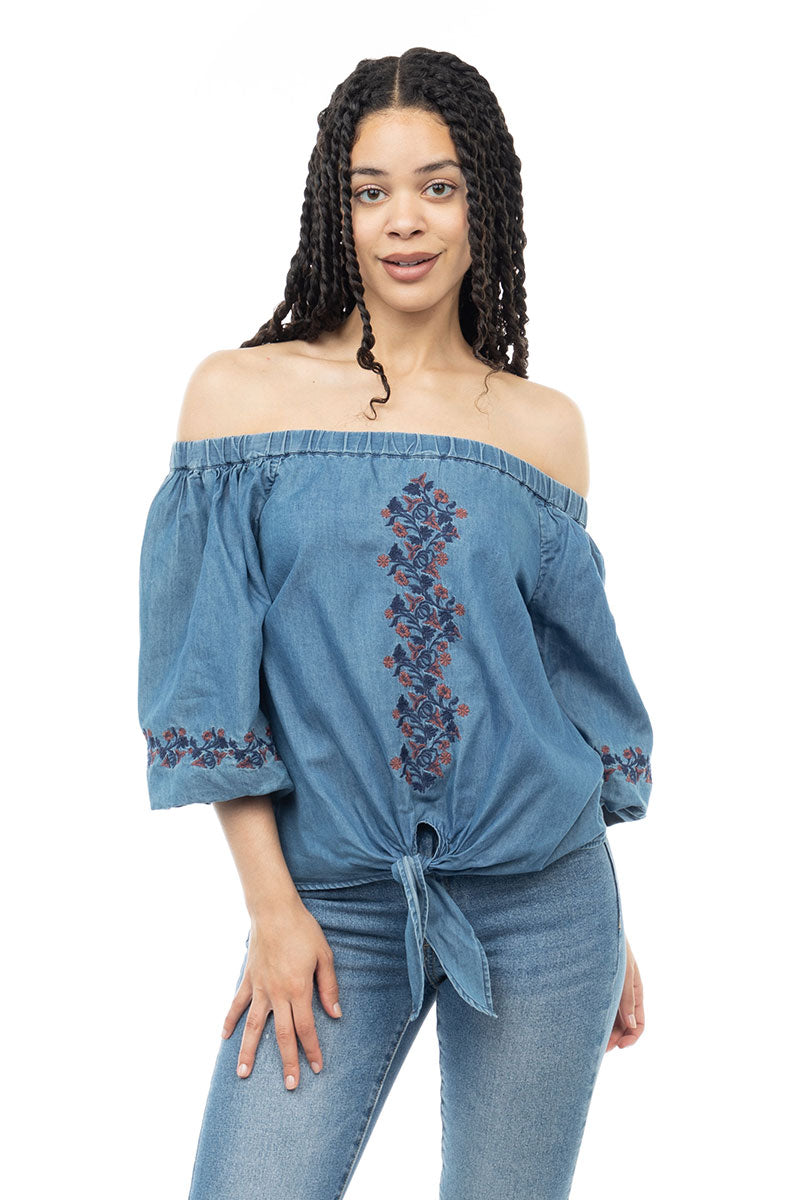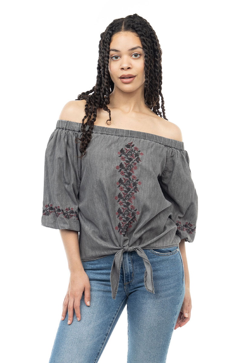 Upgrade your wardrobe with our stylish Off Shoulder Bubble Sleeve Embroidered Blouse. This elegant design features a trendy off shoulder neckline and delicate embroidered details, perfect for a chic and sophisticated look. Be ready to impress with this must-have piece.
