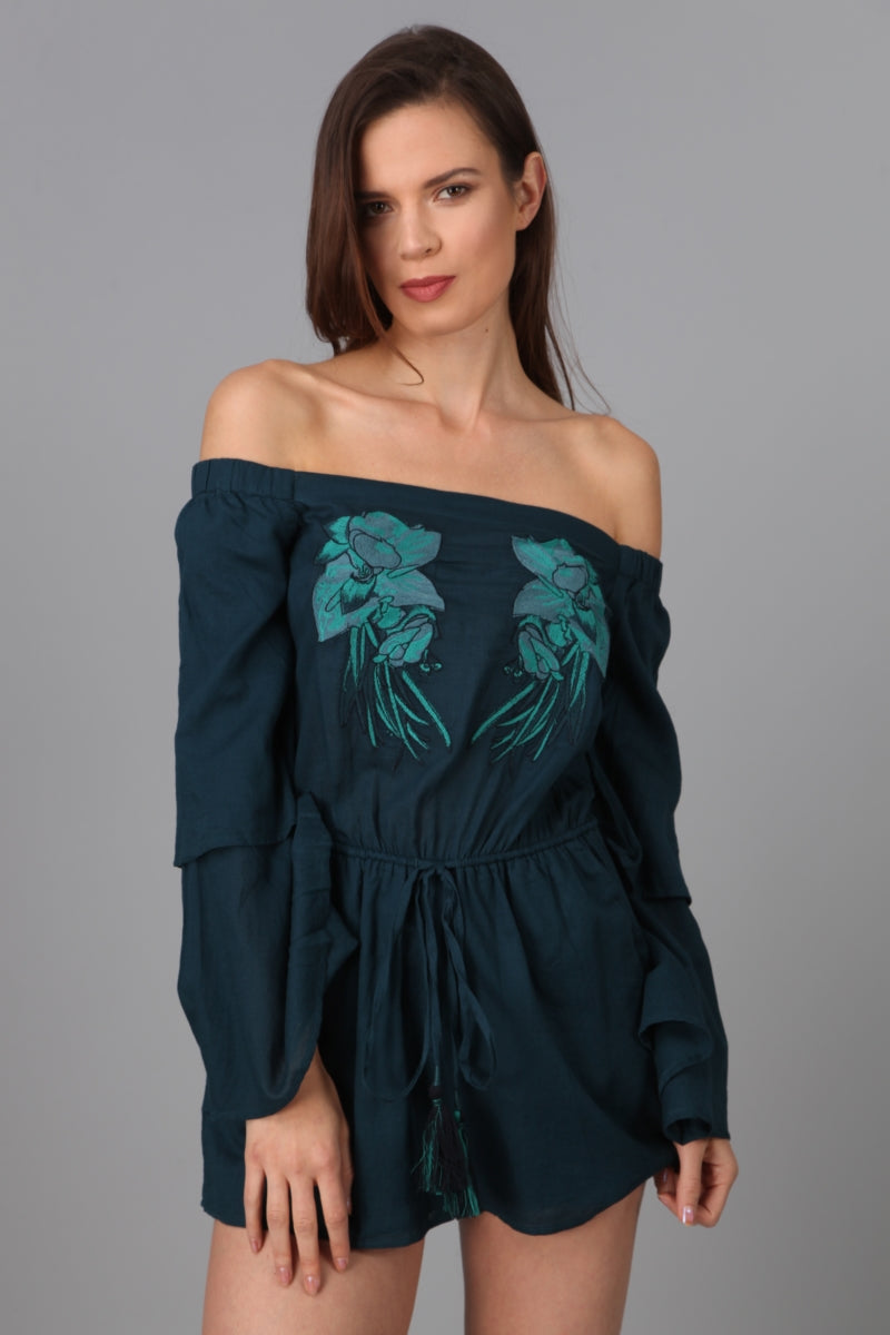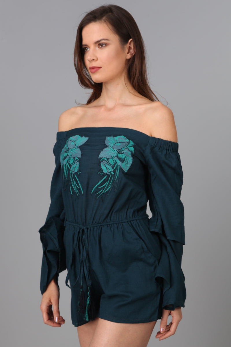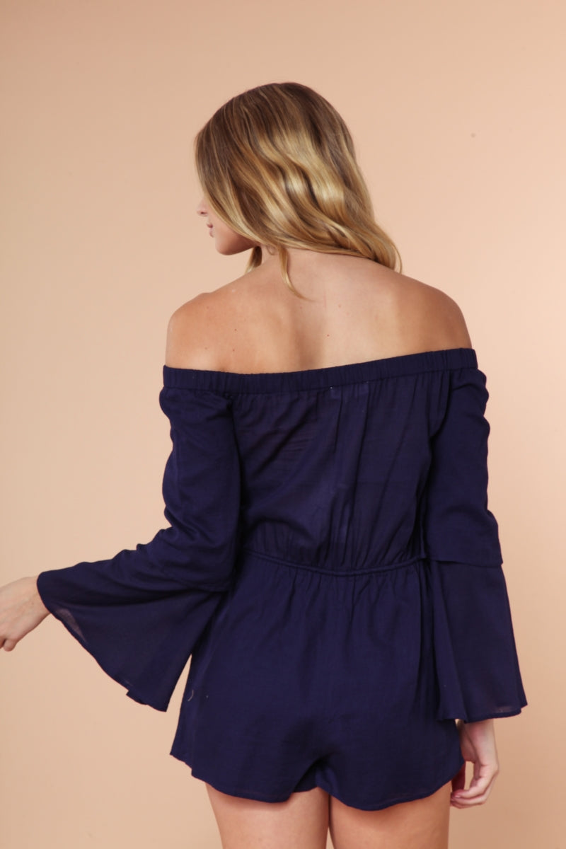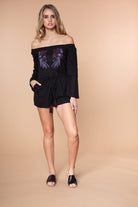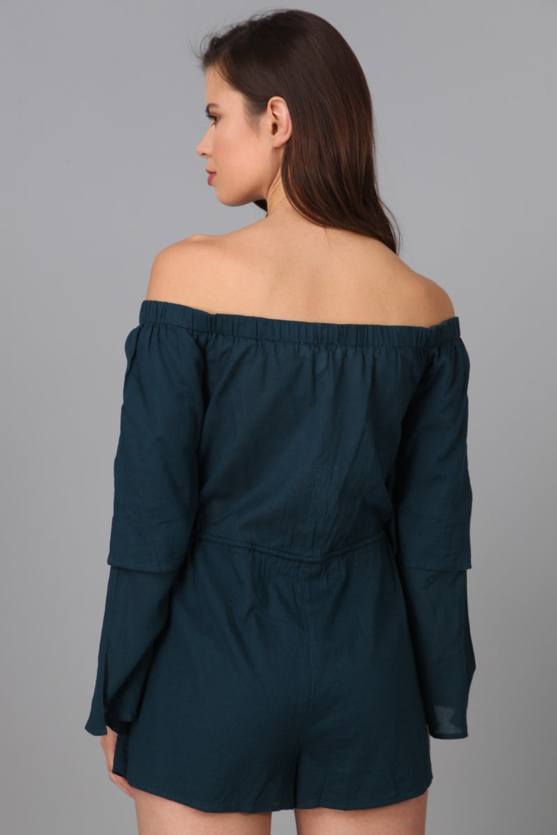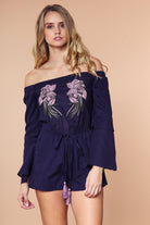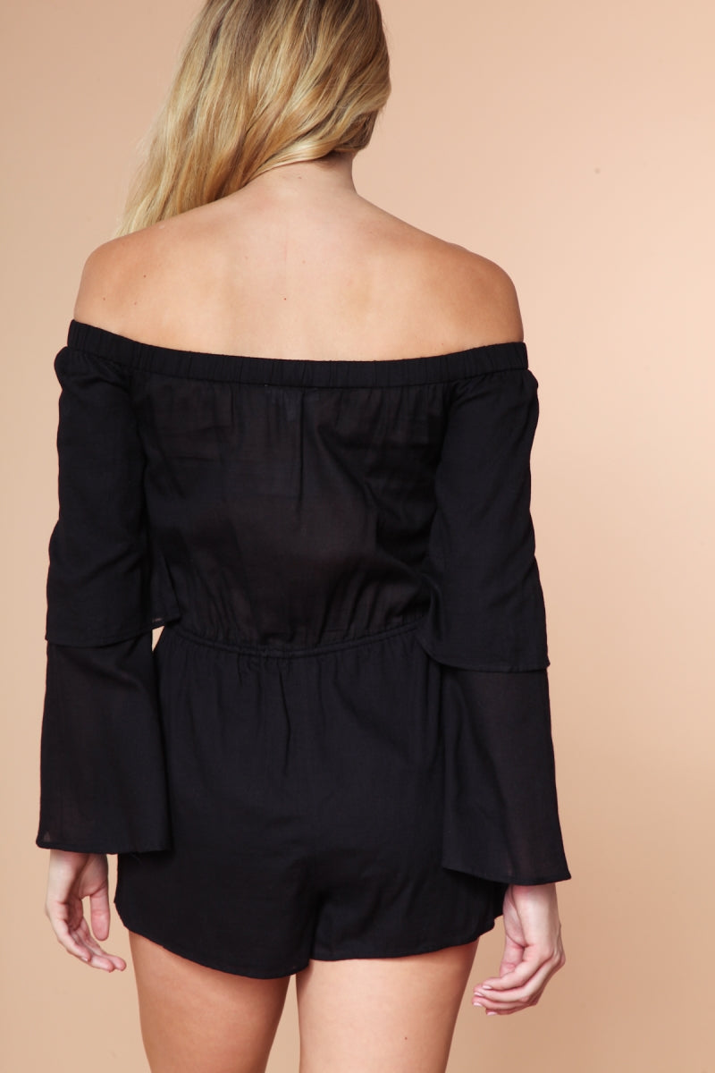 Off Shoulder Double Ruffle Sleeve Romper