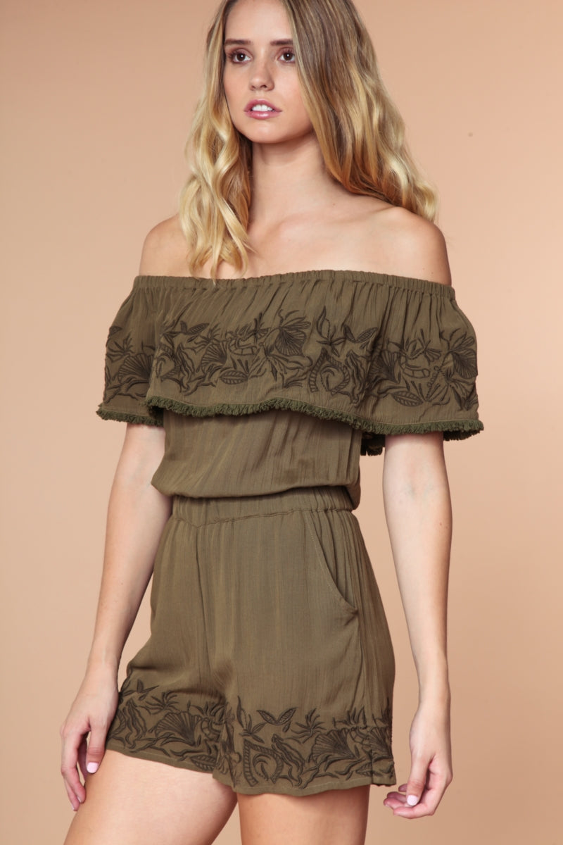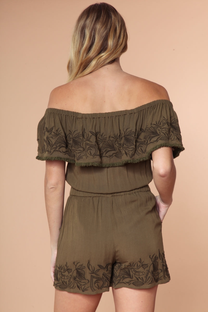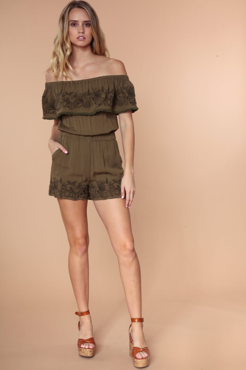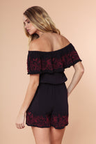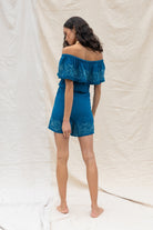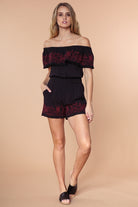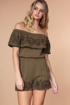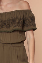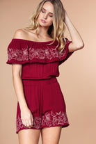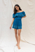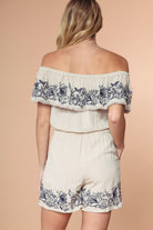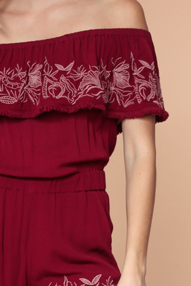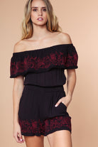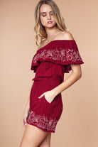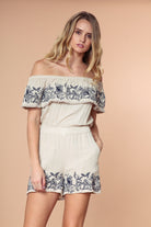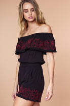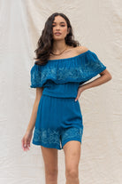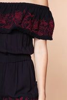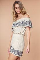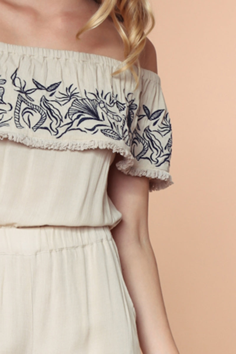 ╴Features an off-shoulder neckline and delicate embroidery for a flirty, boho-inspired look.