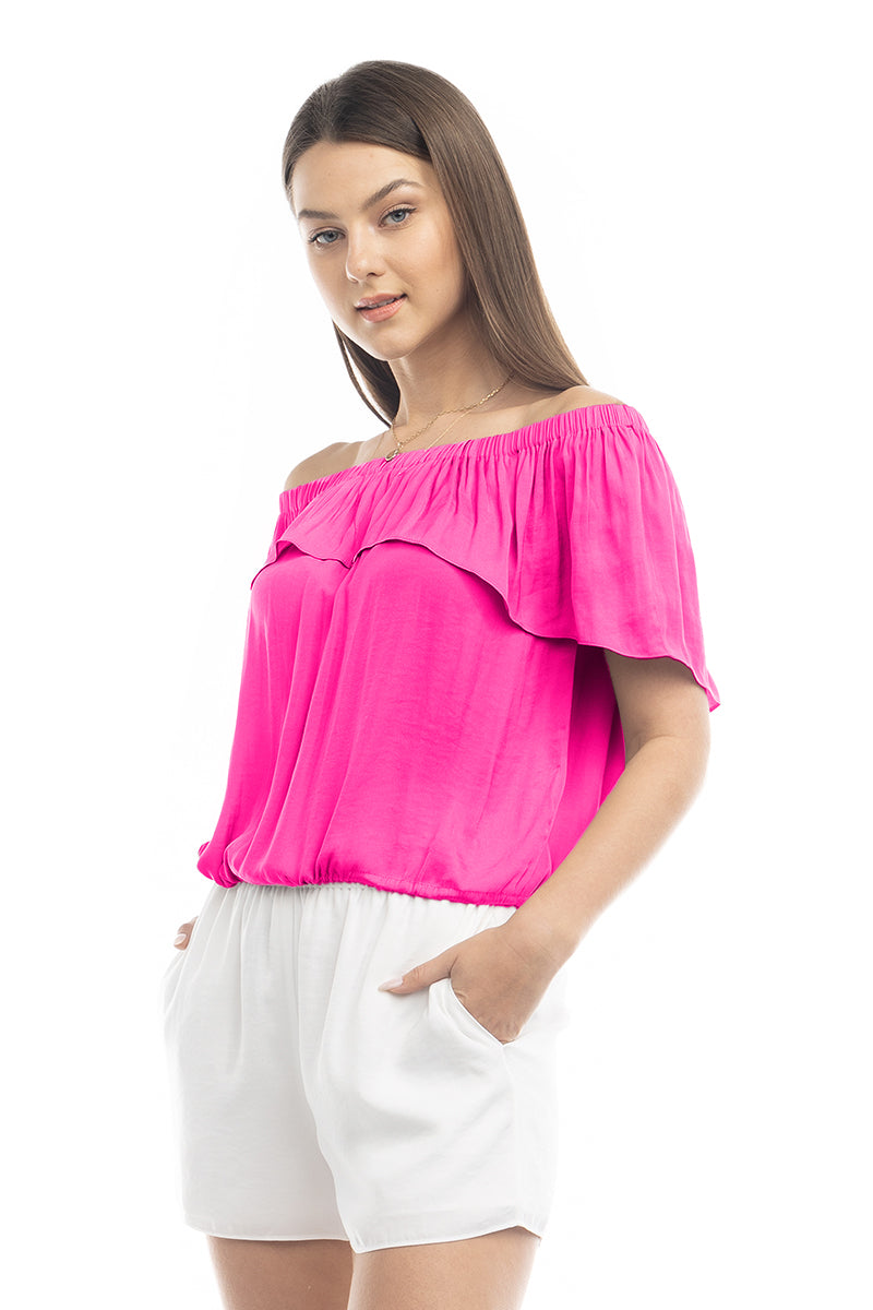This Off Shoulder Hi Low Neck Trim Blouse is a stylish and versatile piece for any wardrobe. With its off shoulder design and hi low neckline, it provides a trendy and flattering look. The neck trim adds an elegant touch to any outfit. Perfect for any casual or formal occasion.
