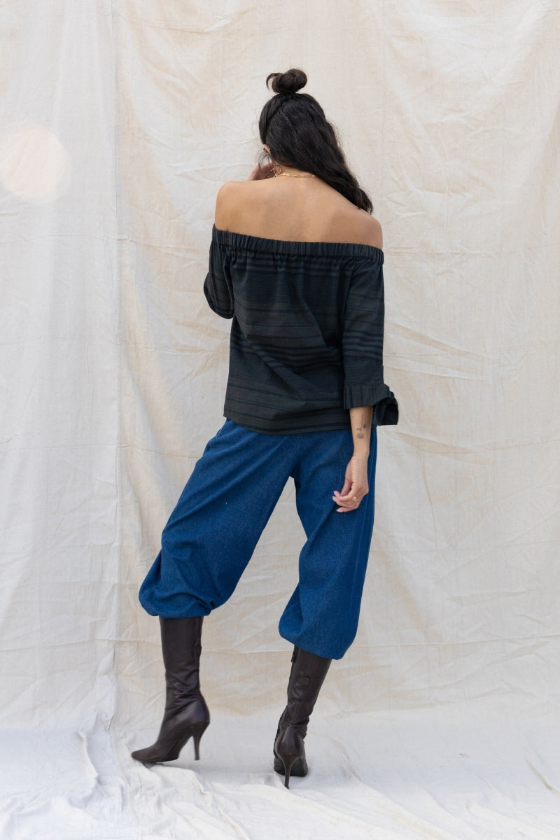 ╴Women's Off Shoulder Tie Sleeve Blouse