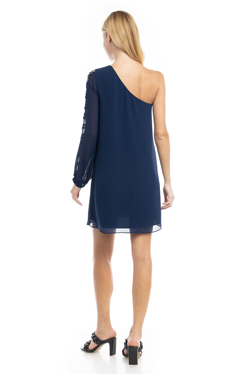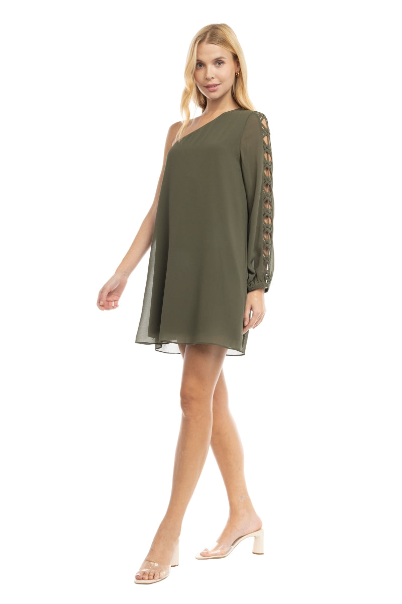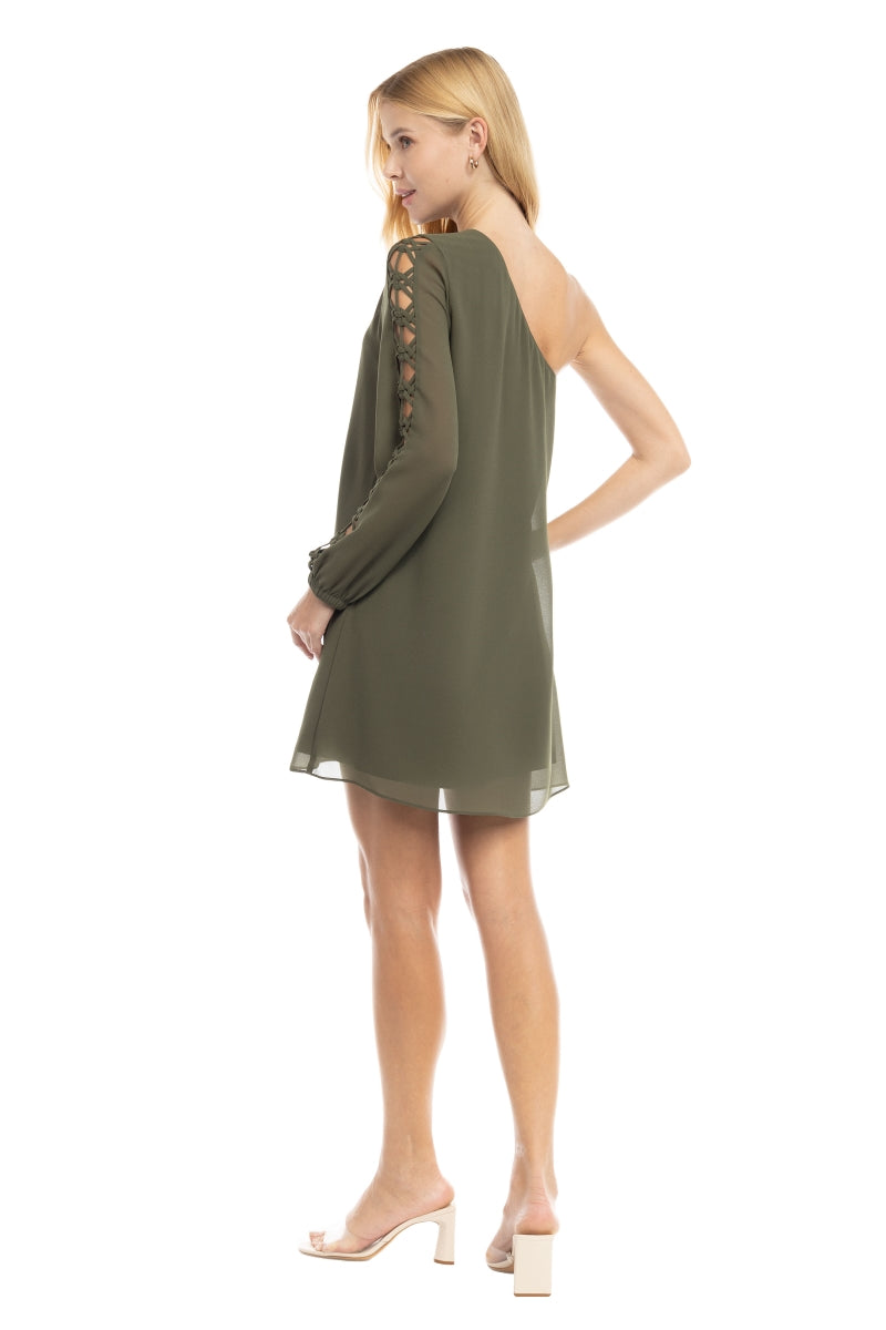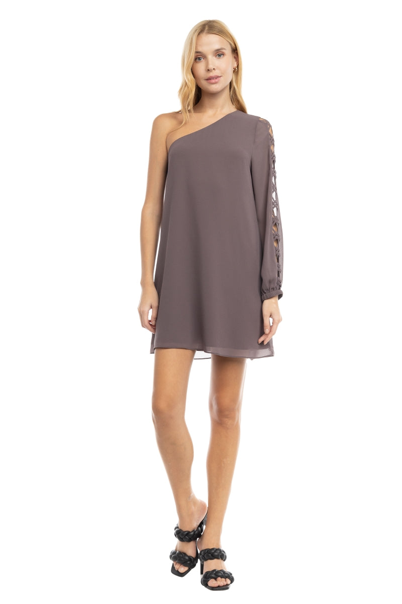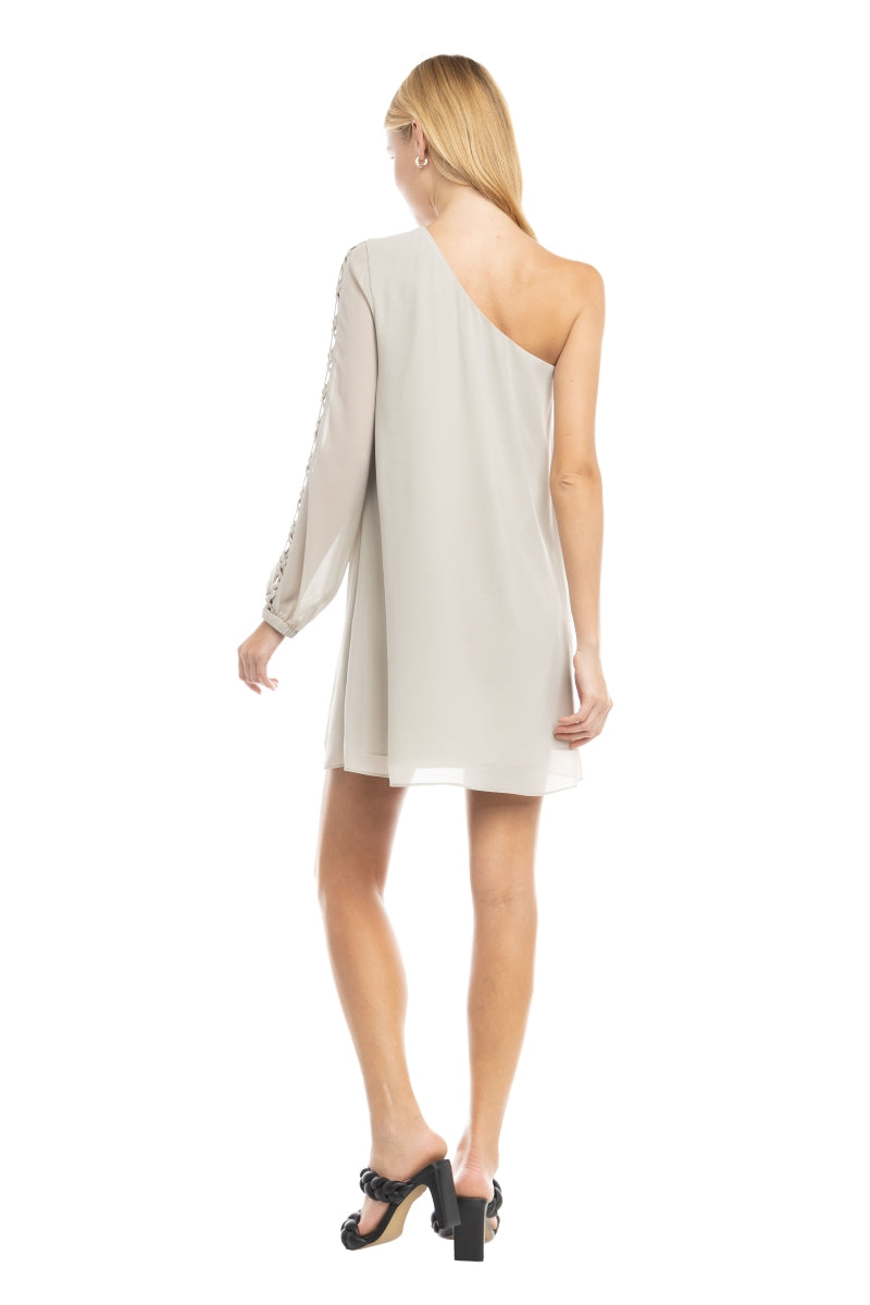 One Long Sleeve Braided Trim Sleeve A-line Dress