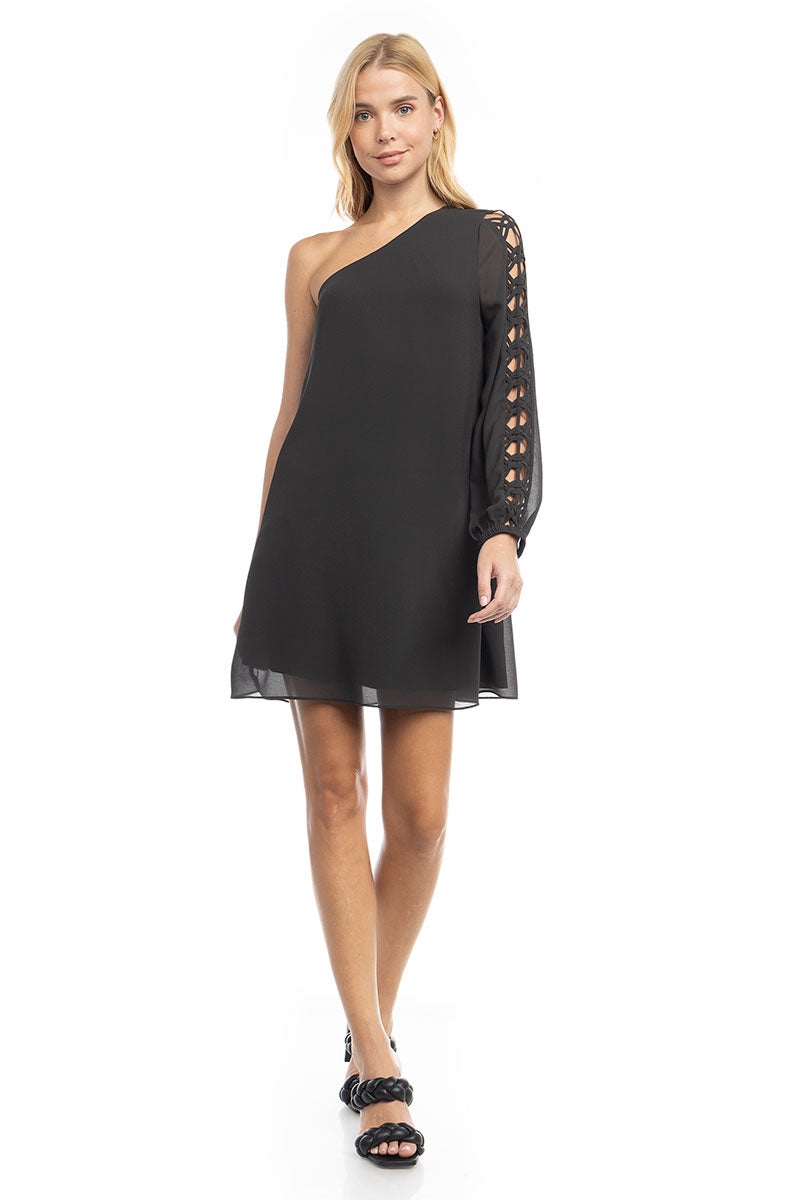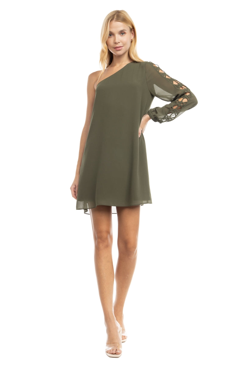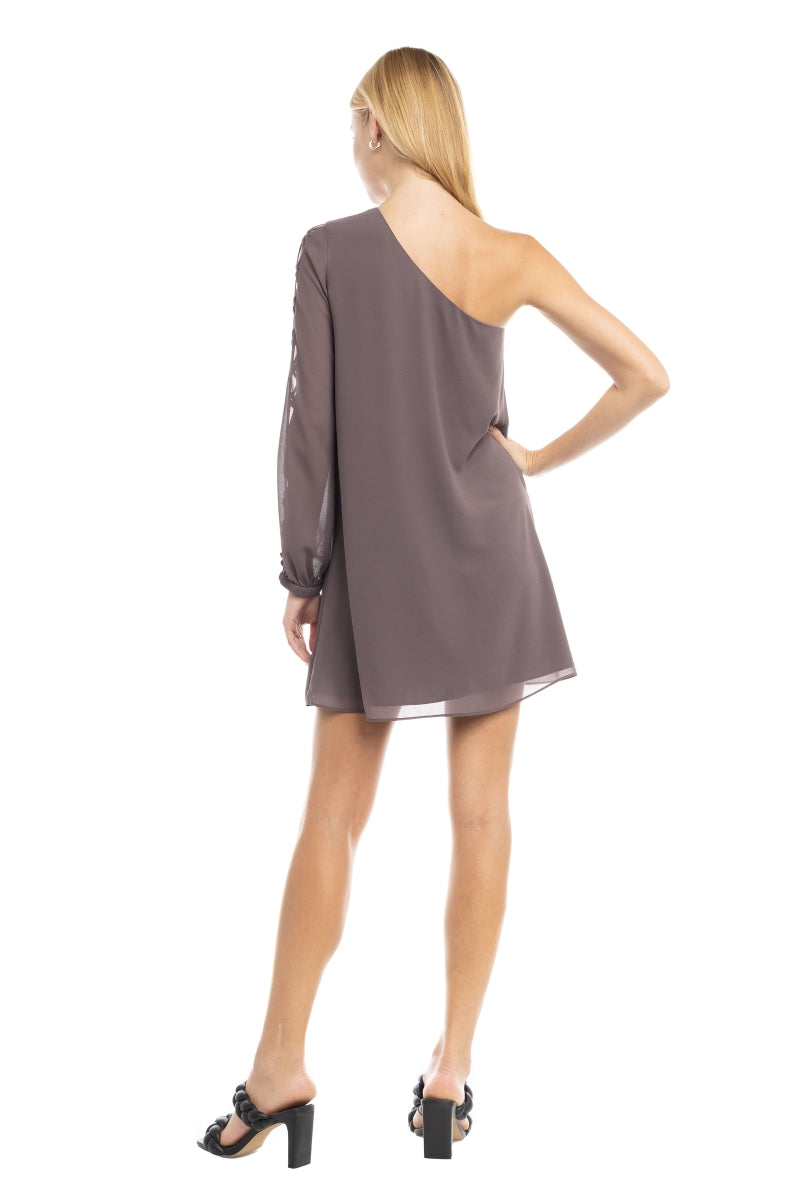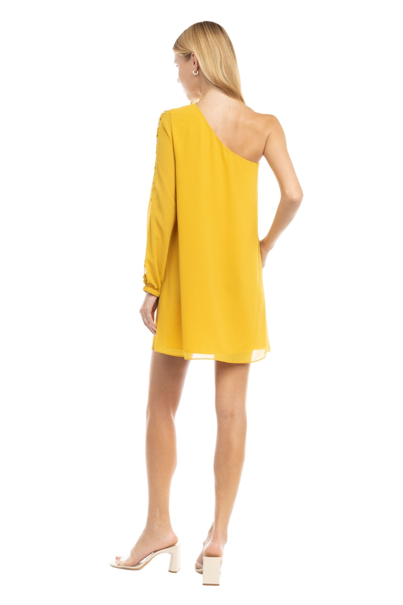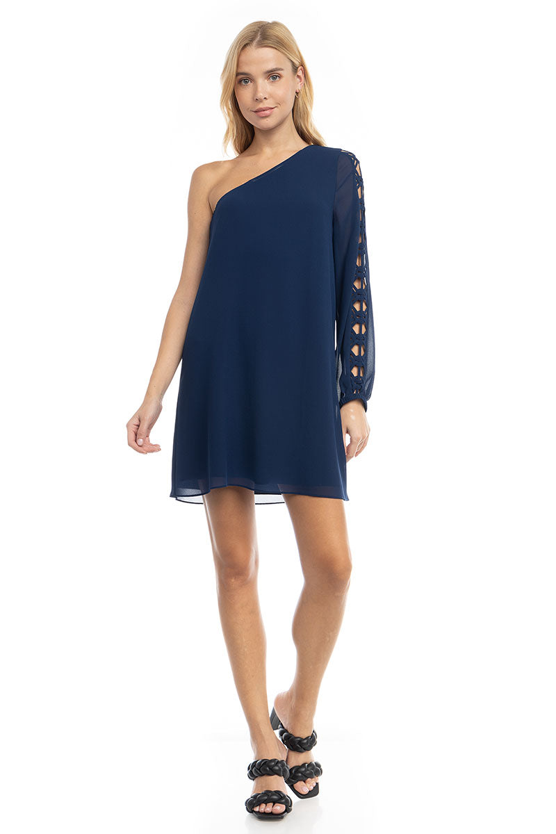 One Long Sleeve Braided Trim Sleeve A-line Dress