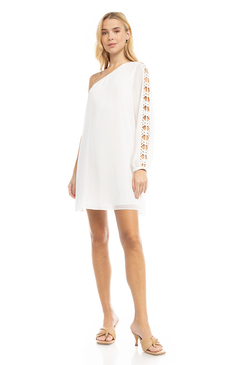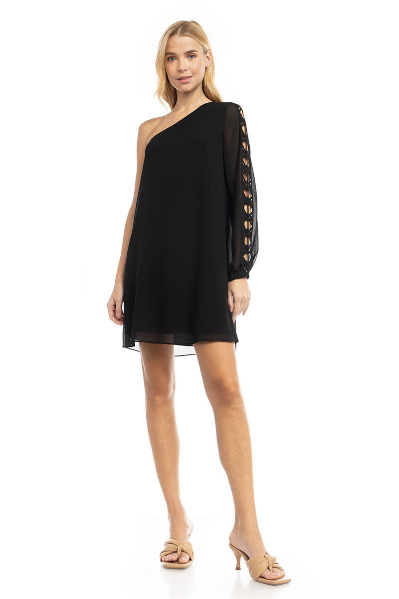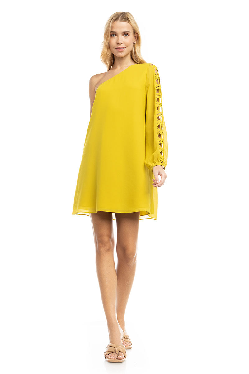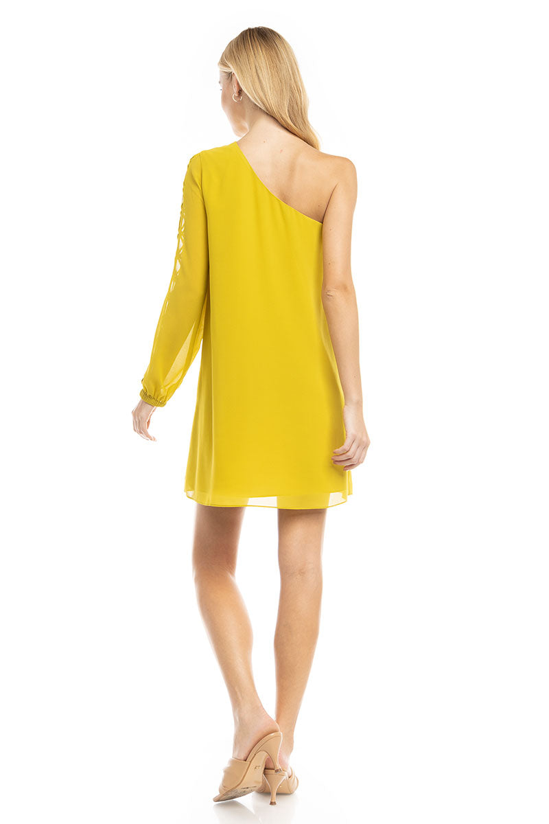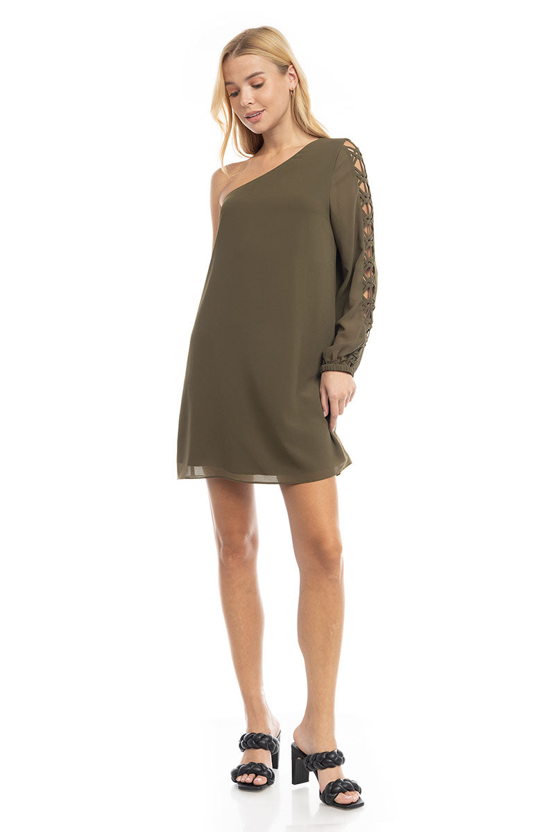 One Long Sleeve Braided Trim Sleeve A-line Dress