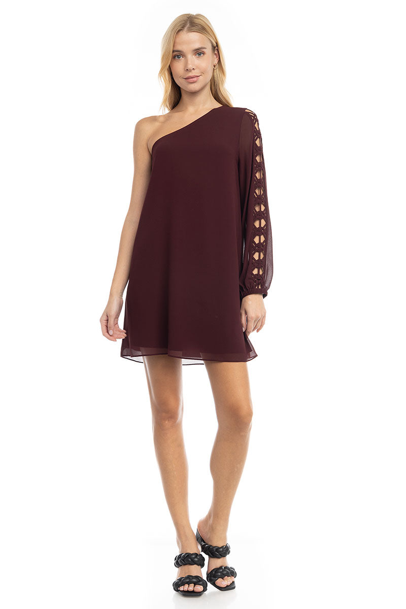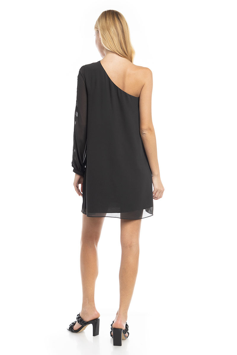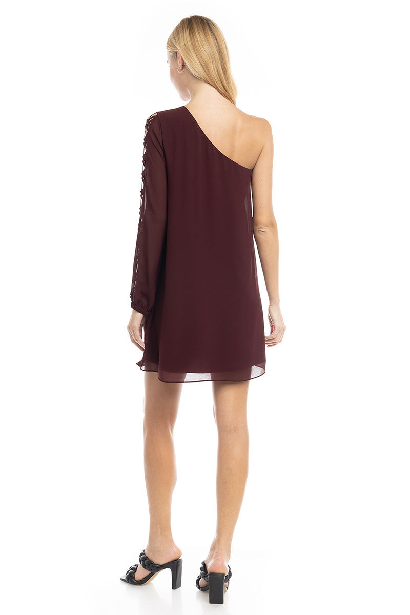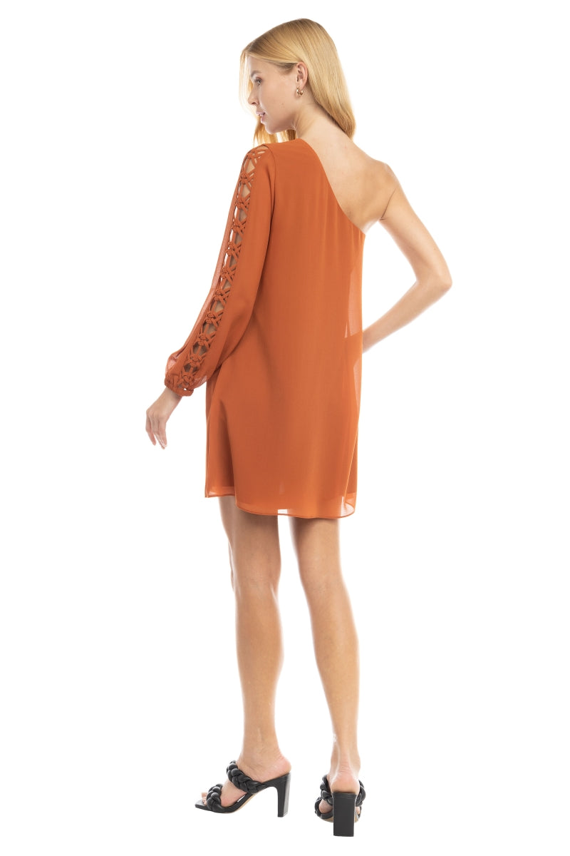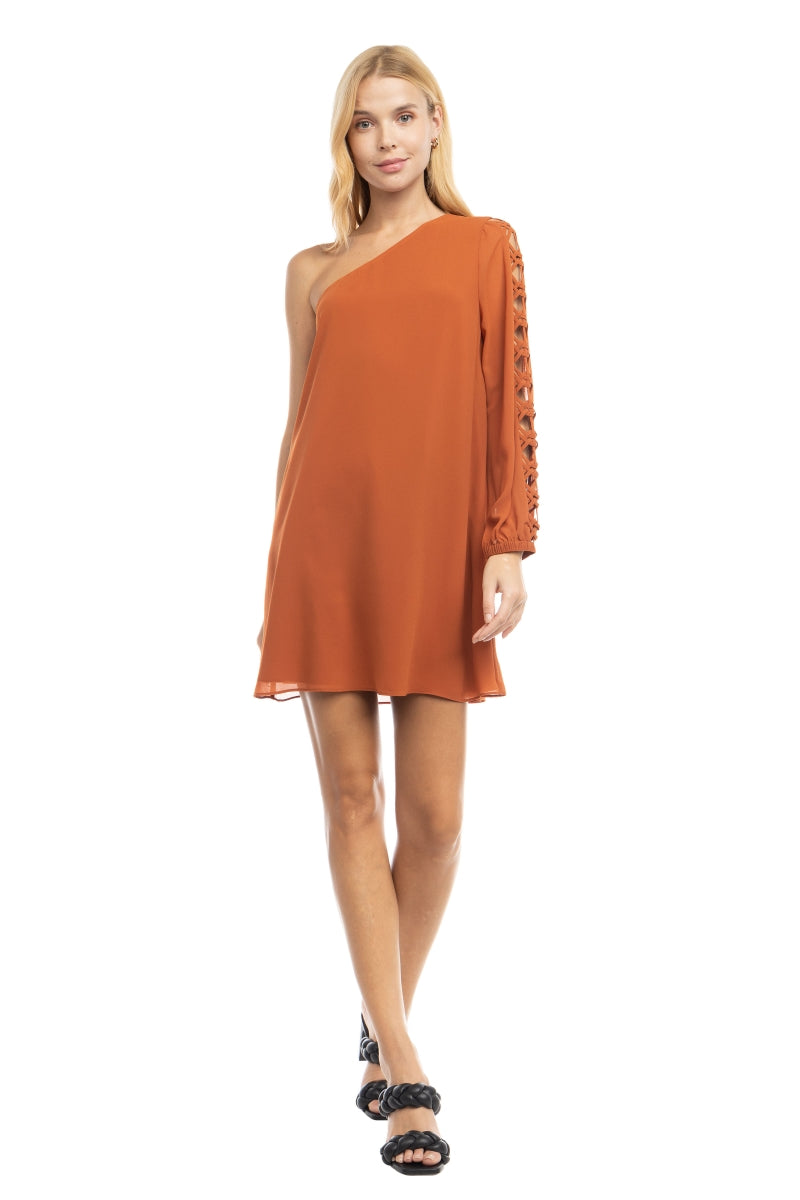 One Long Sleeve Braided Trim Sleeve A-line Dress