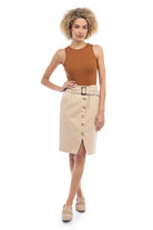 - Mini length, perfect for pairing with a tucked-in top or sweater.