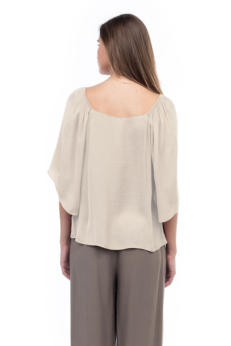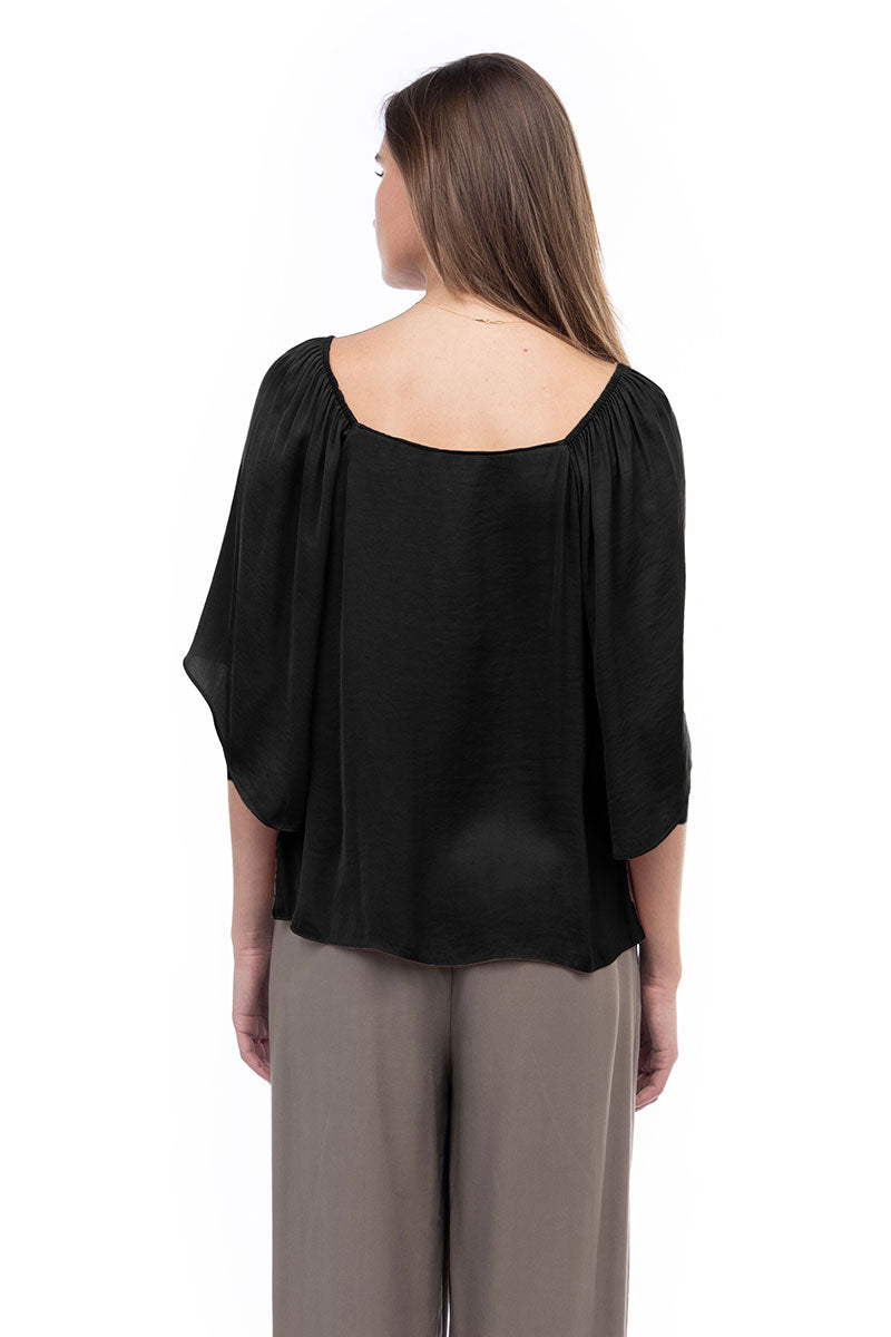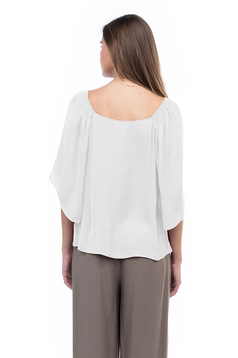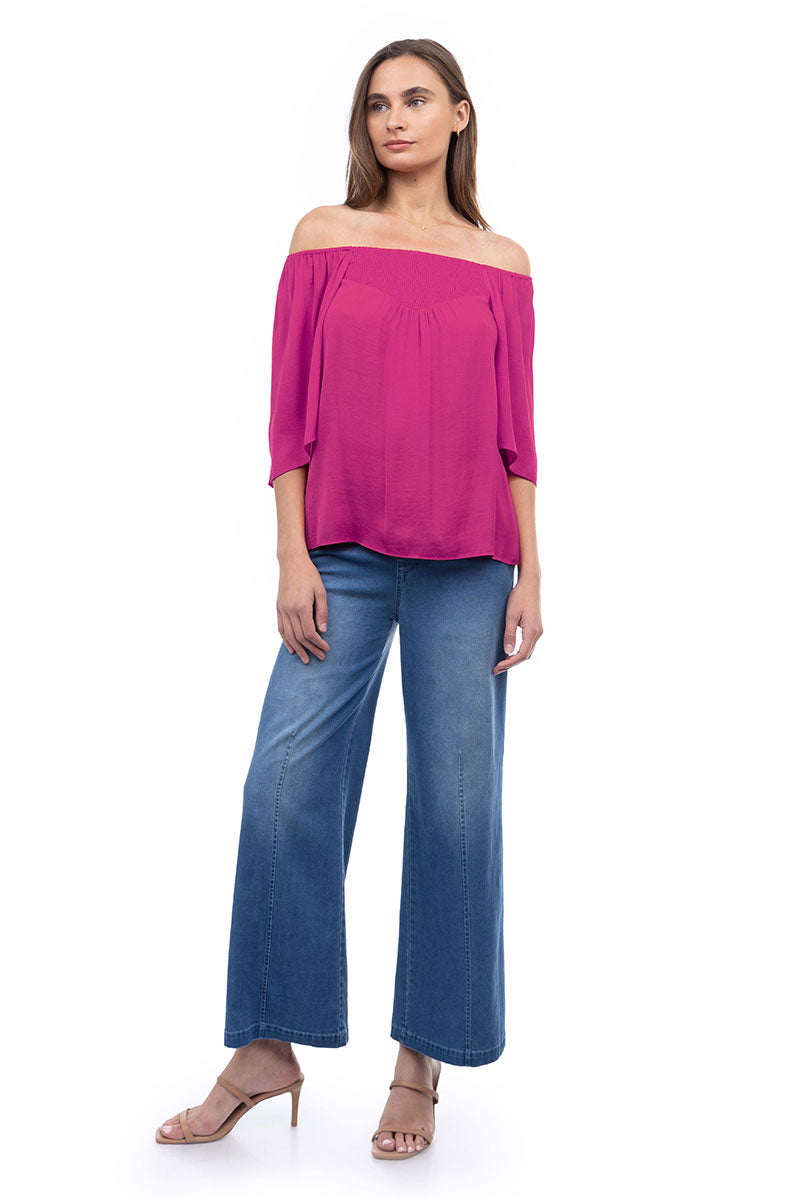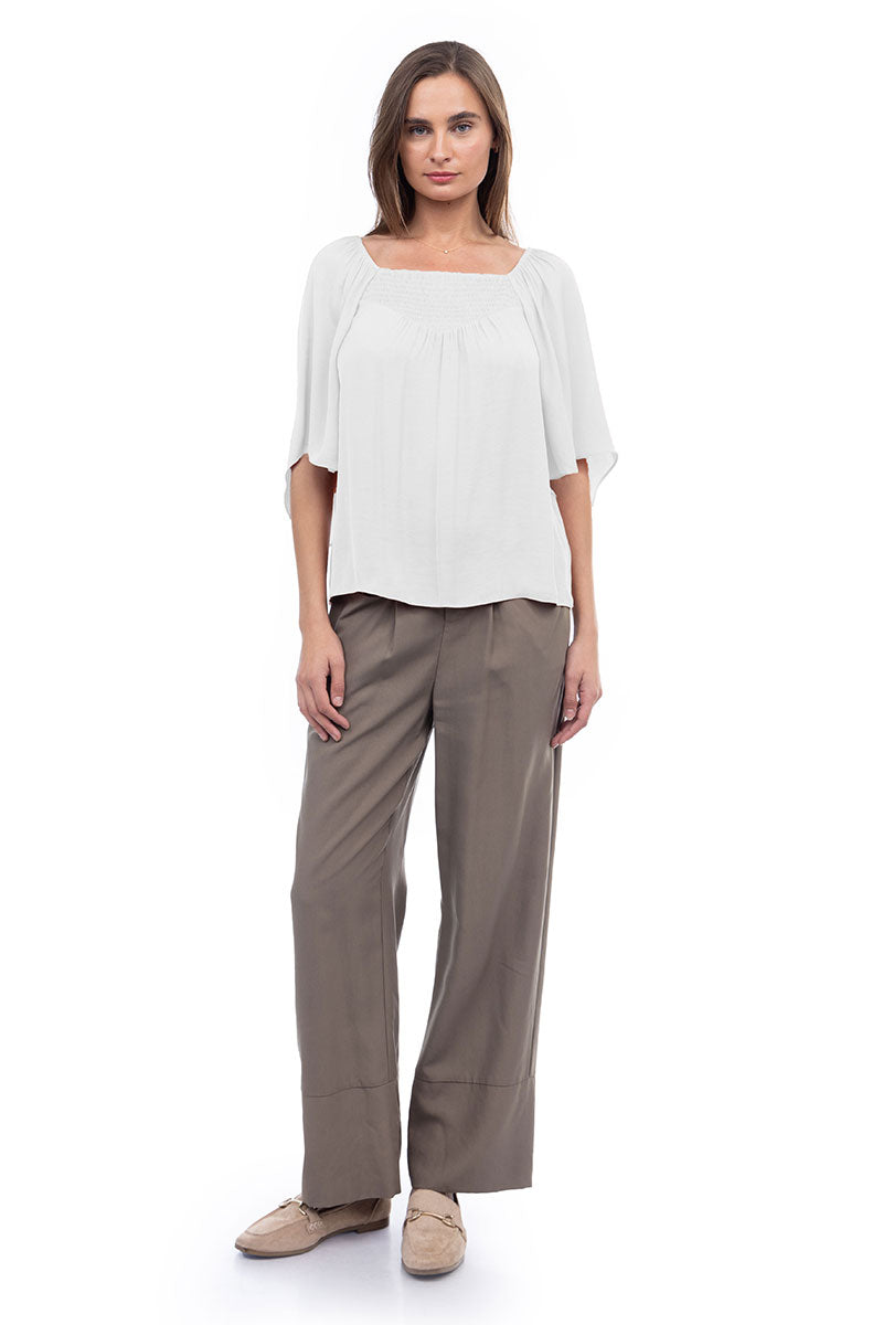 The front smocking adds a touch of texture and charm, while the sleeves hitting right at the elbow create a flattering silhouette. Perfect for a bohemian-inspired and comfortable look, this blouse effortlessly combines style and ease, making it an ideal choice for various occasions.
