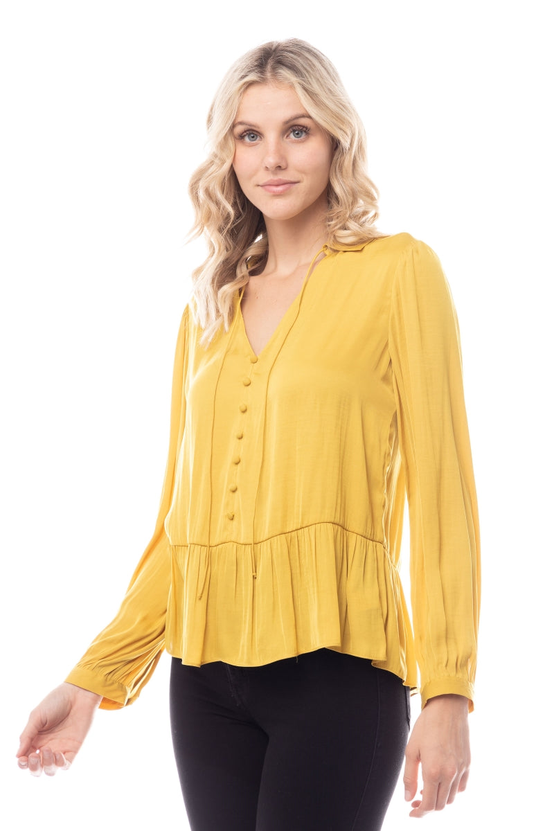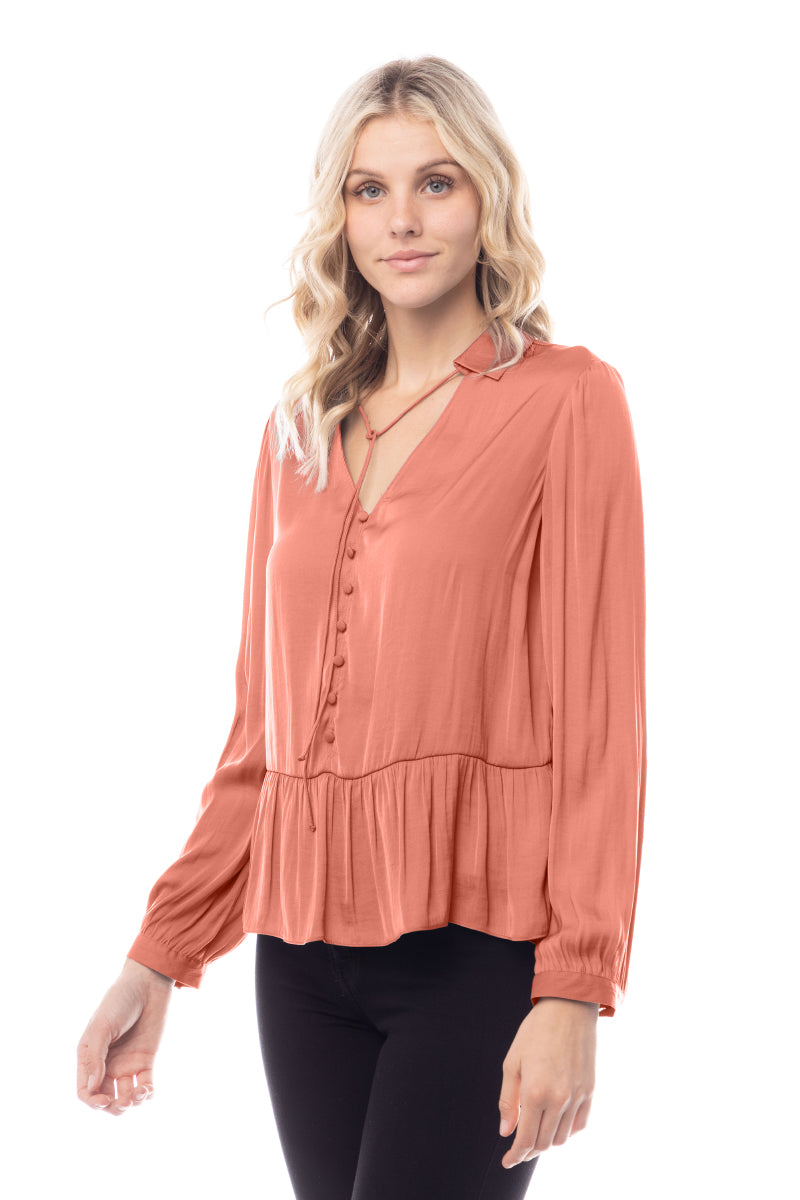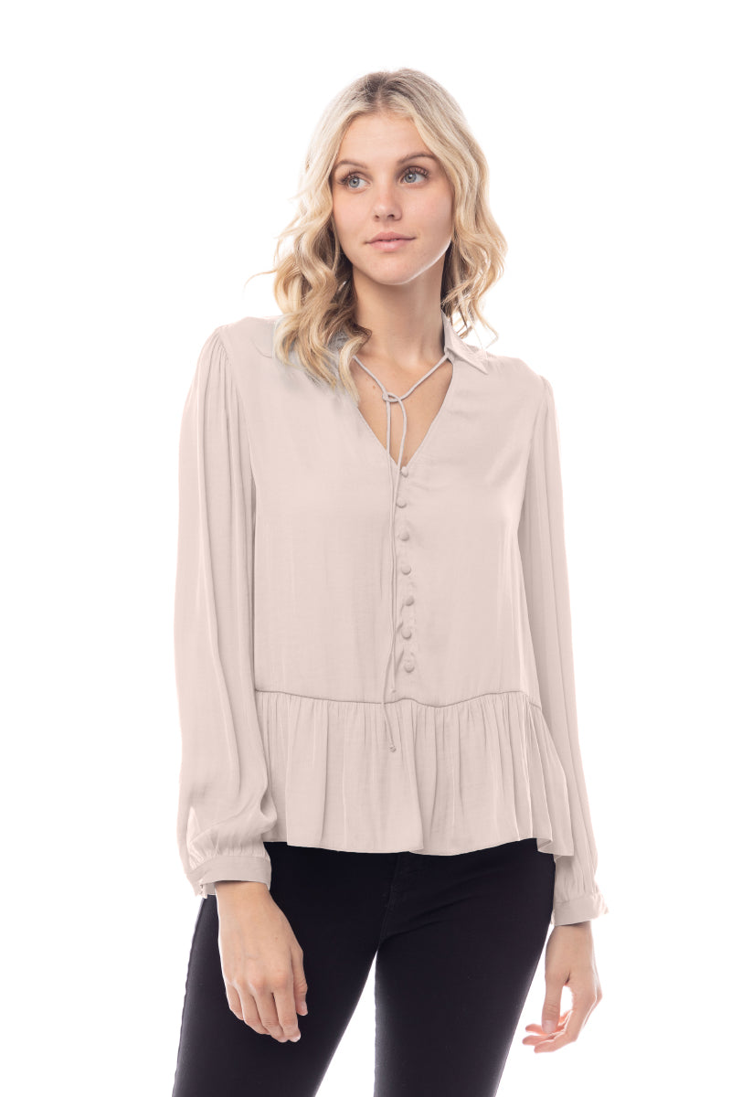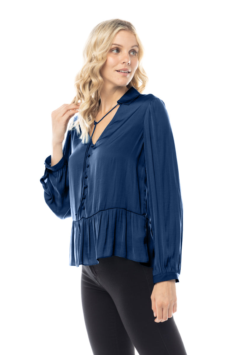 The Peplum Fake Button Down Blouse combines classic design with contemporary flair. Featuring a peplum waist for a flattering fit and faux button-down detailing, this blouse offers a chic and polished look. Ideal for both casual and formal settings, it adds a stylish and sophisticated touch to your wardrobe.
