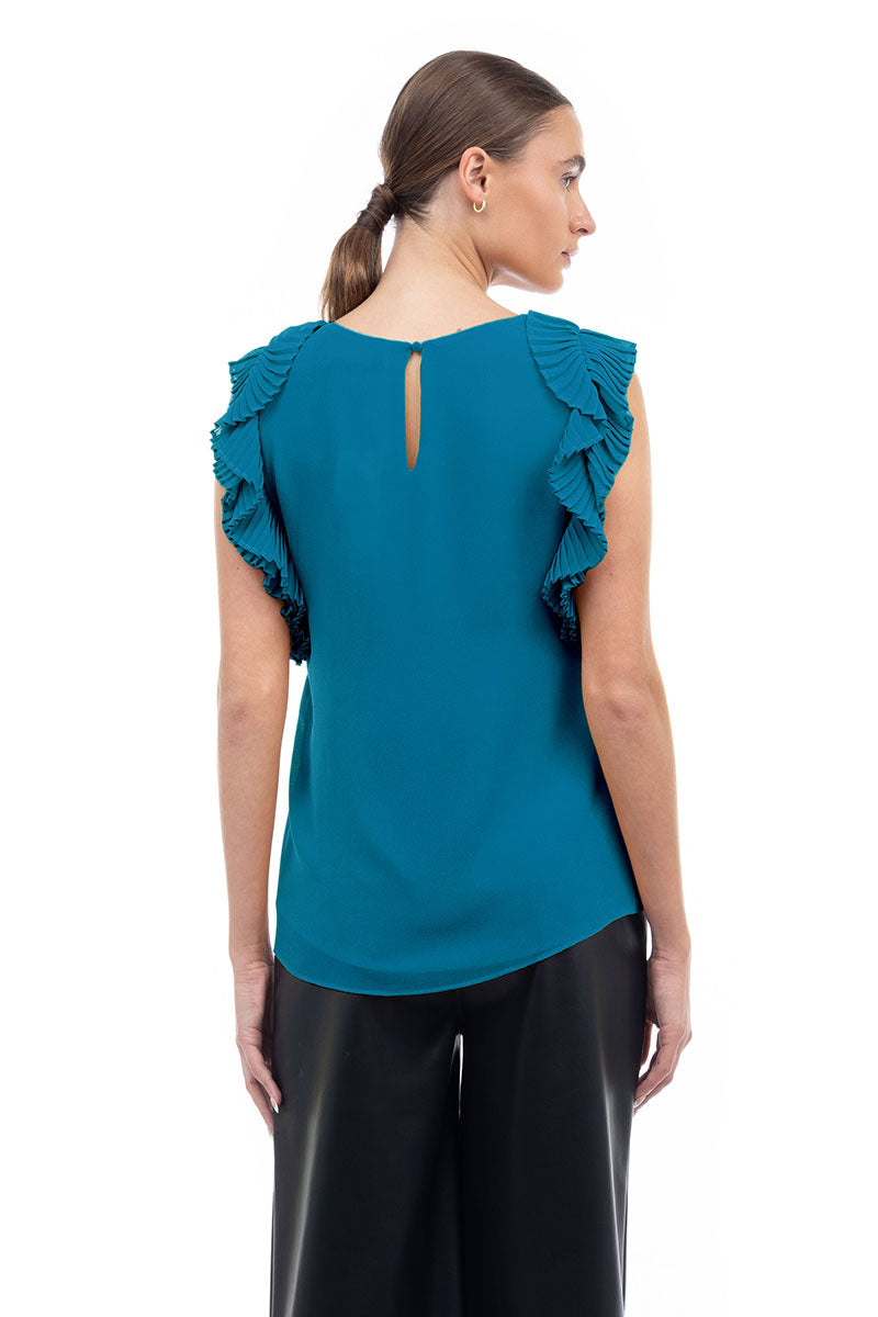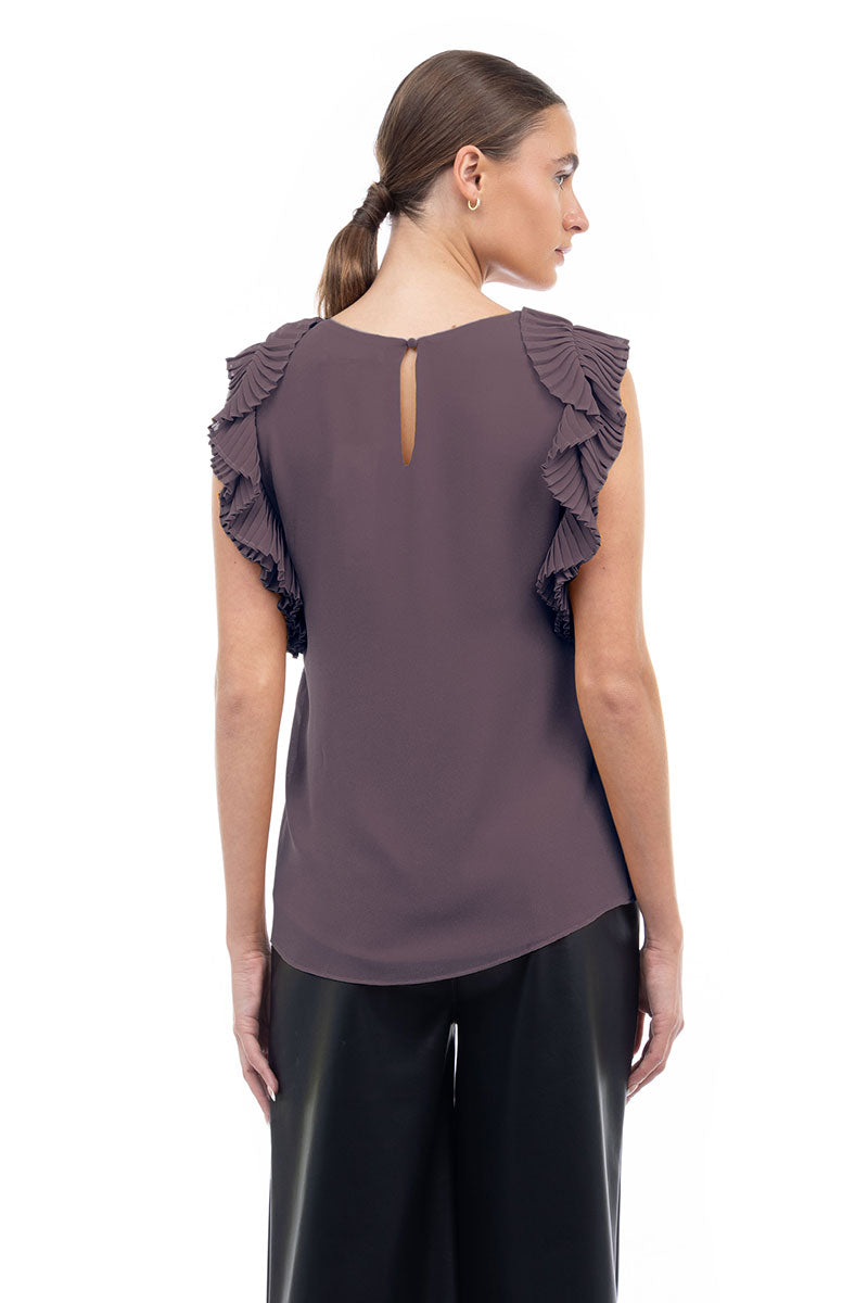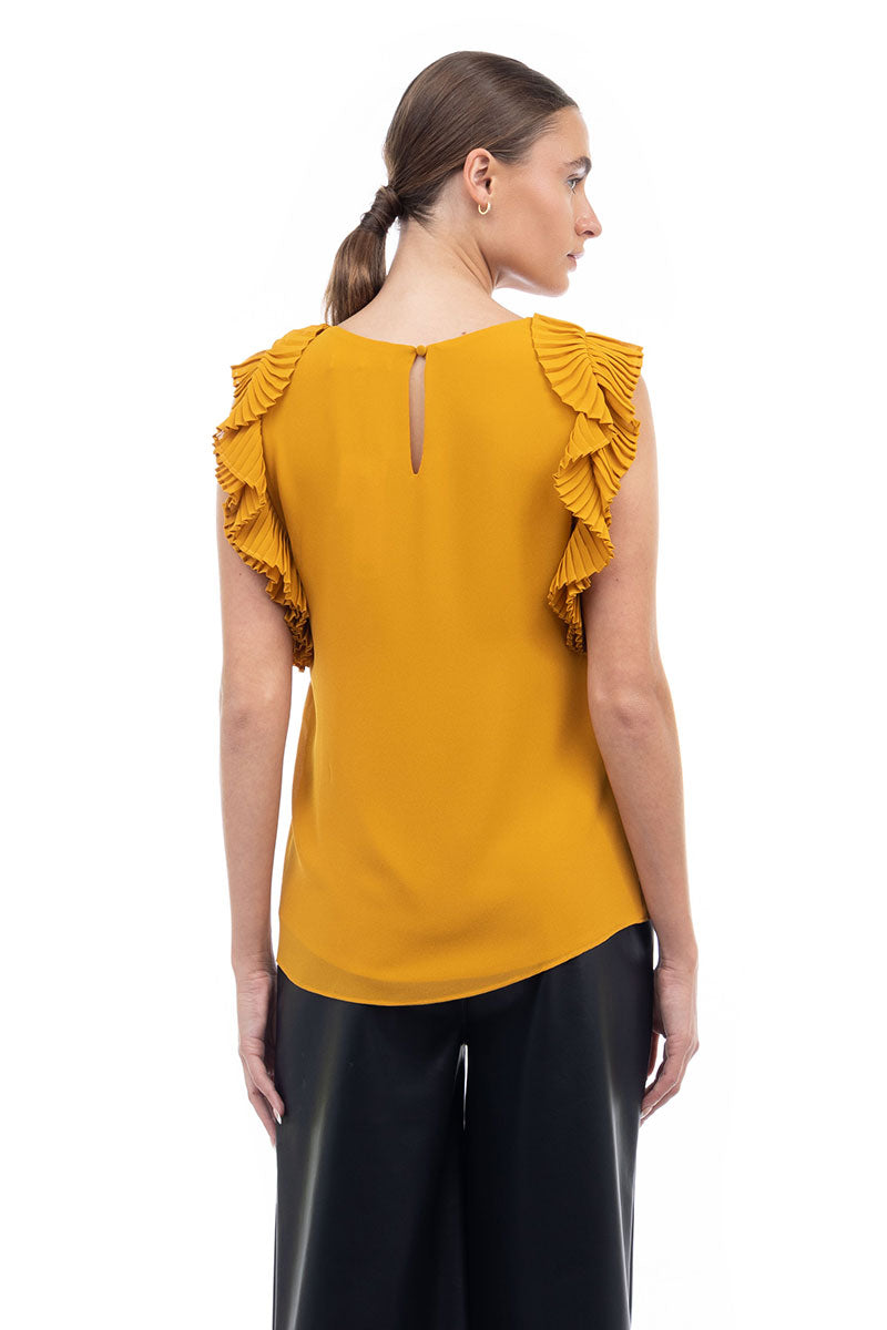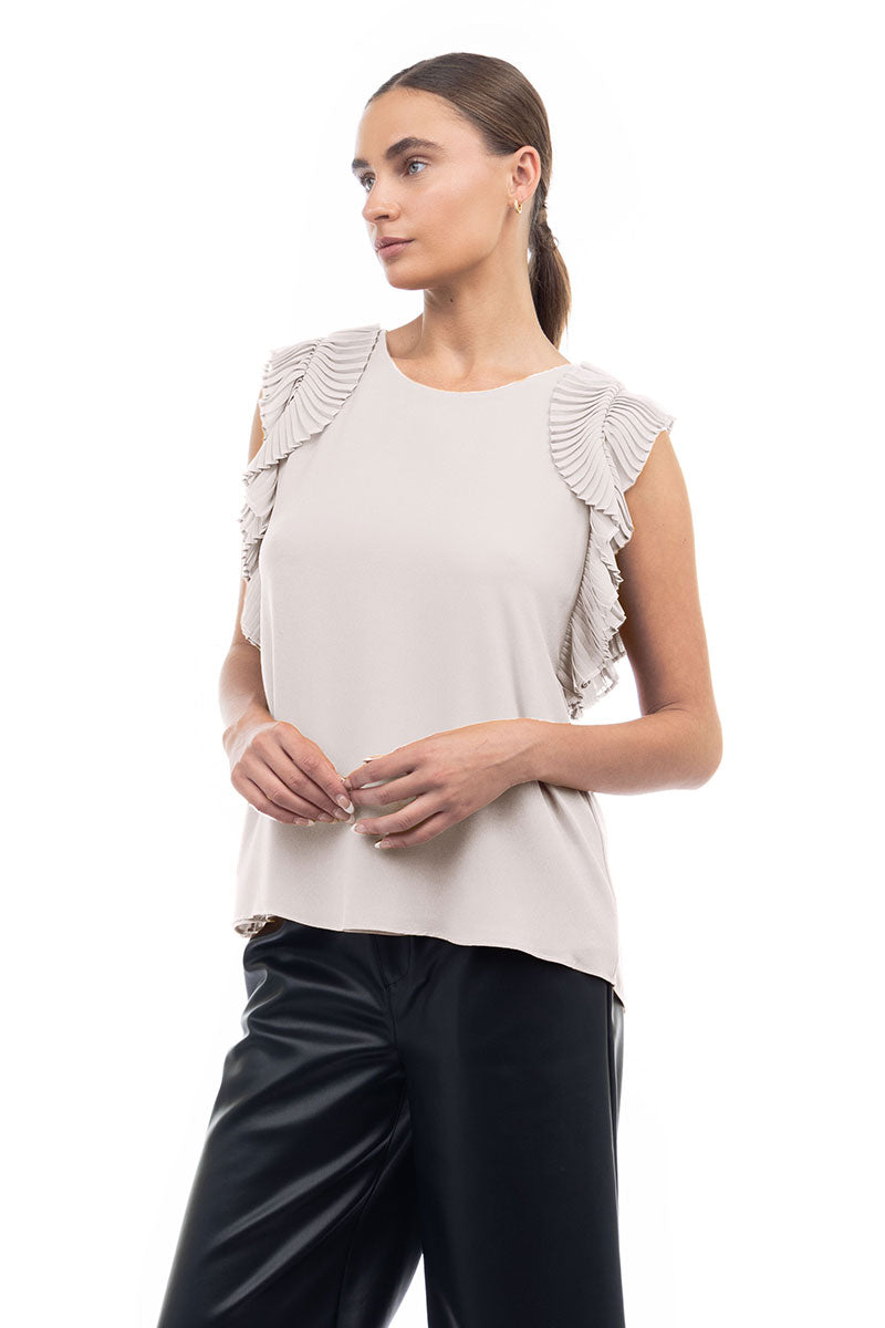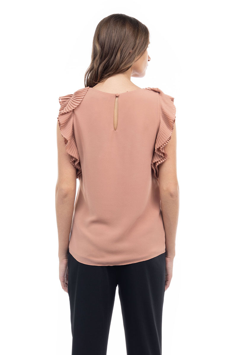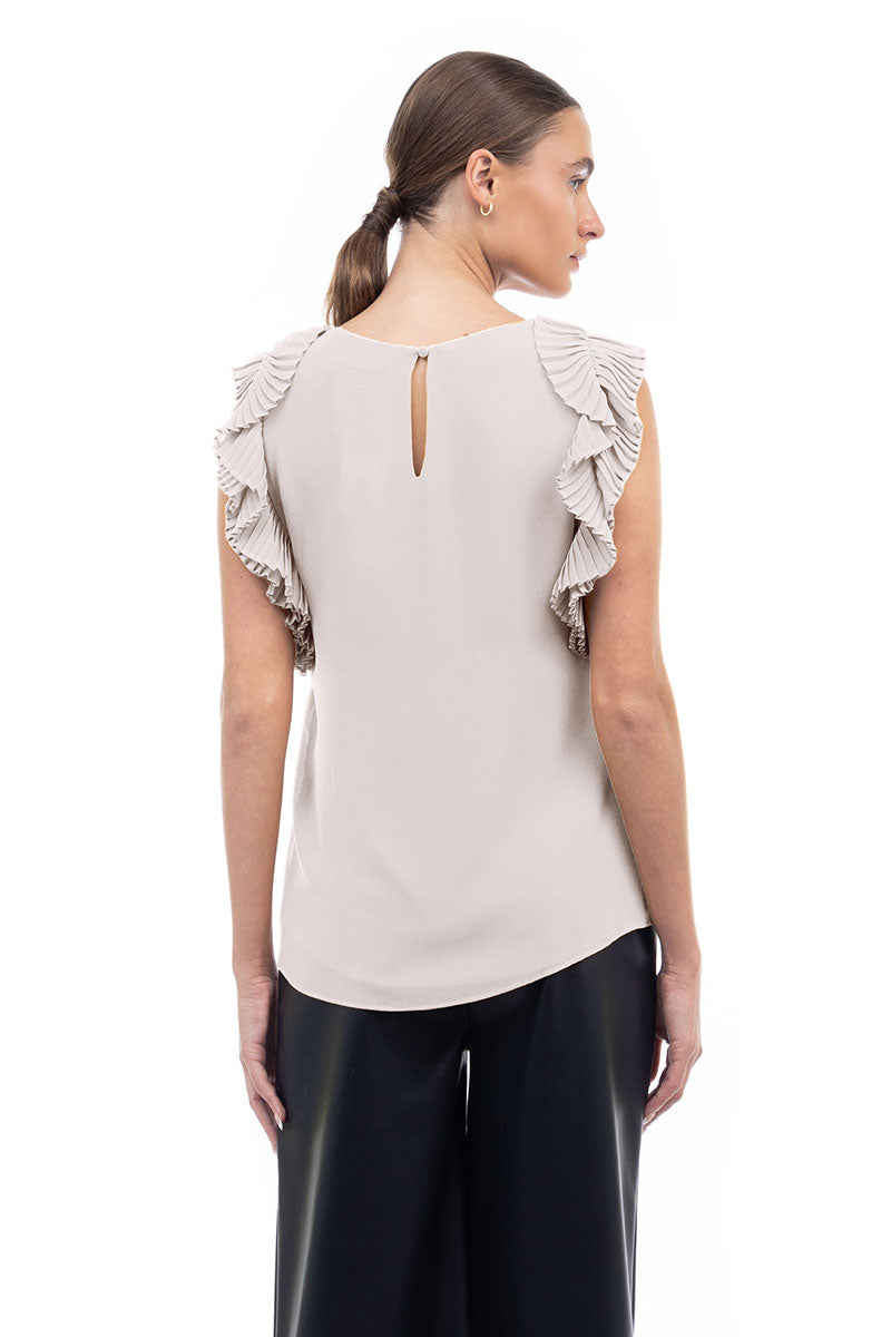 ╴Soft pleats and airy flutter sleeves make this blouse equal parts polished and playful