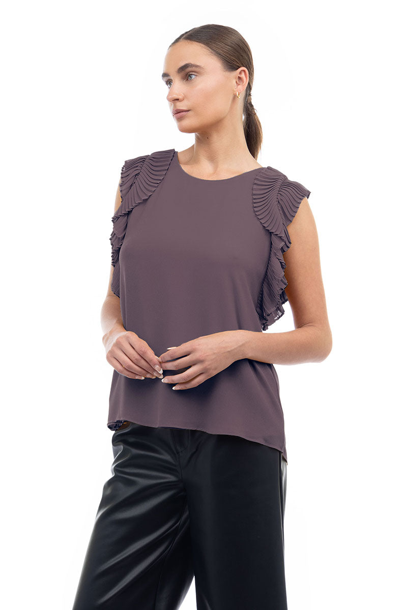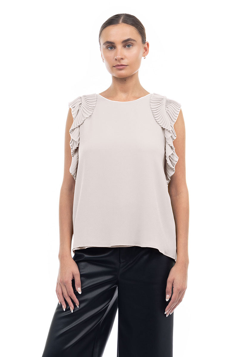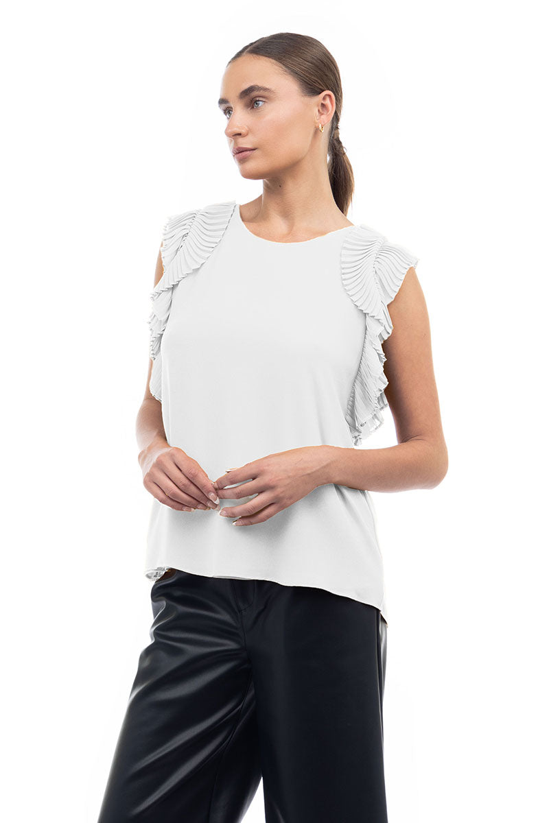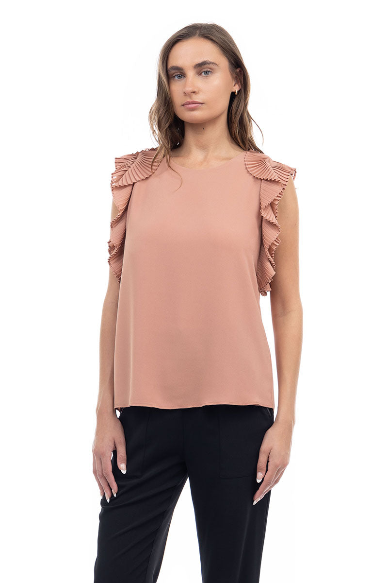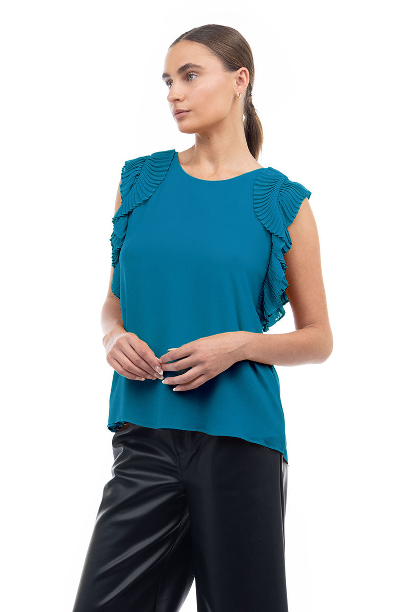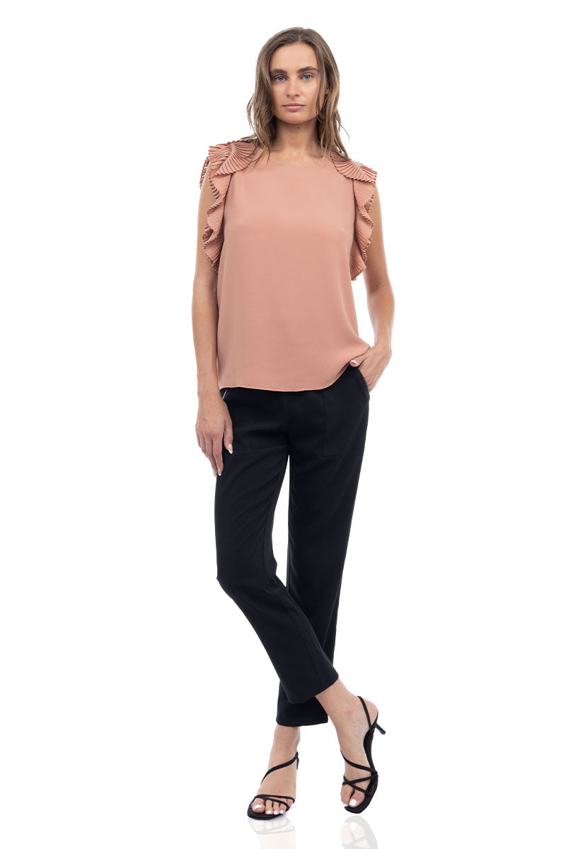 ╴Soft pleats and airy flutter sleeves make this blouse equal parts polished and playful