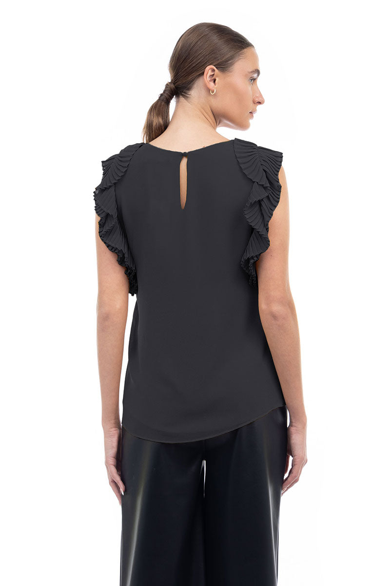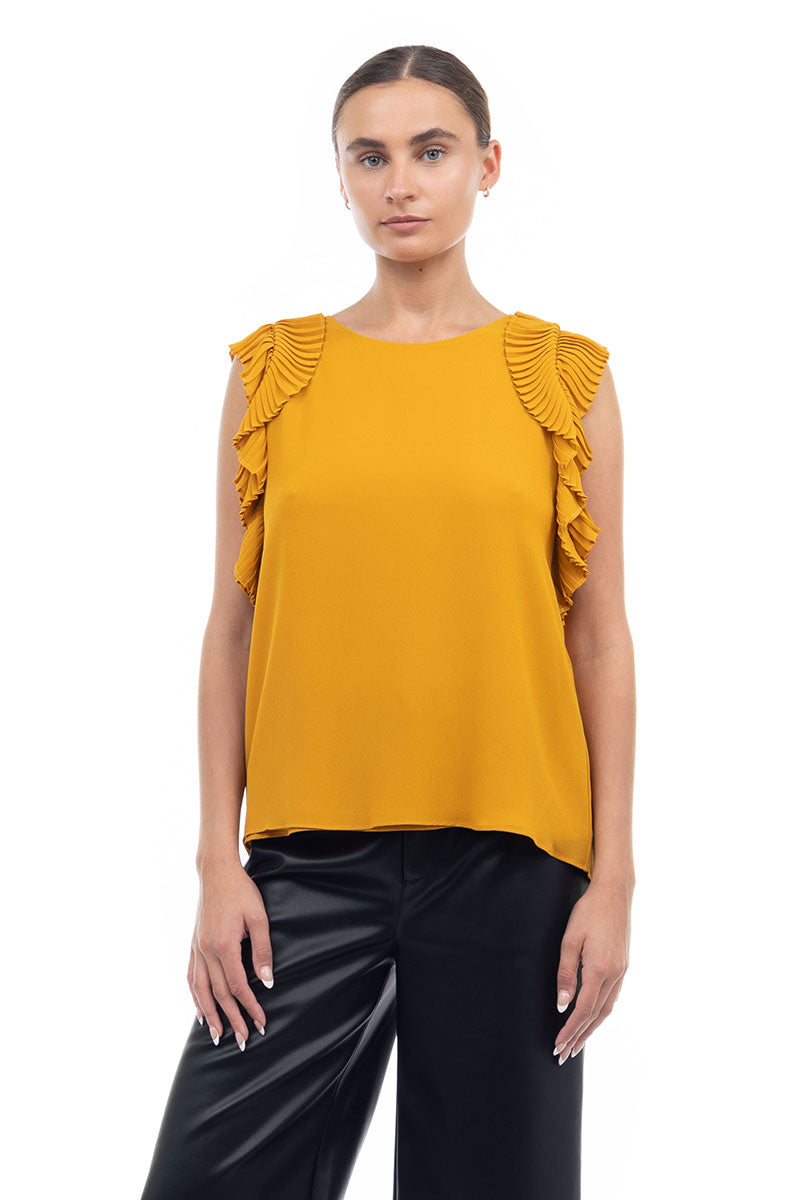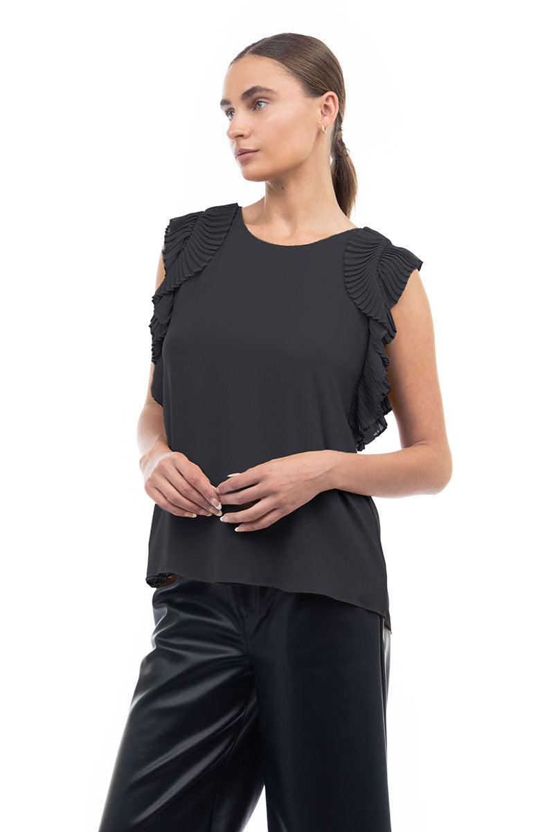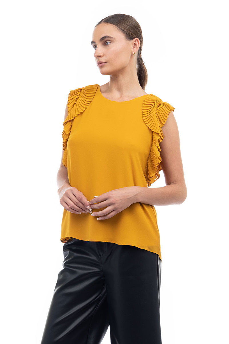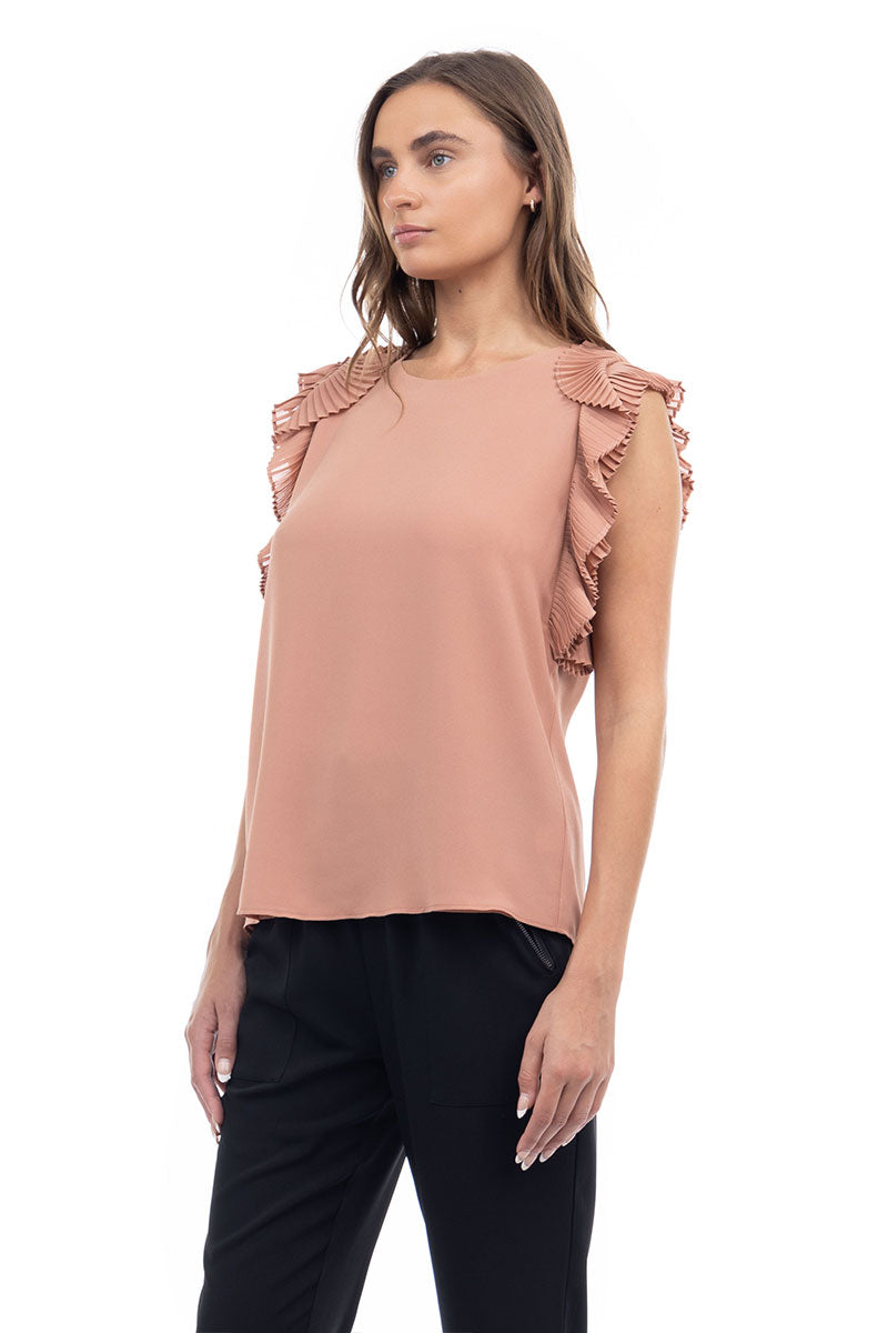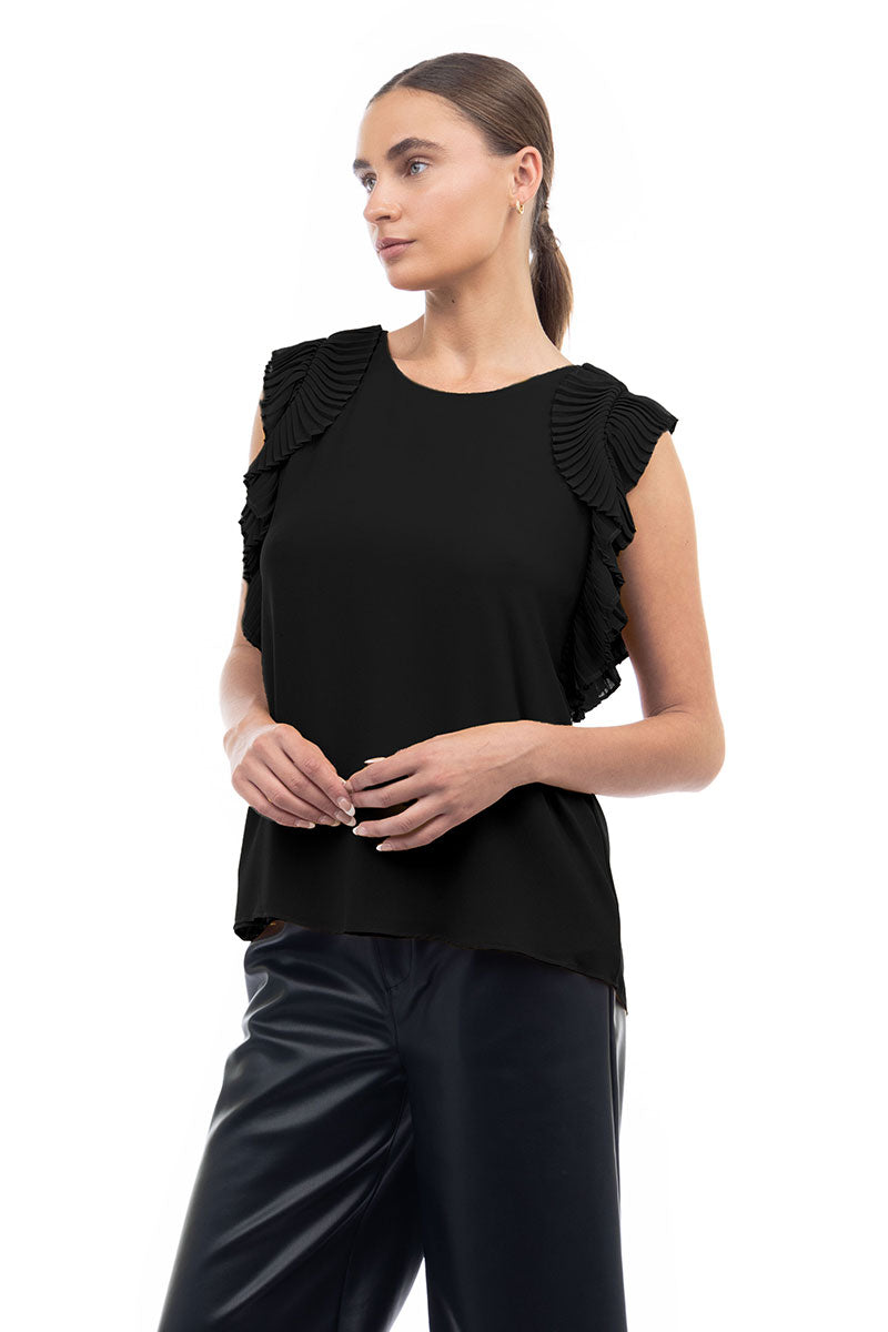 ╴Soft pleats and airy flutter sleeves make this blouse equal parts polished and playful