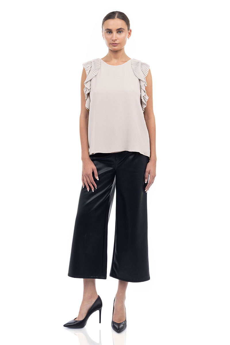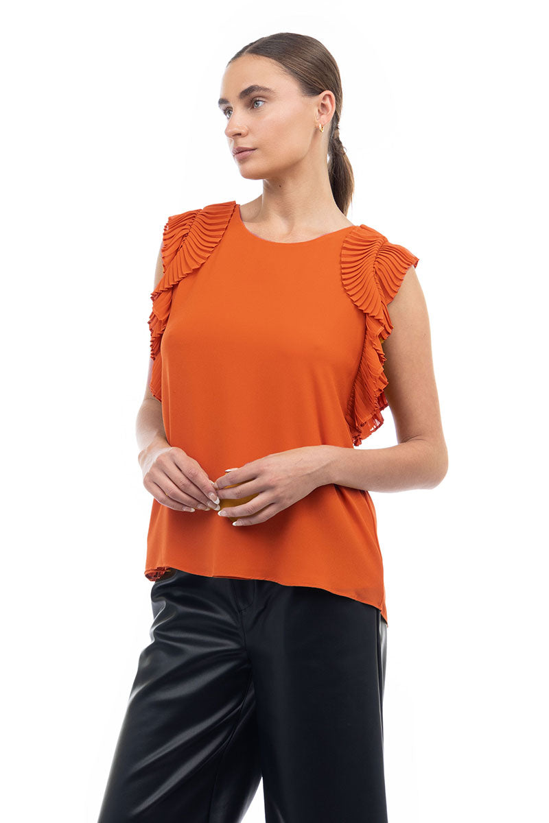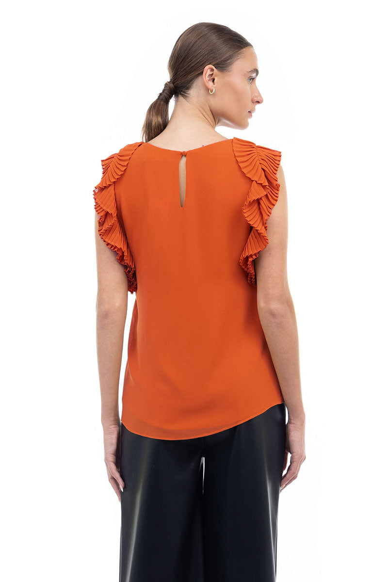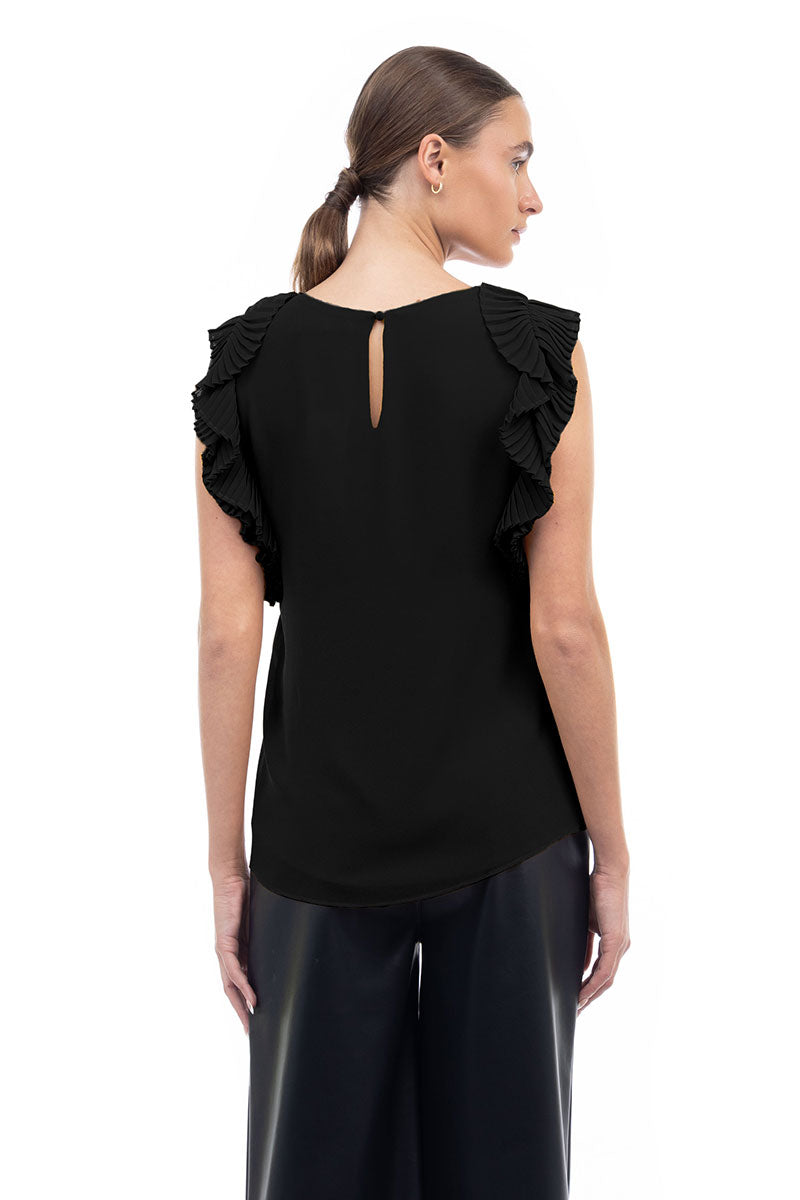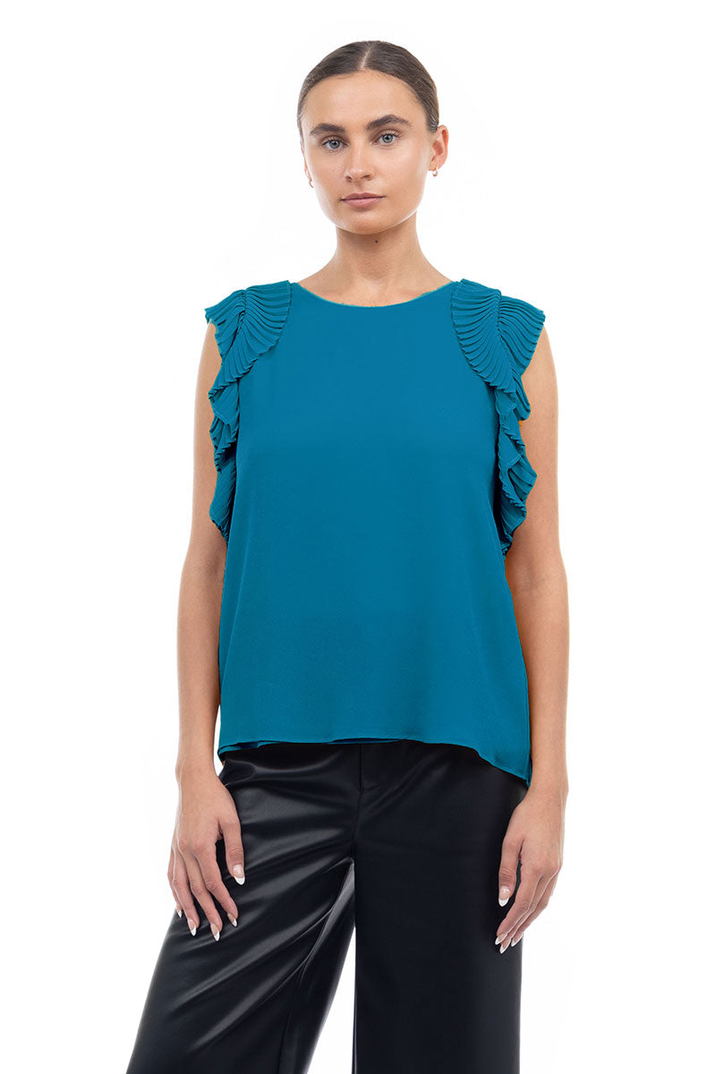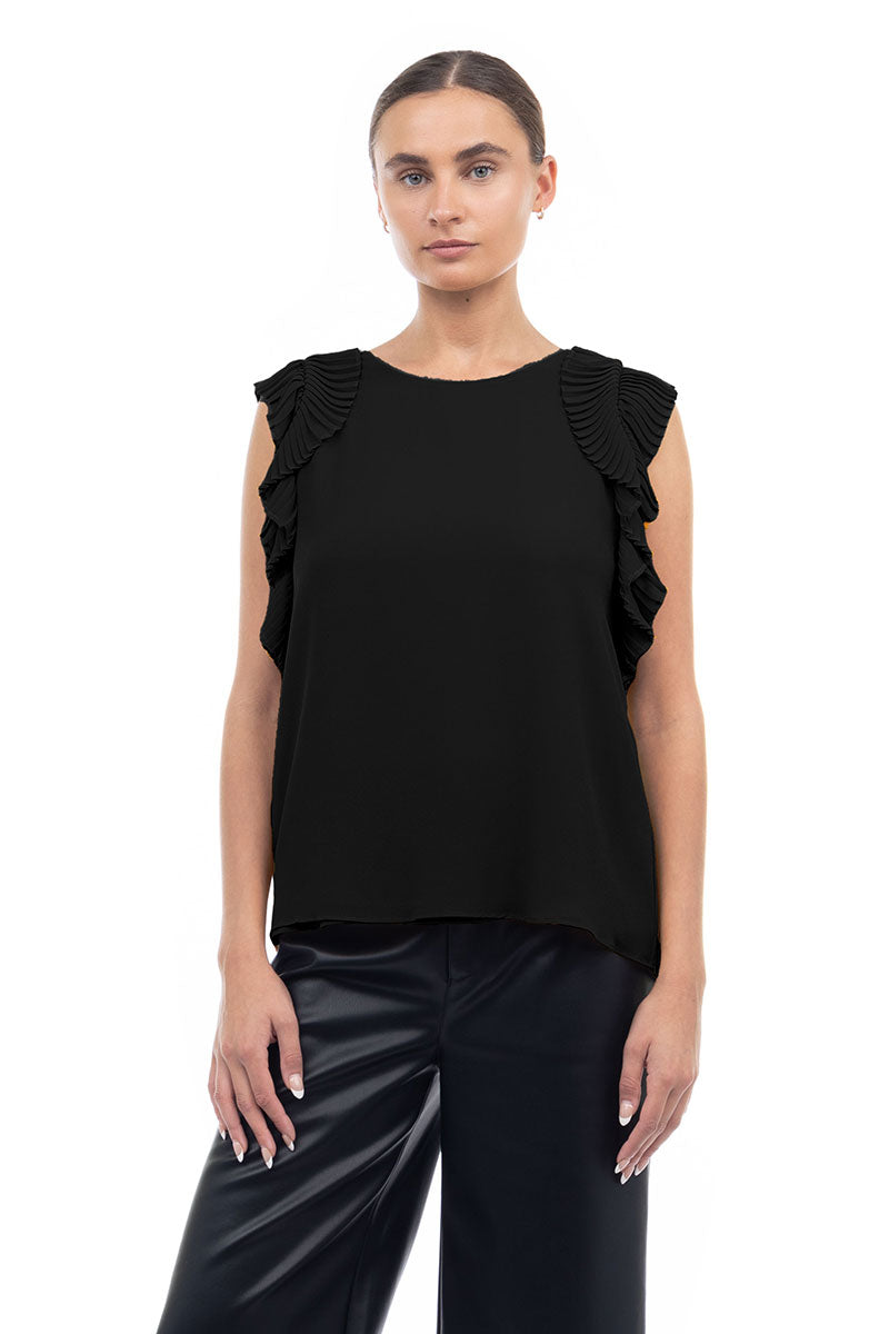╴Soft pleats and airy flutter sleeves make this blouse equal parts polished and playful