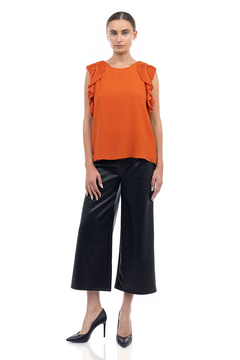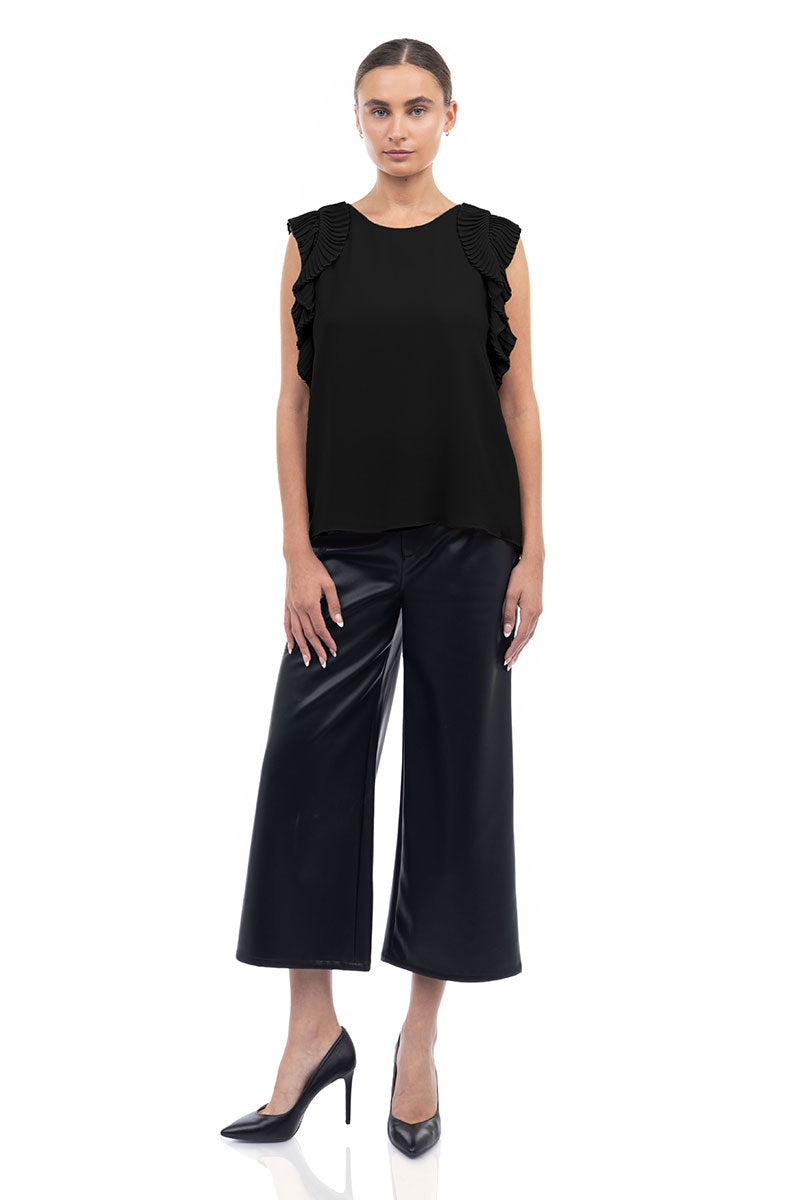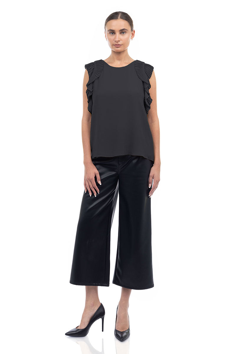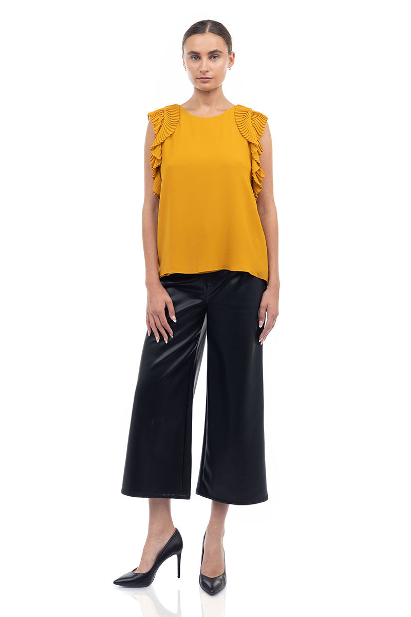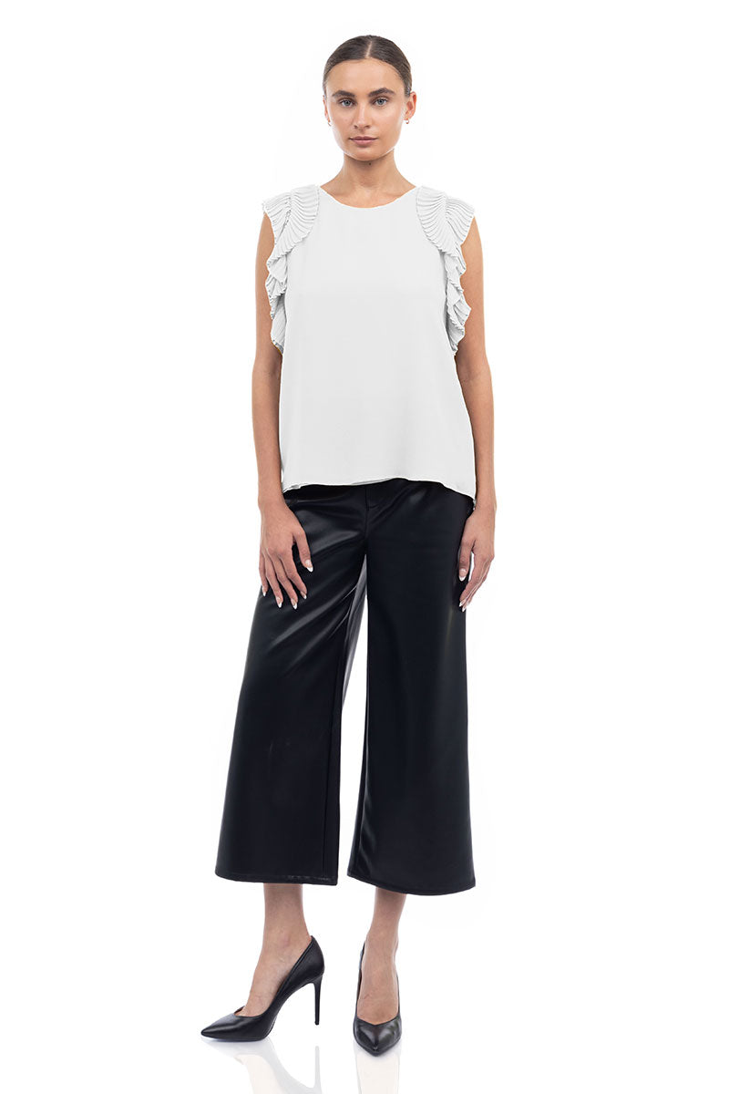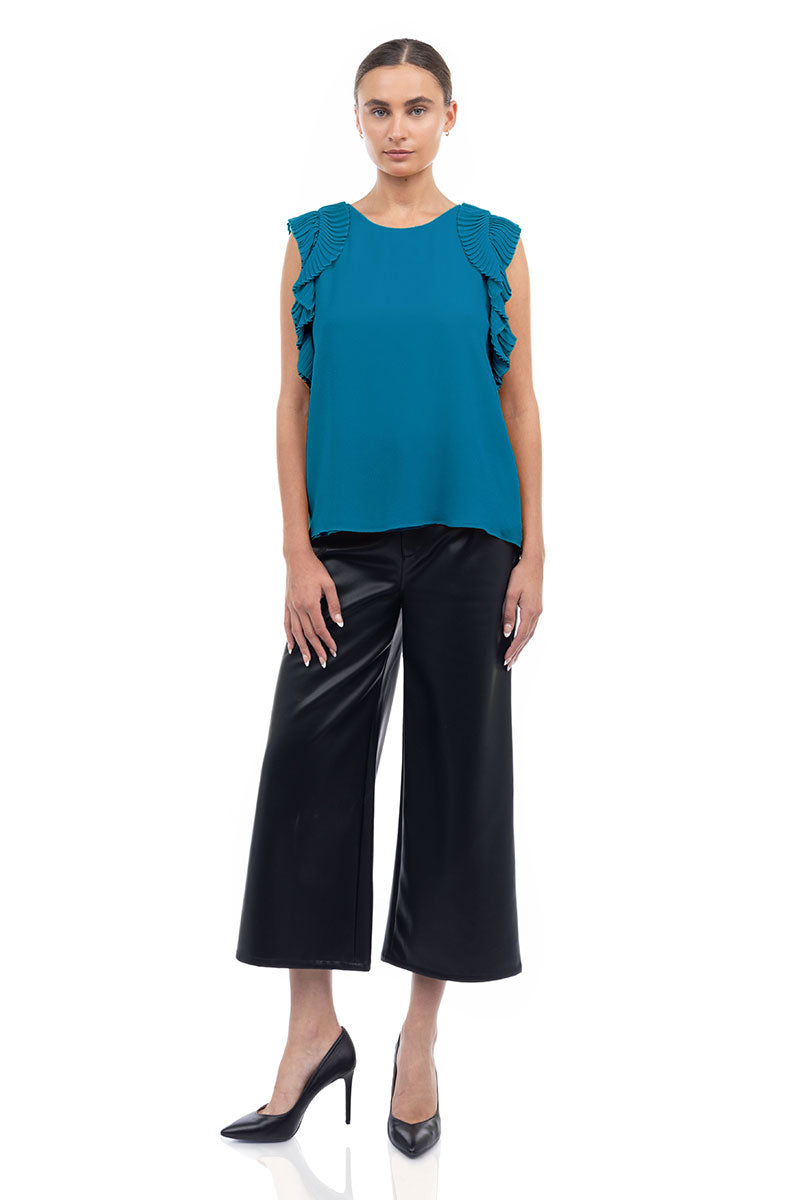 ╴Soft pleats and airy flutter sleeves make this blouse equal parts polished and playful