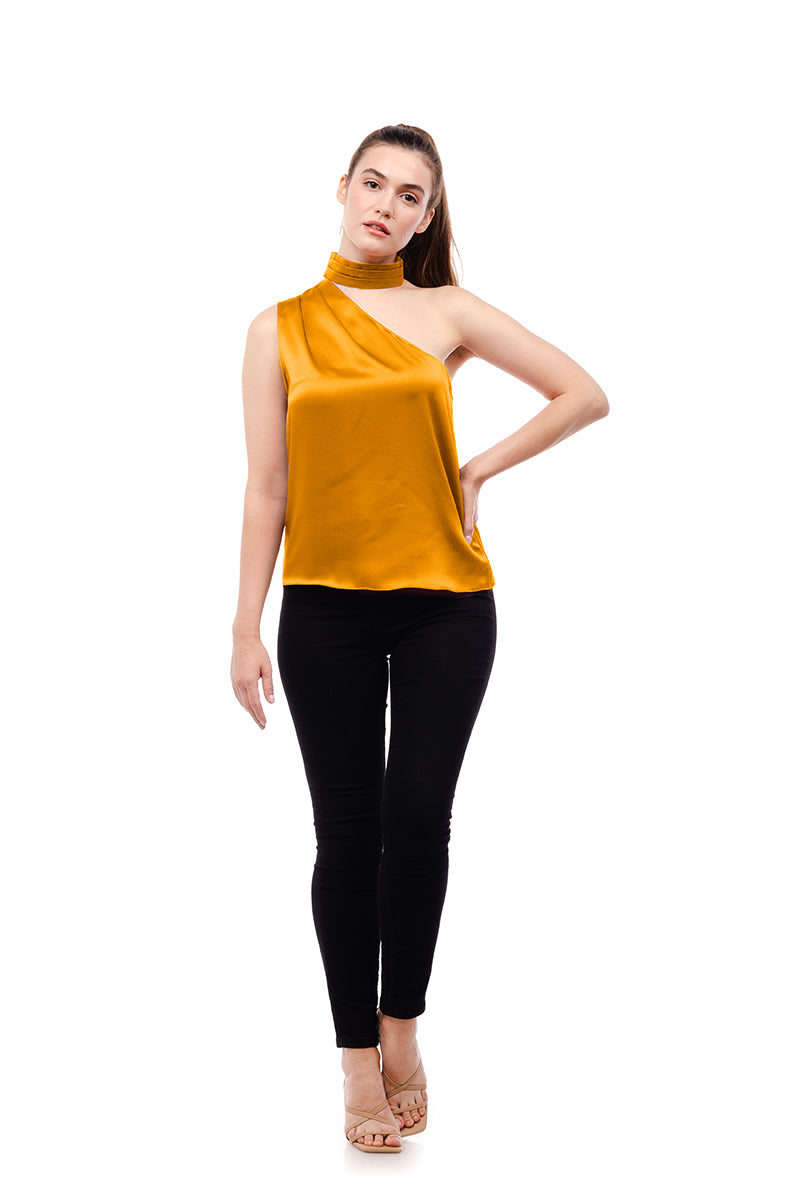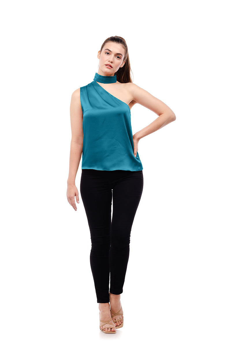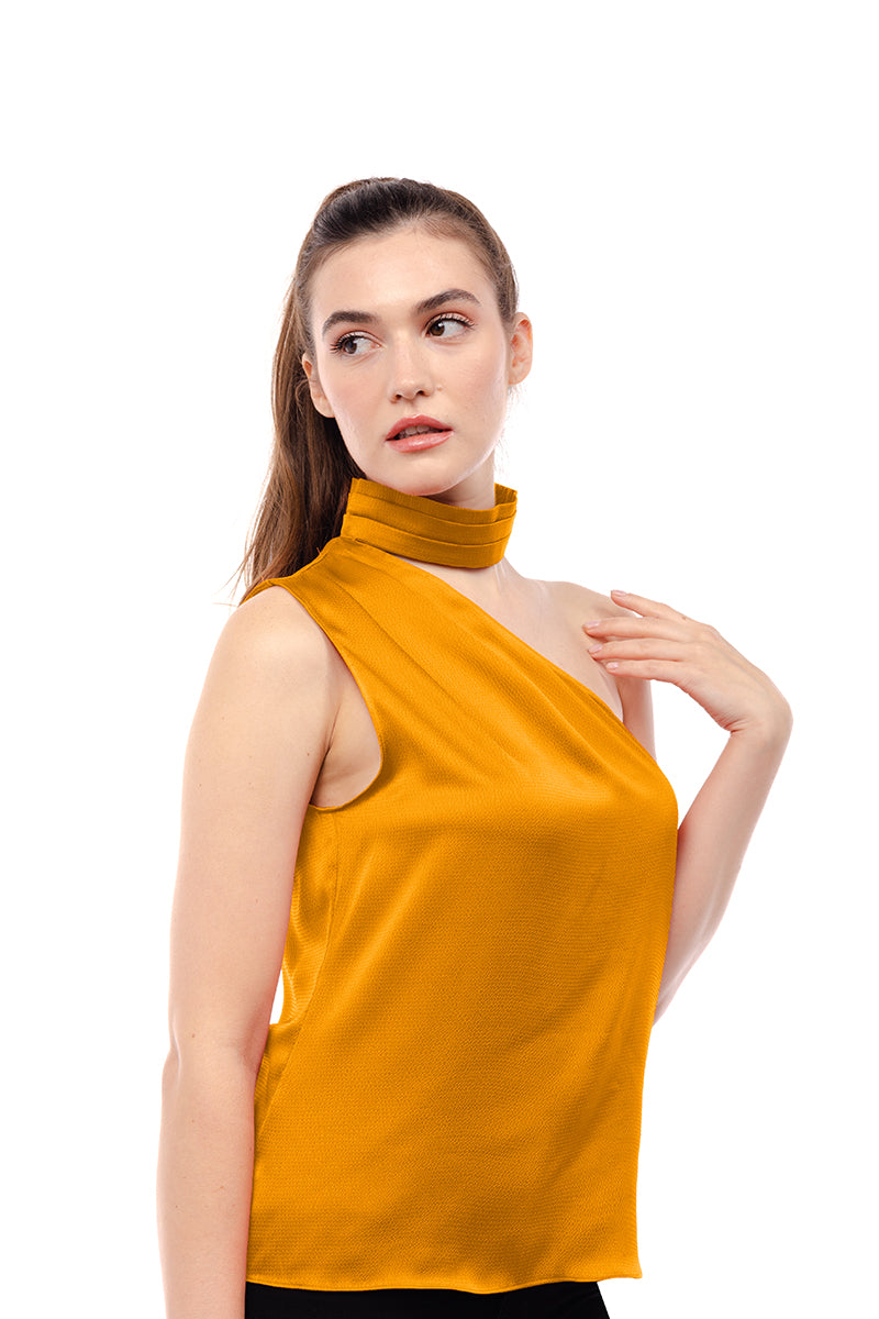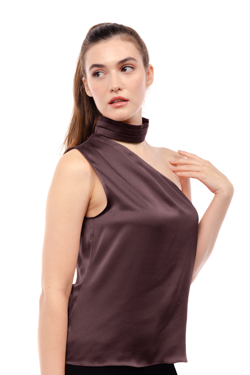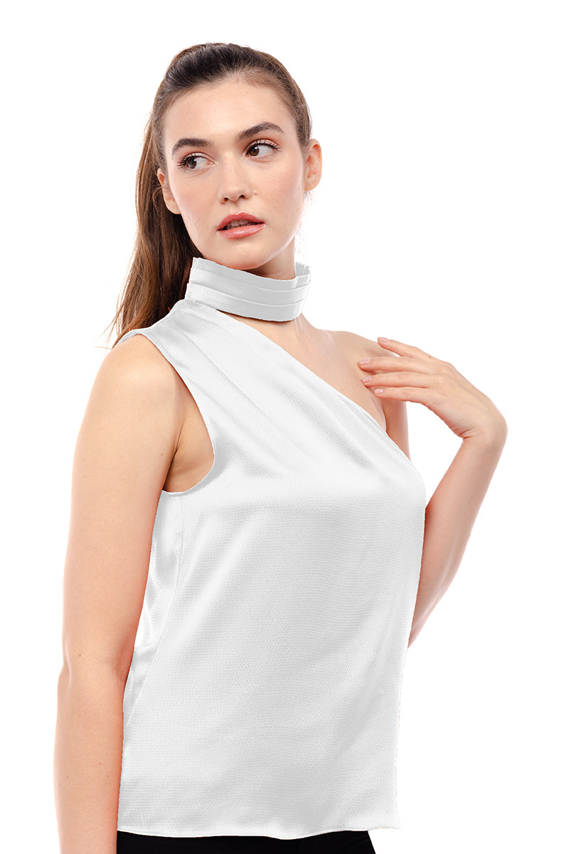 Pleated Neck Asymmetrical Top
