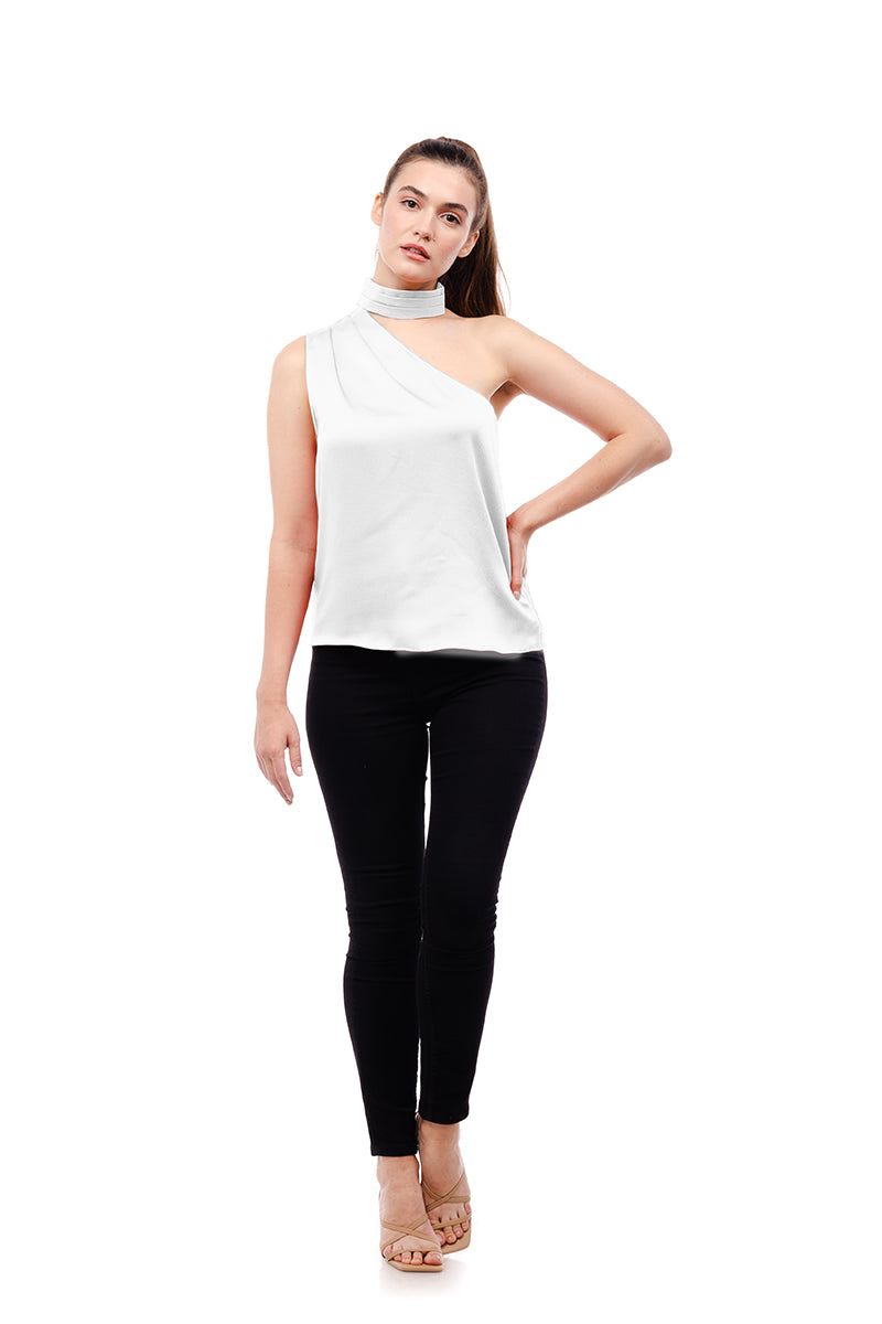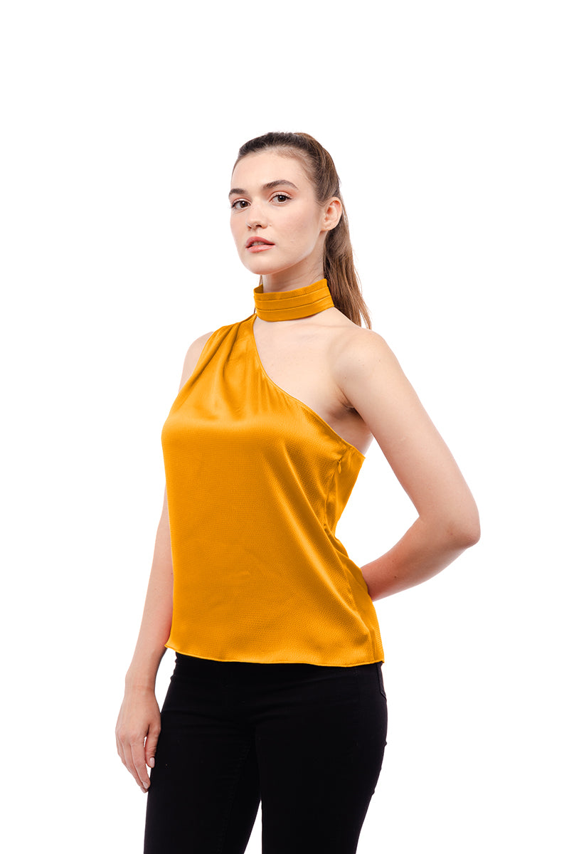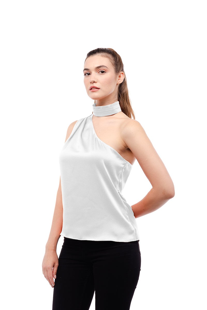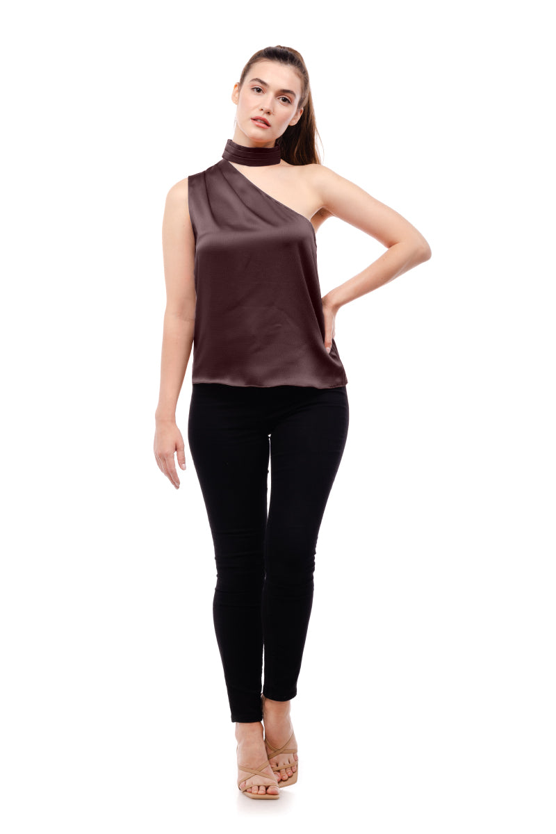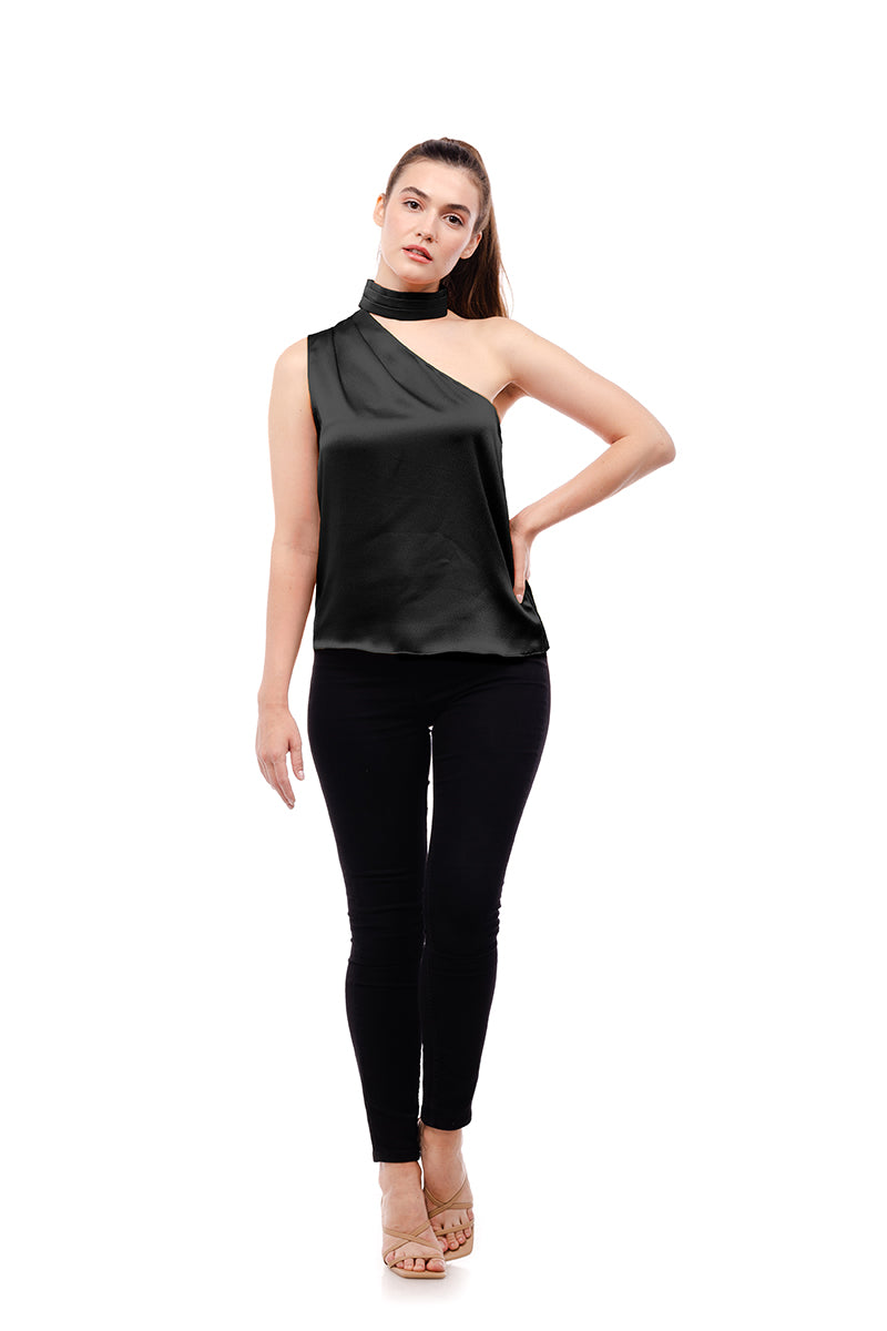 Pleated Neck Asymmetrical Top