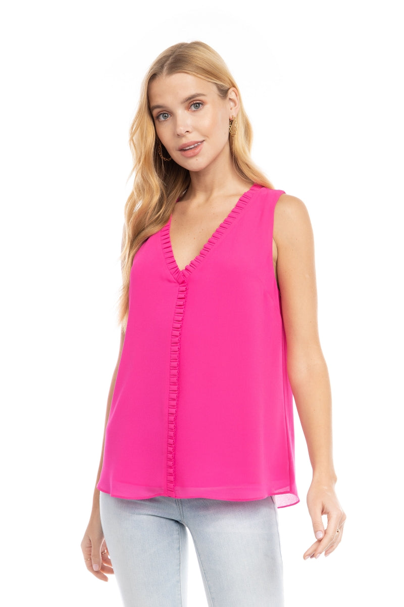 ╴Delicate pleats and ruffle trim for soft texture and movement.