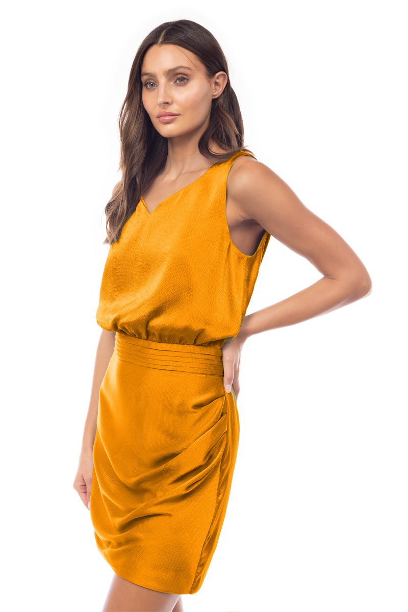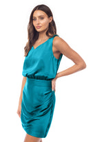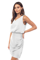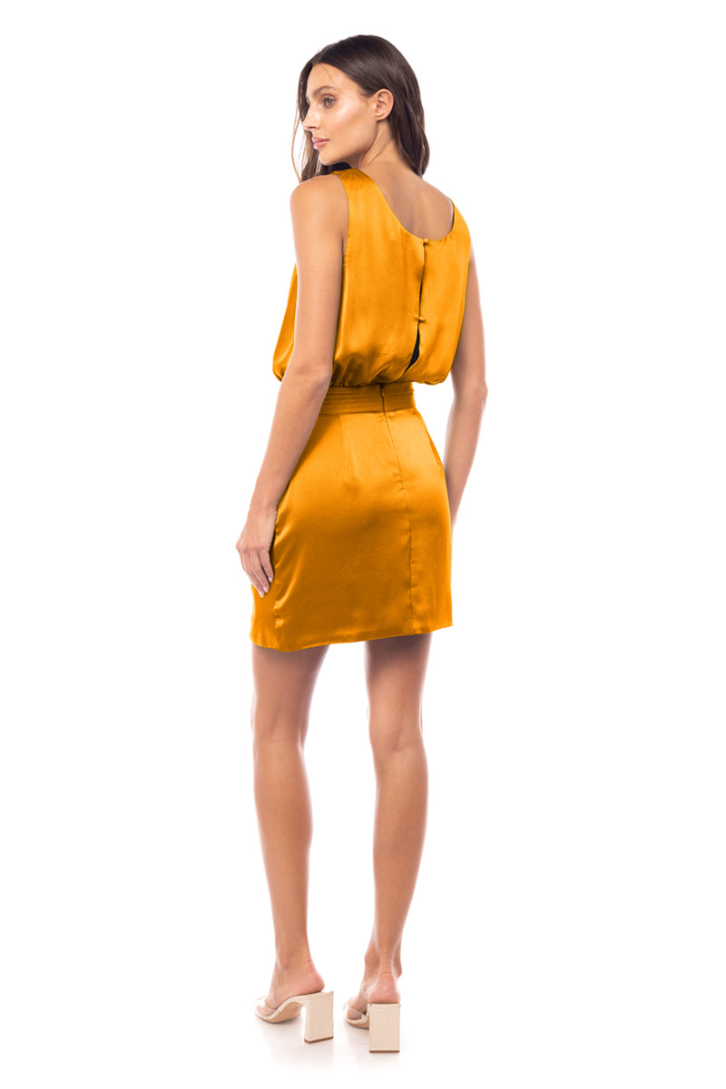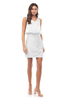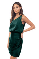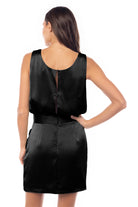 A daring and stylish choice that combines a plunging neckline, chic sleeveless design, and waistband detail for a truly eye-catching ensemble. This mini dress is designed to empower and turn heads, making it perfect for nights out, parties, and special occasions.