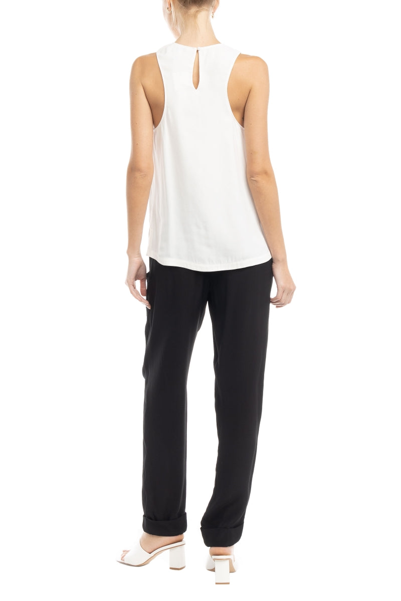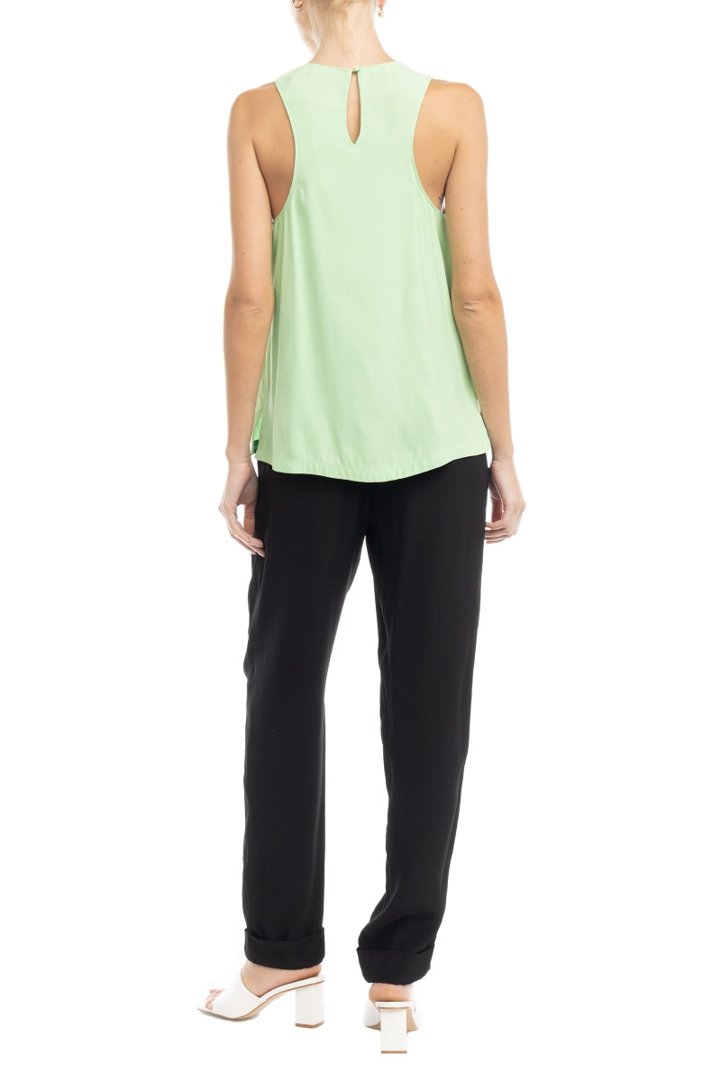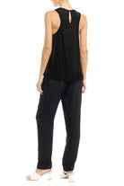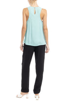 Embrace effortless style with this sleeveless flowy racerback tank, designed by Lost April, Naked Zebra's sister company. Featuring a keyhole button closure on the back, this tank exudes modern elegance while offering comfort and versatility for any occasion.