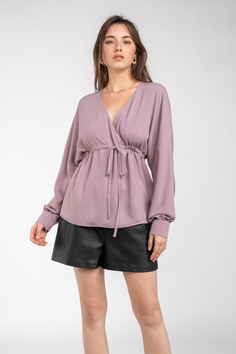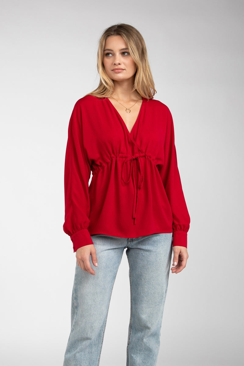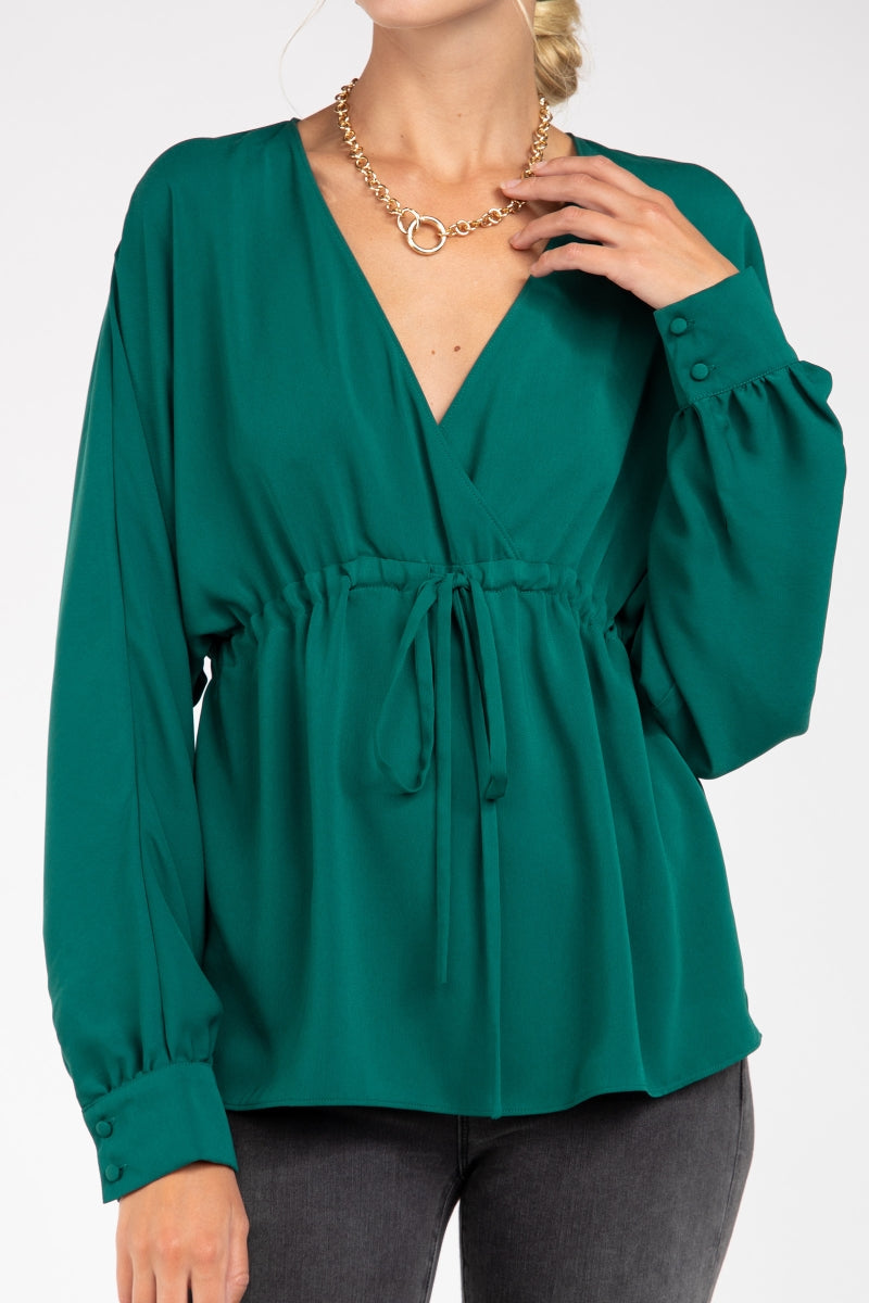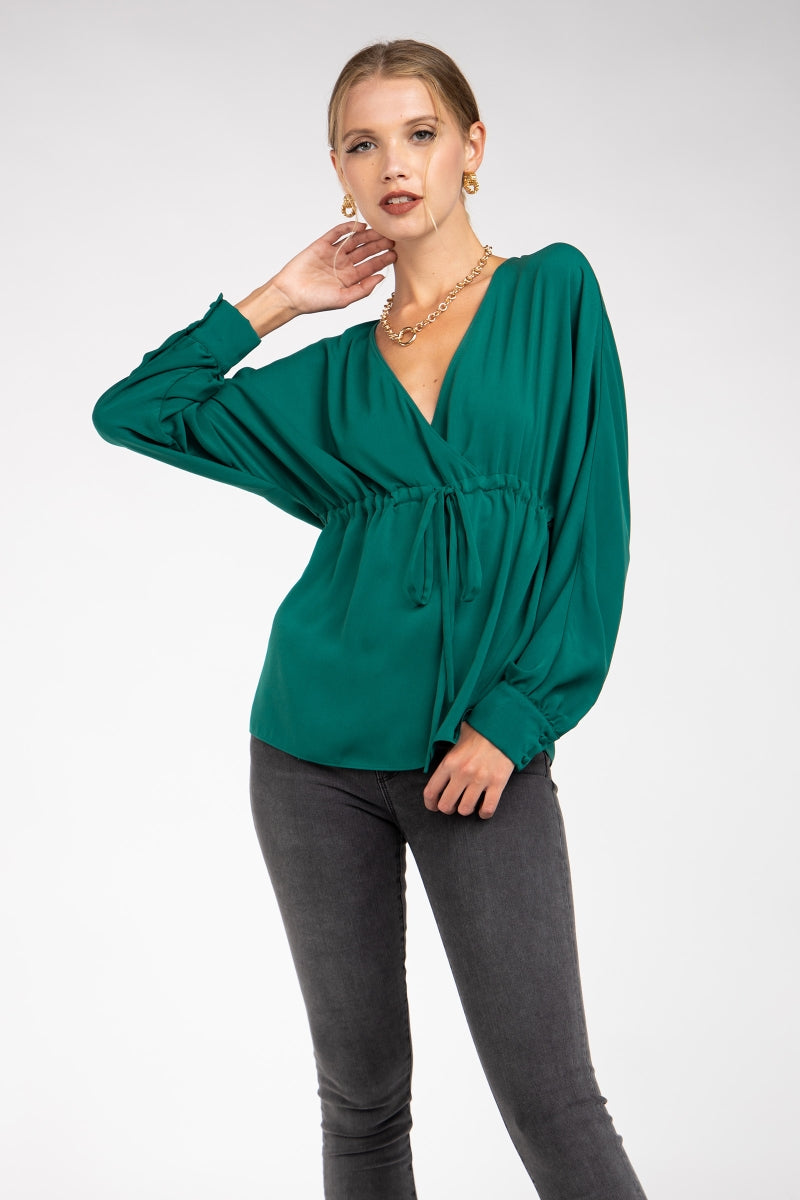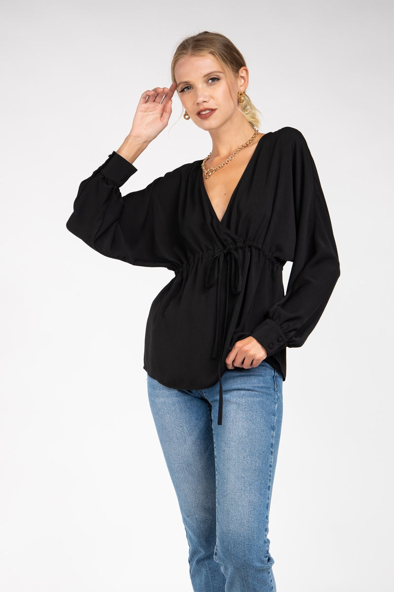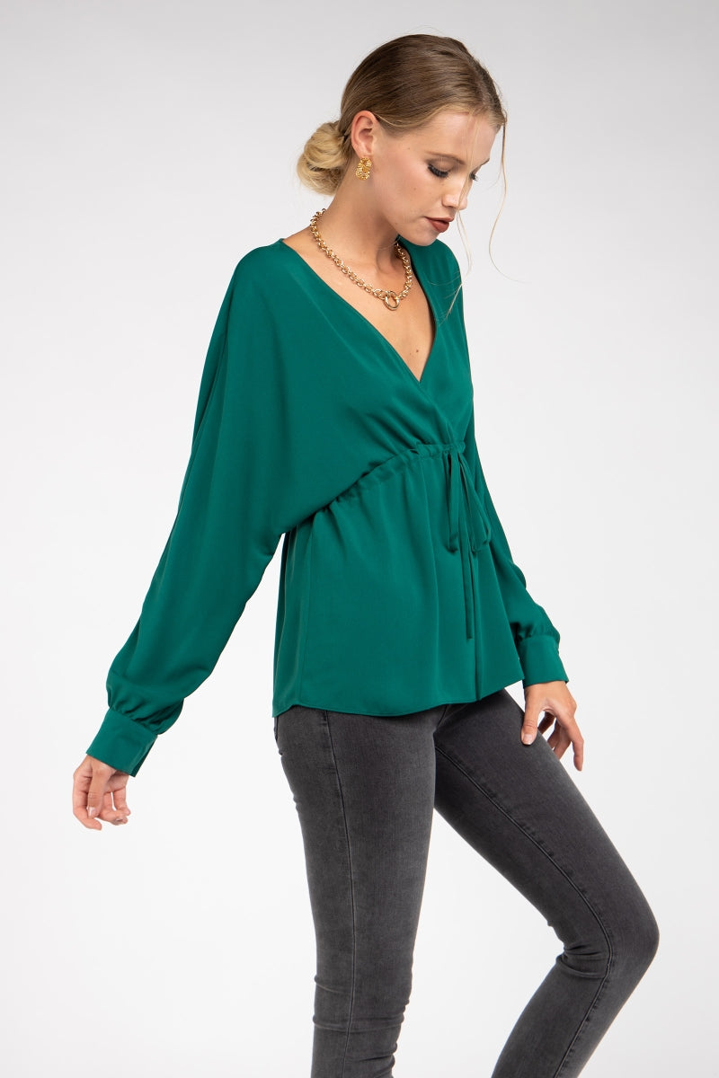 Women's Raglan Sleeve Blouse With Front Tie Detail
