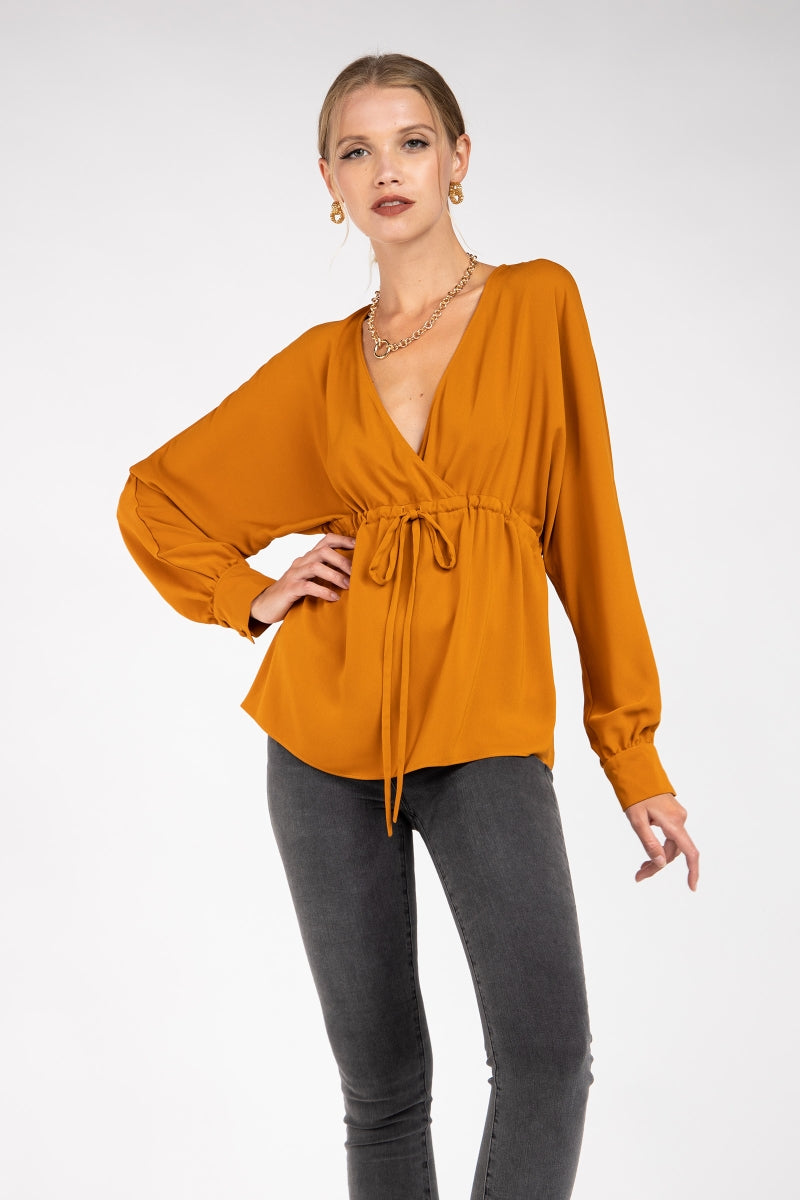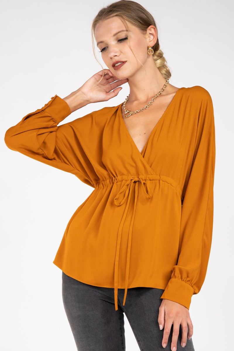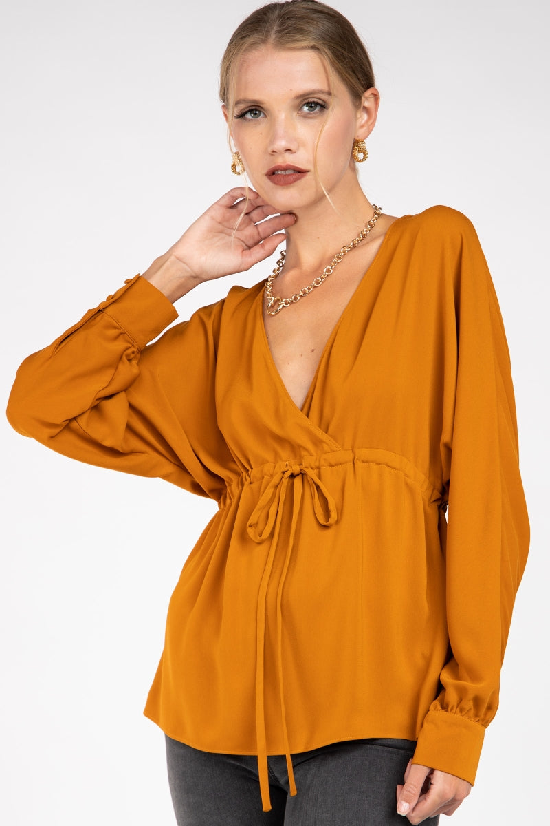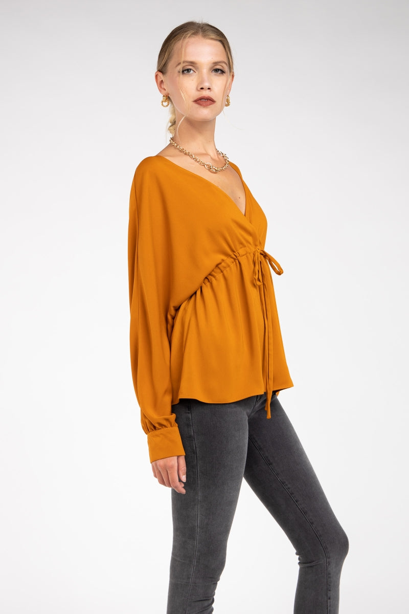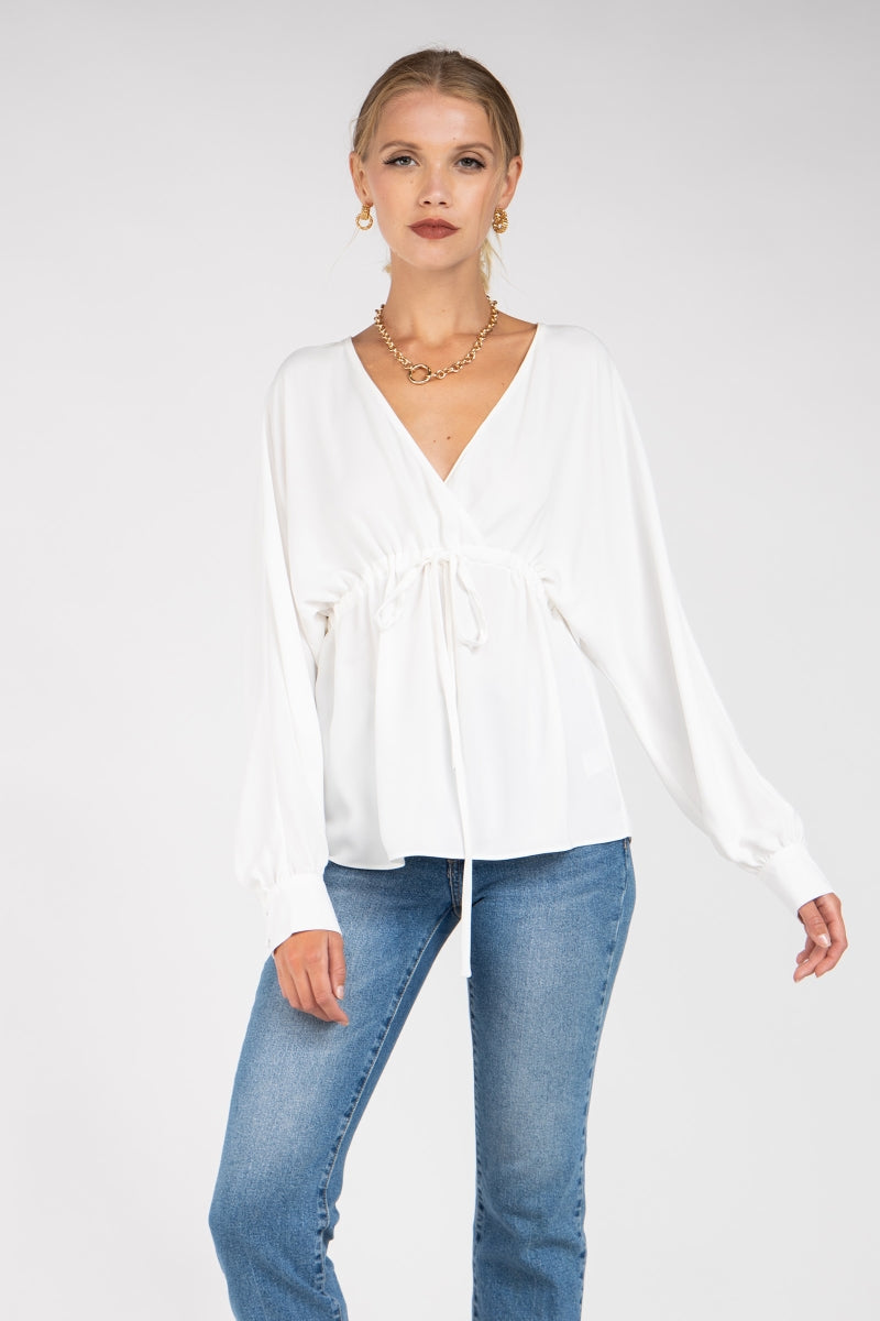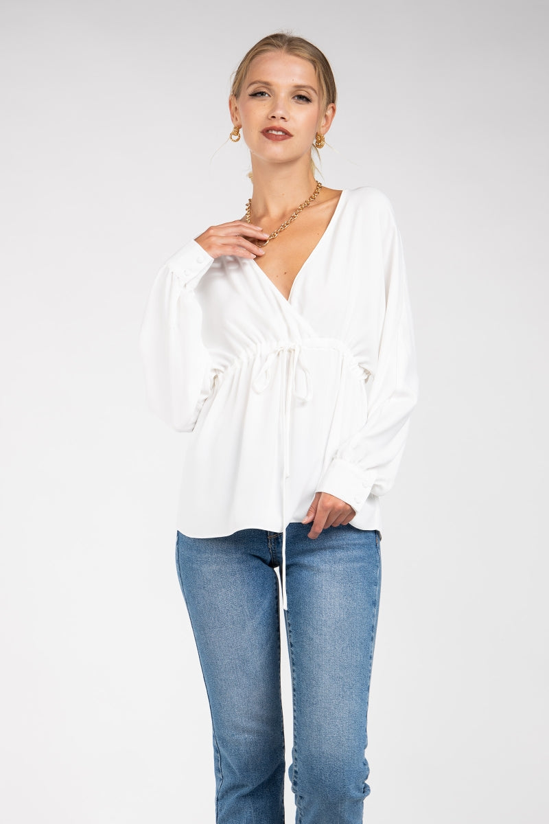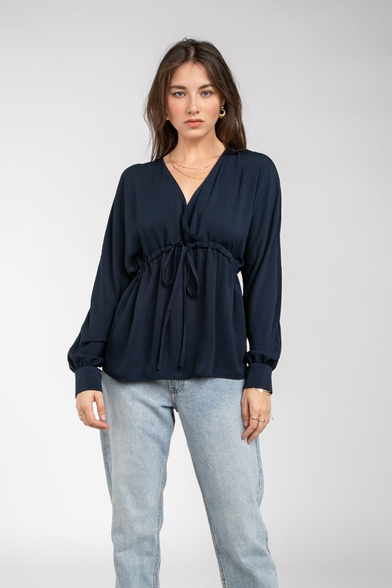 Women's Raglan Sleeve Blouse With Front Tie Detail