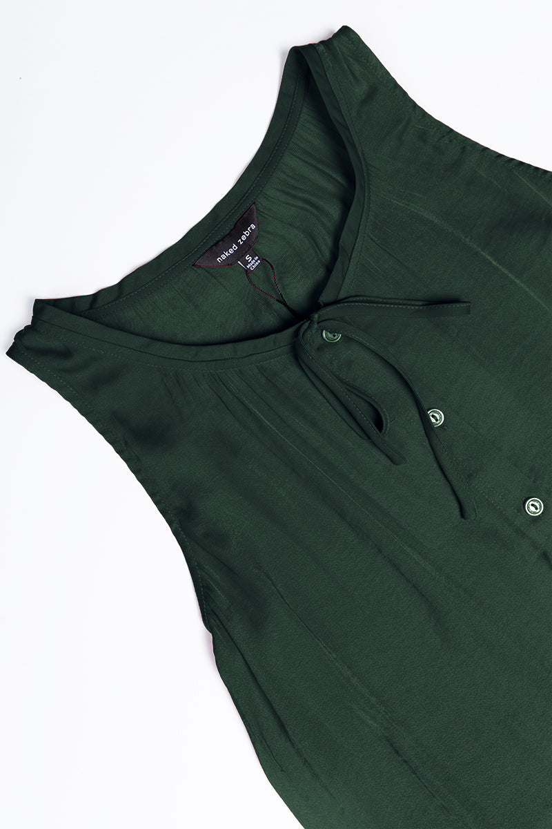 ╴Dainty neck tie adds a delicate touch to the minimalist shape