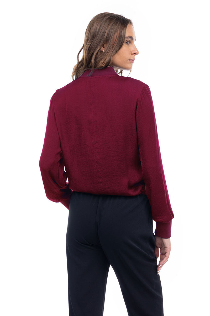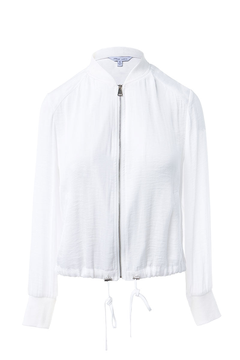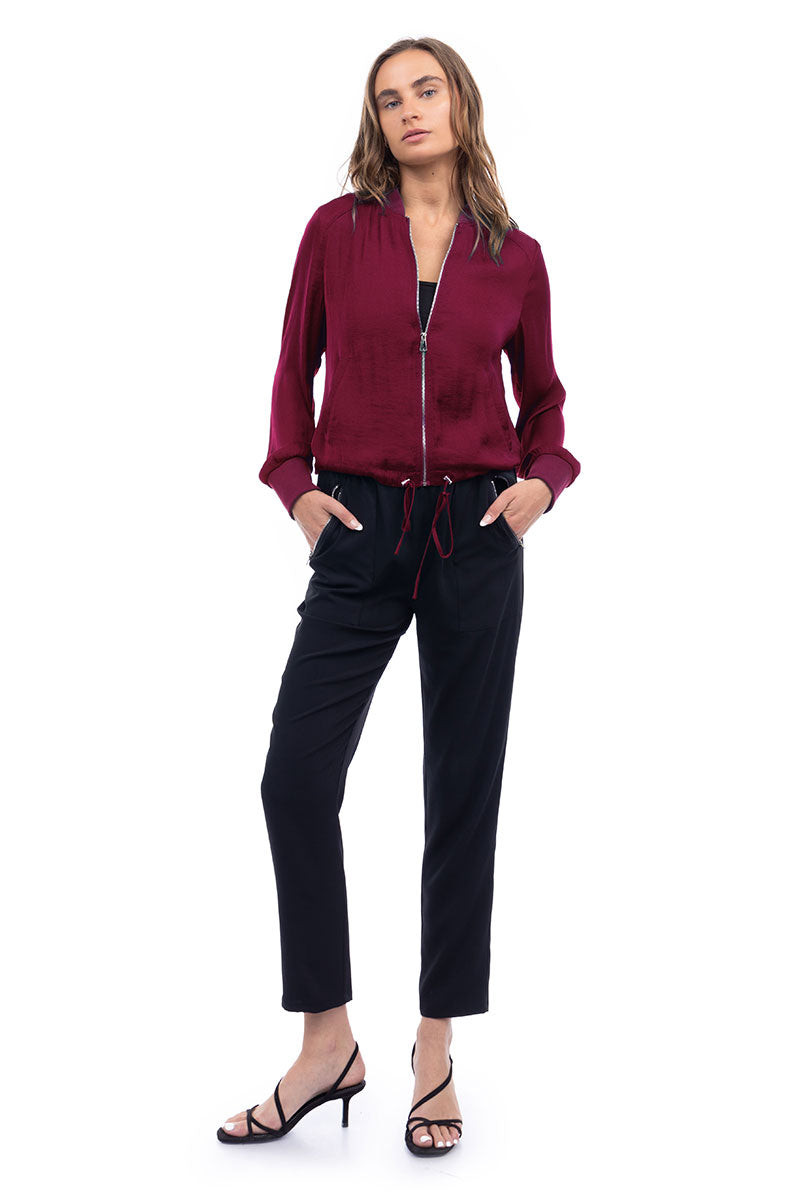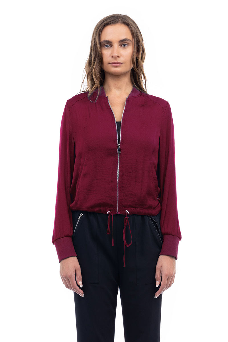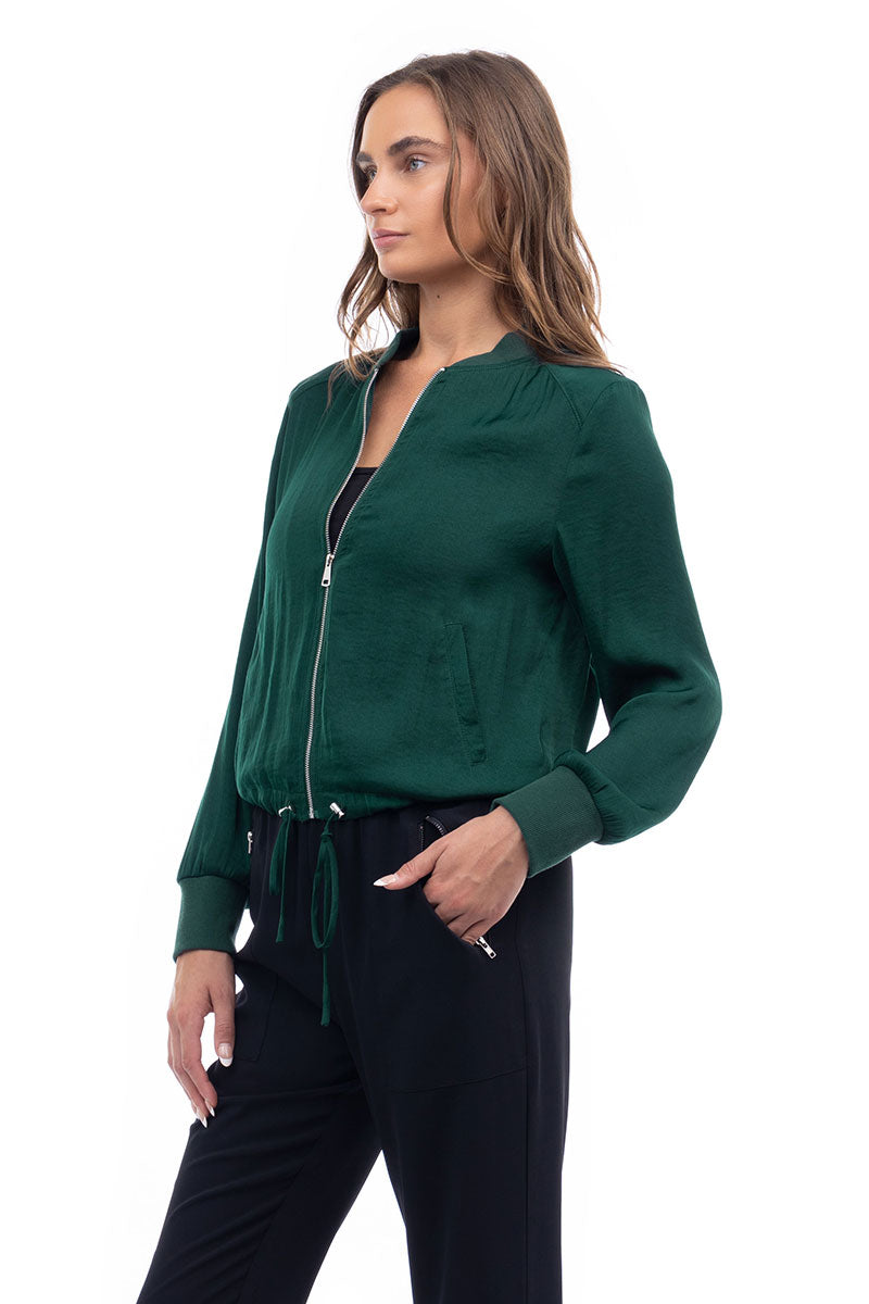 Women's Rib Contrast Satin Jacket With Waist Drawstring
