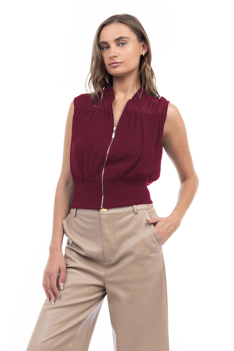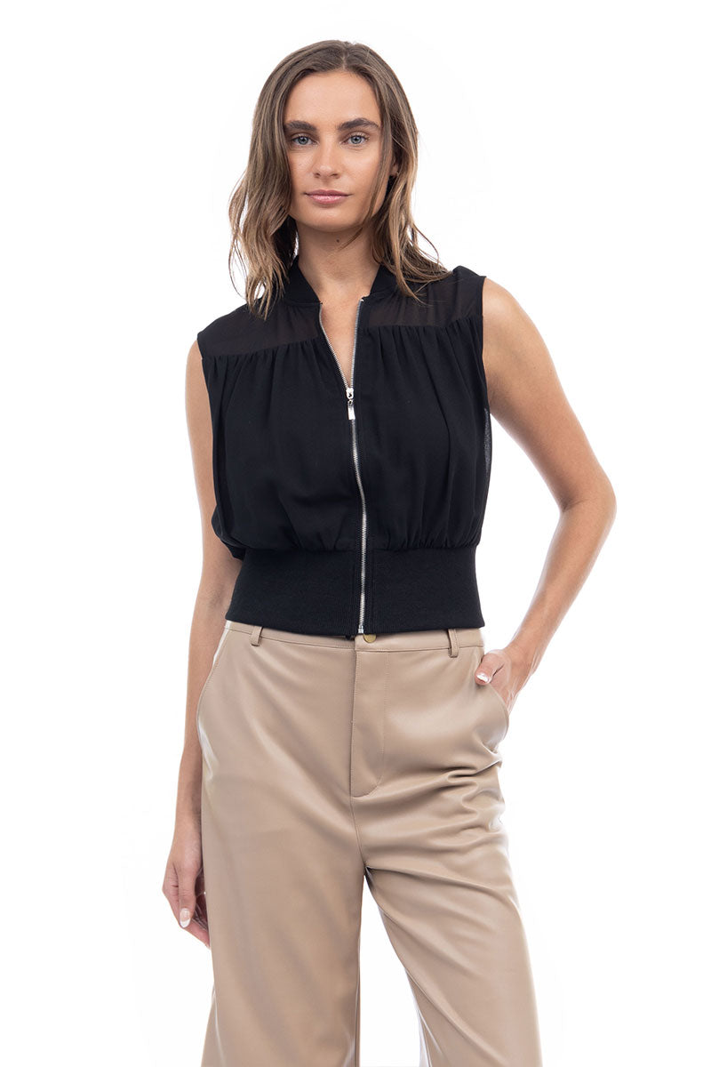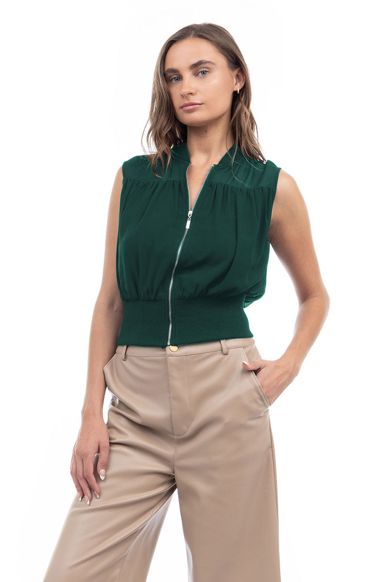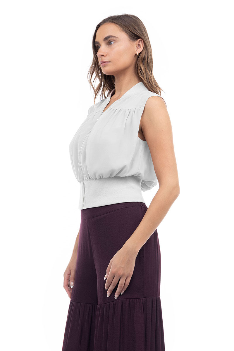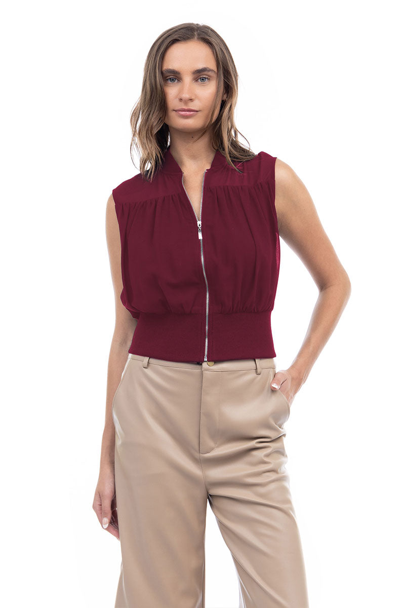 Zip Front Rib Trim Neck & Waist Top