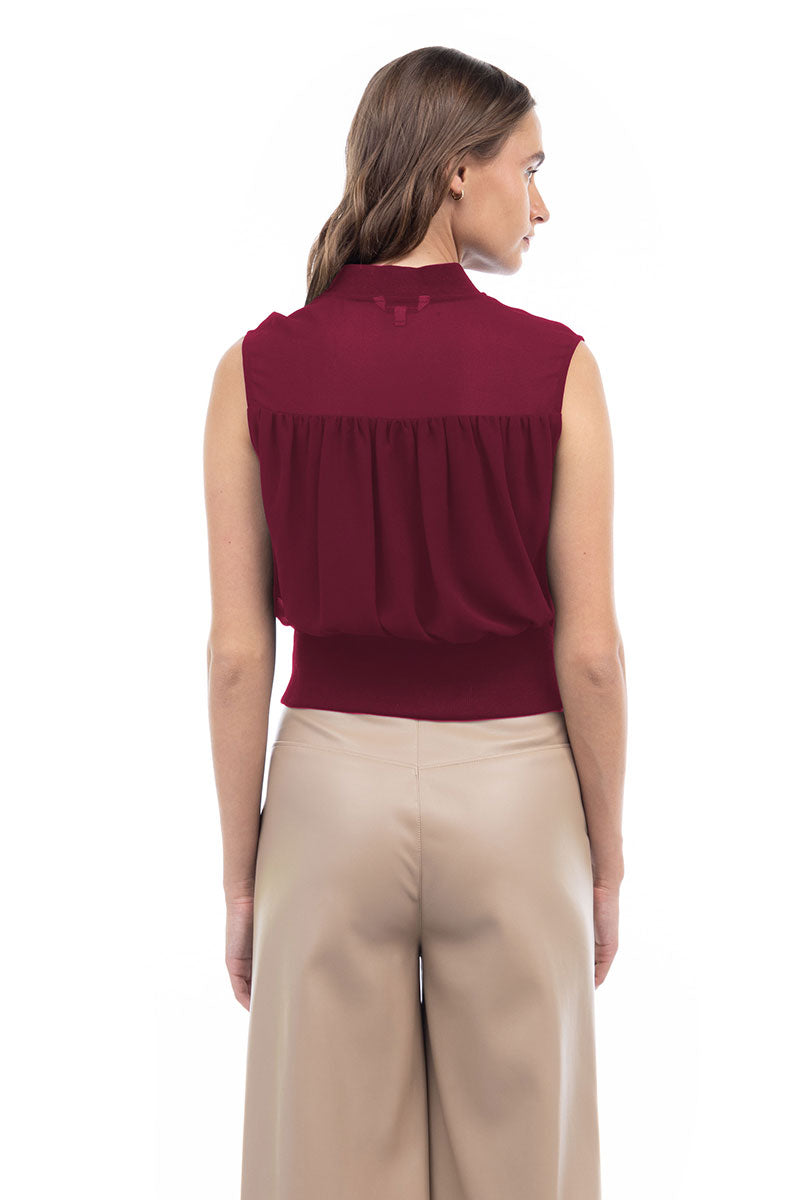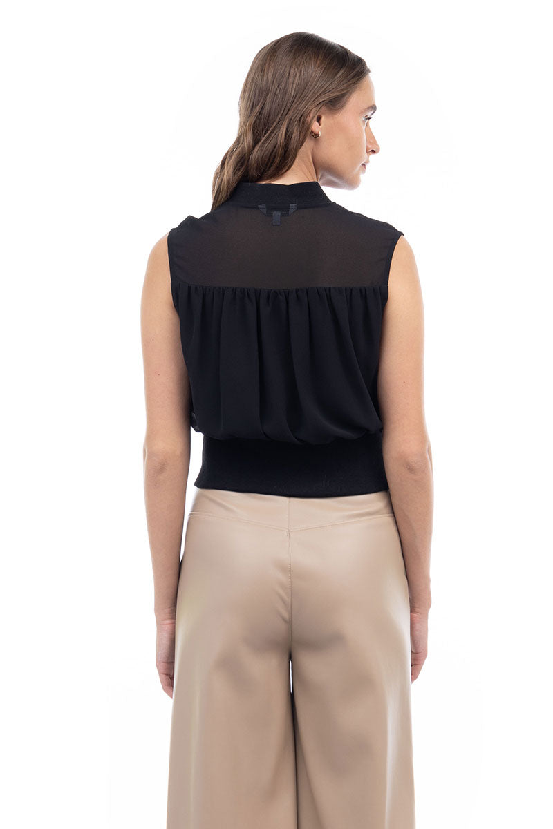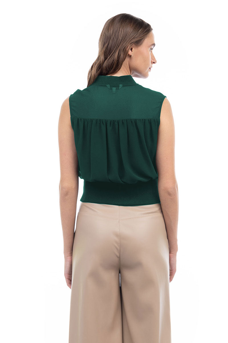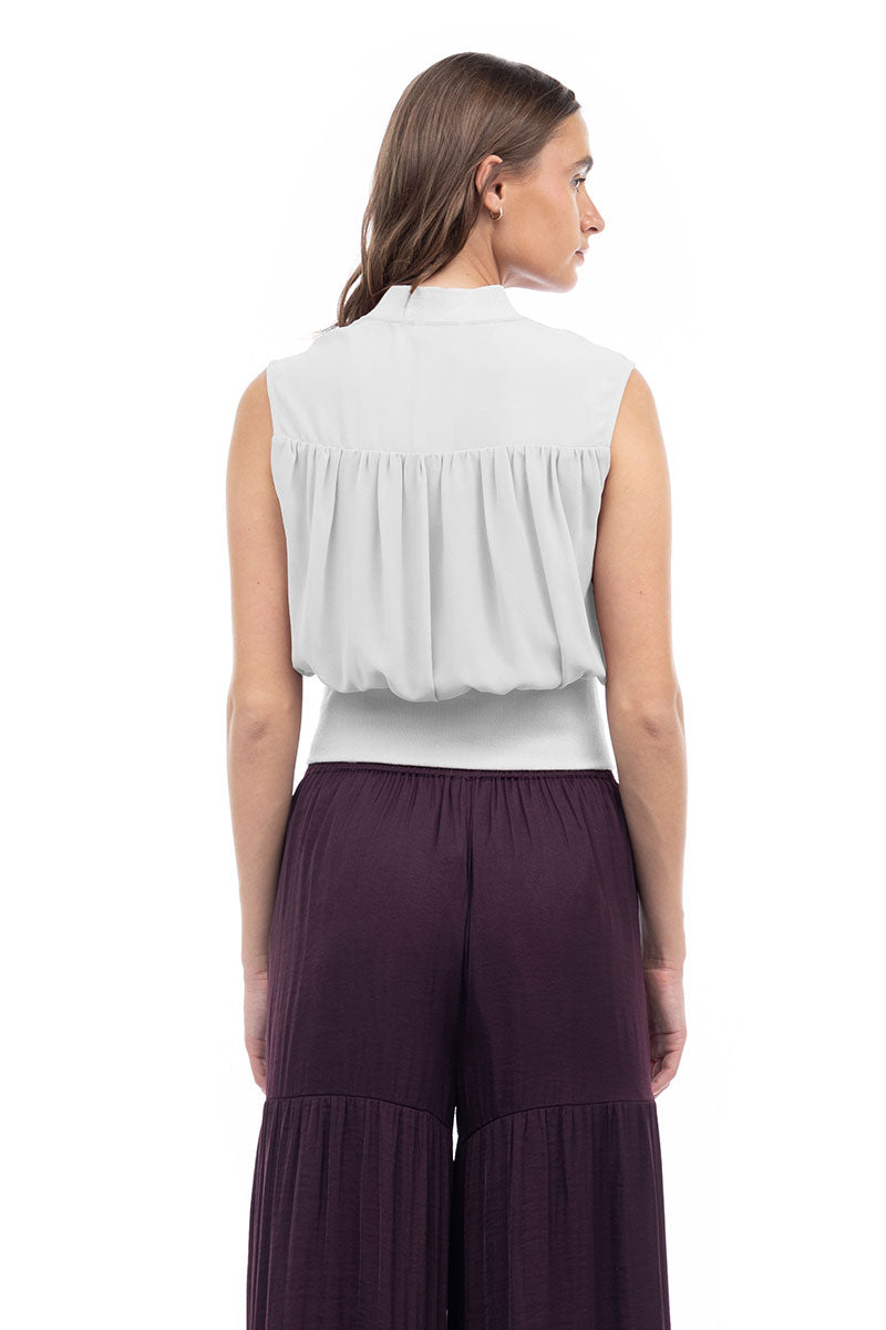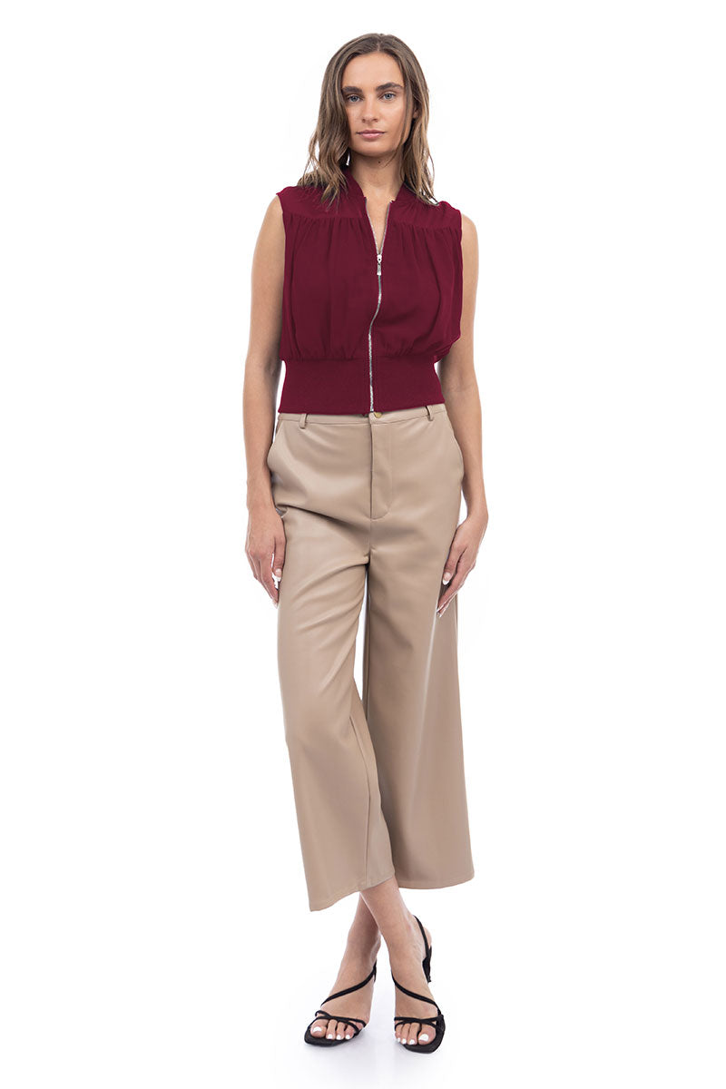 Zip Front Rib Trim Neck & Waist Top