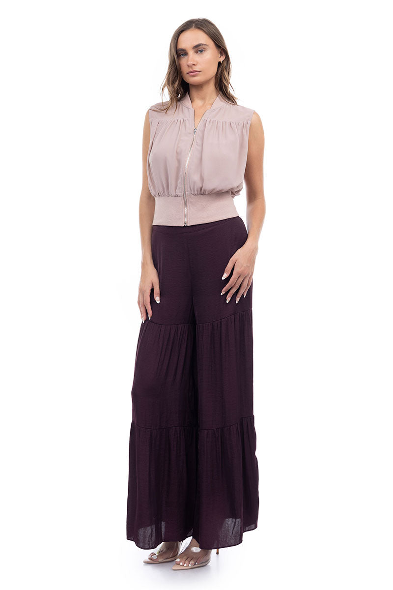 Women's Zip Front Rib Trim Neck & Waist Top