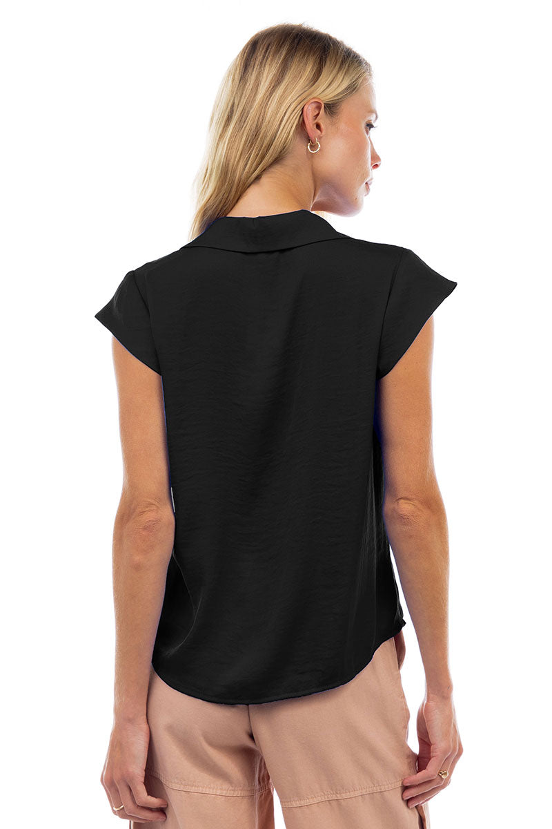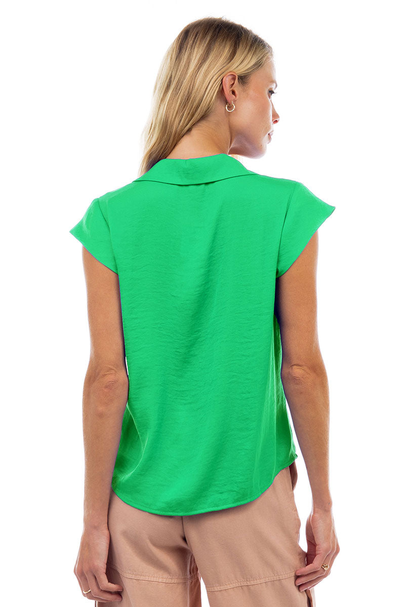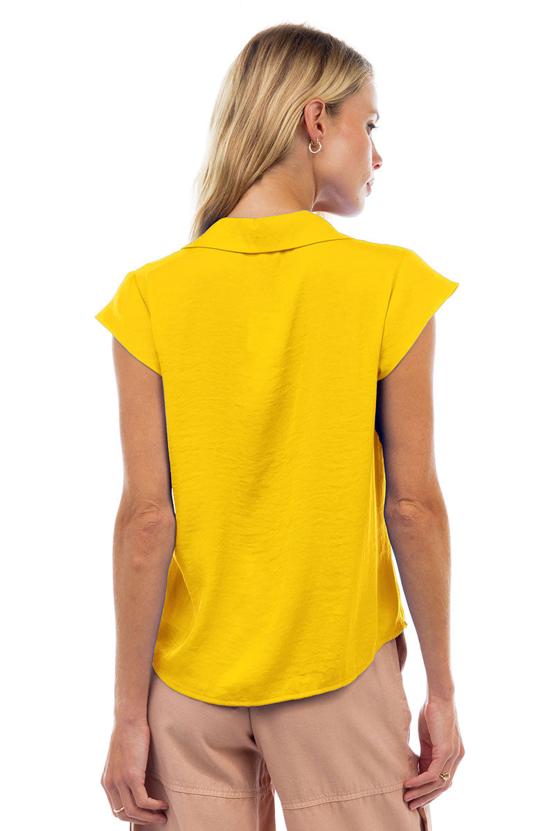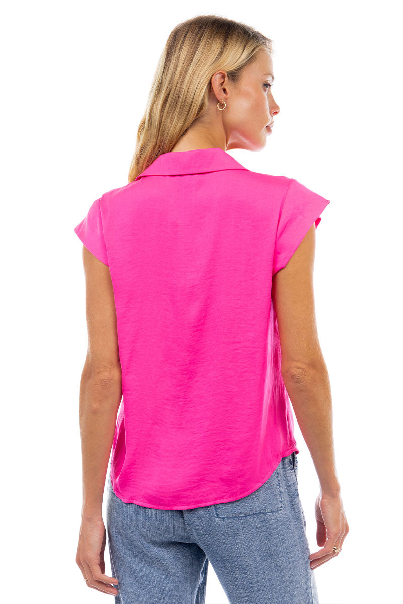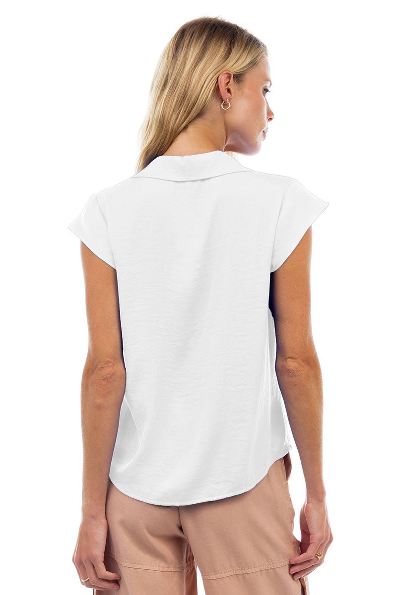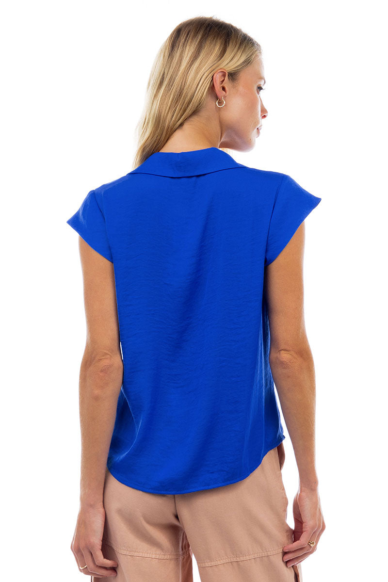 Ruched Button Down Cap Sleeve Blouse