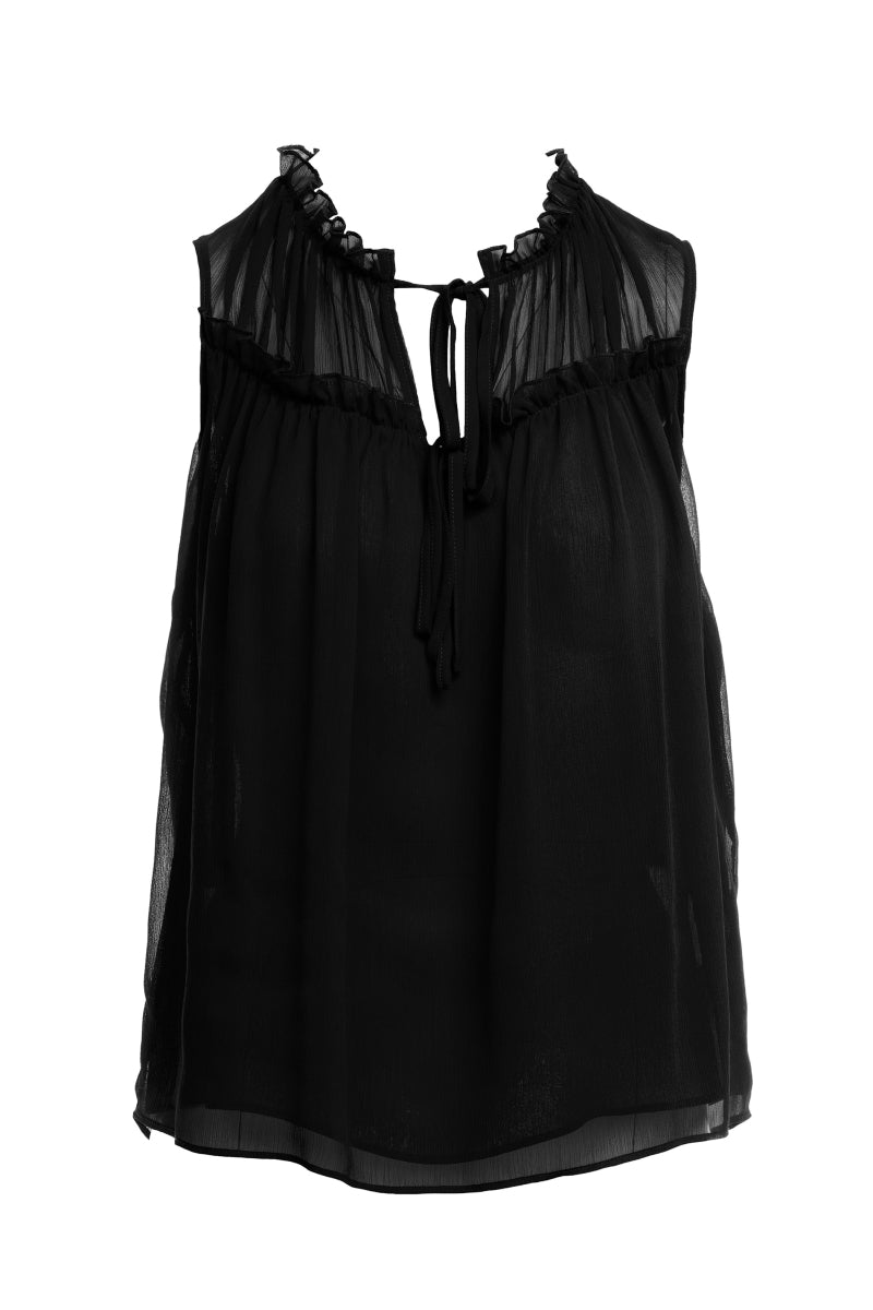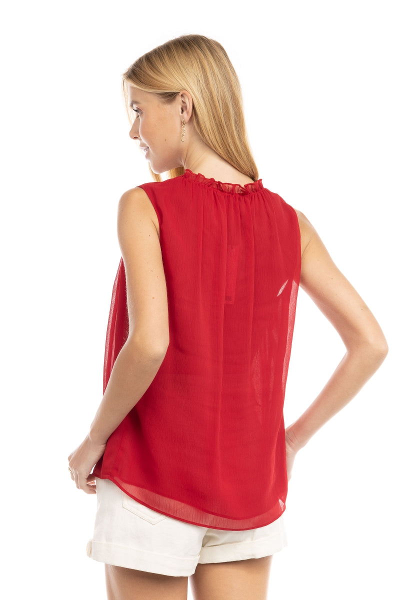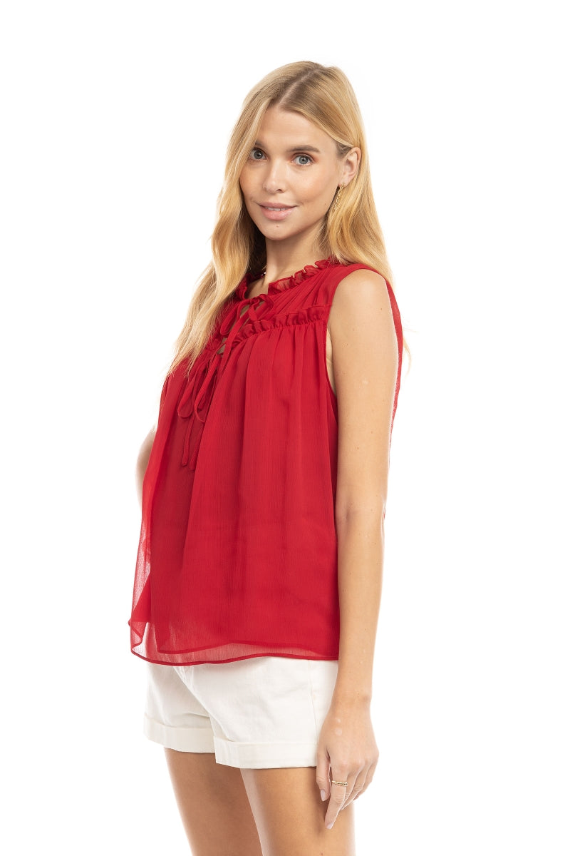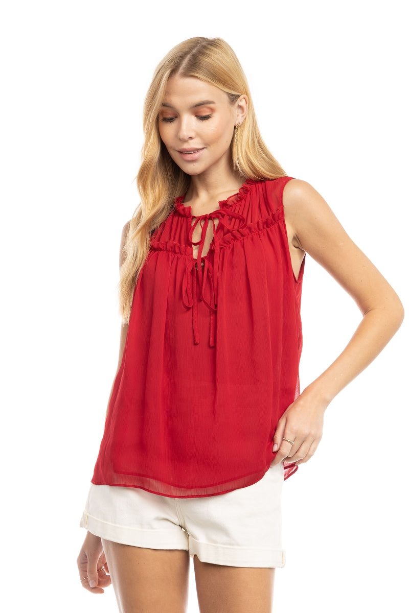╴Women's Ruched Tank with Spaghetti Front Tie Detail